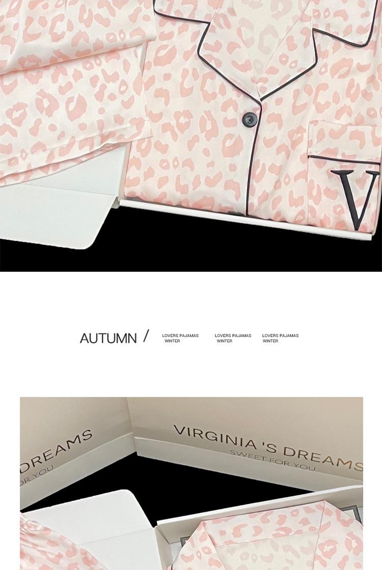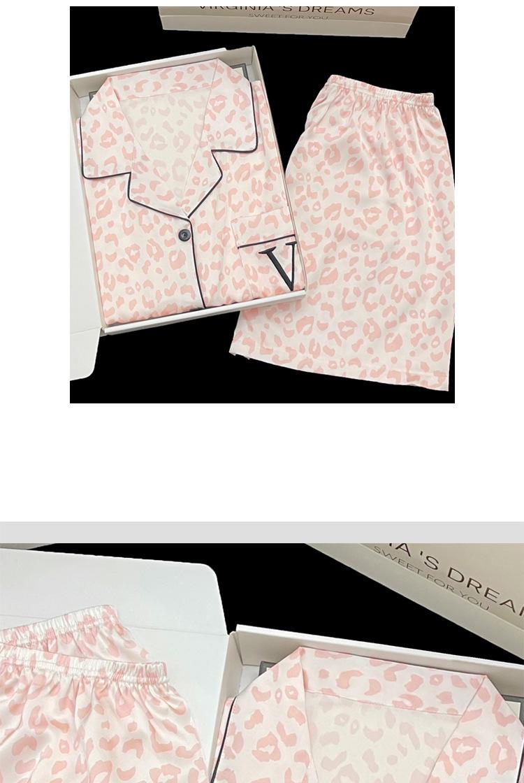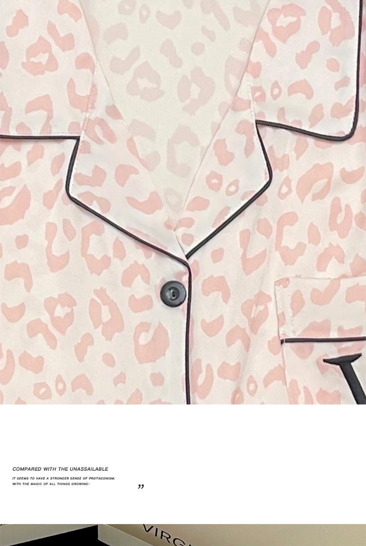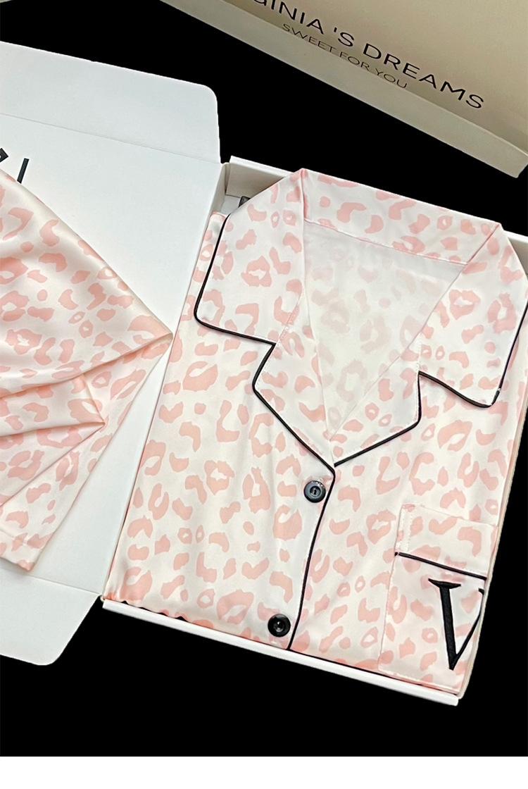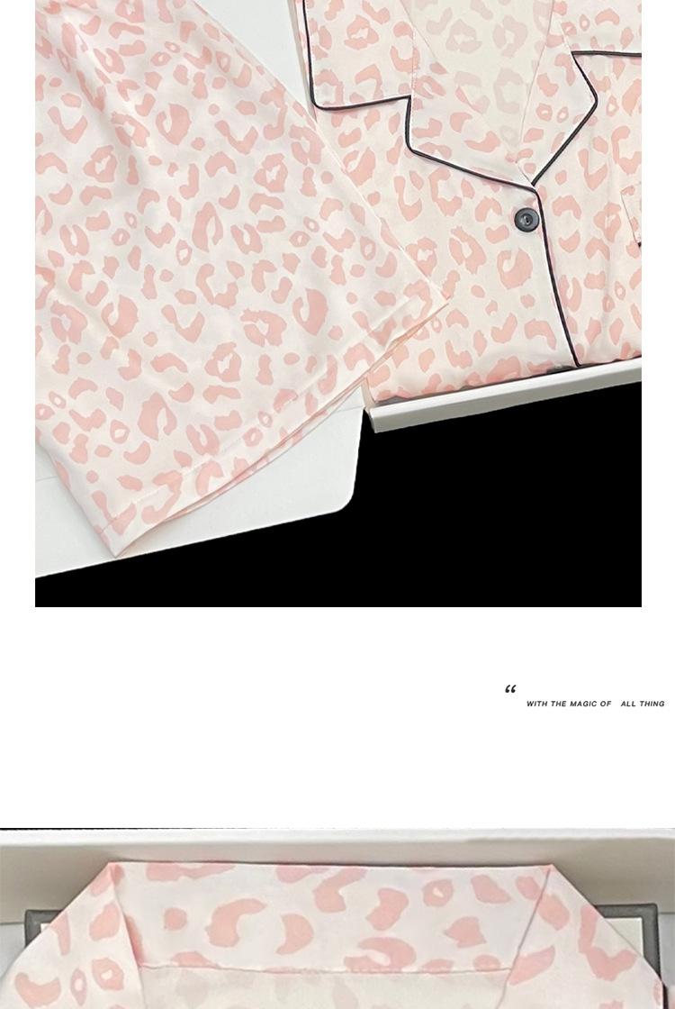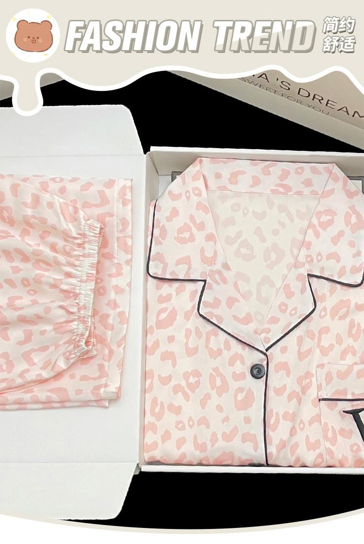Pijamas transfronterizos para mujer, primavera y verano, nuevo traje de seda de manga corta de seda de hielo, estampado de leopardo rosa, ropa popular para el hogar, venta al por mayor