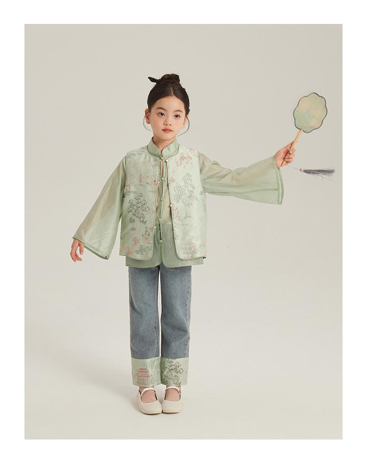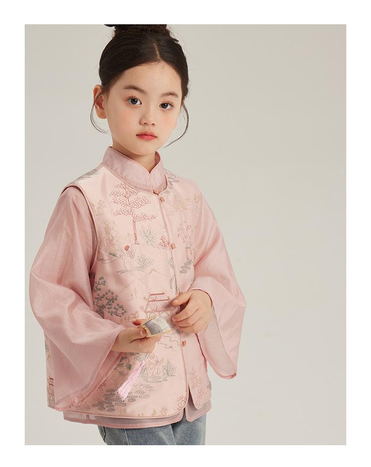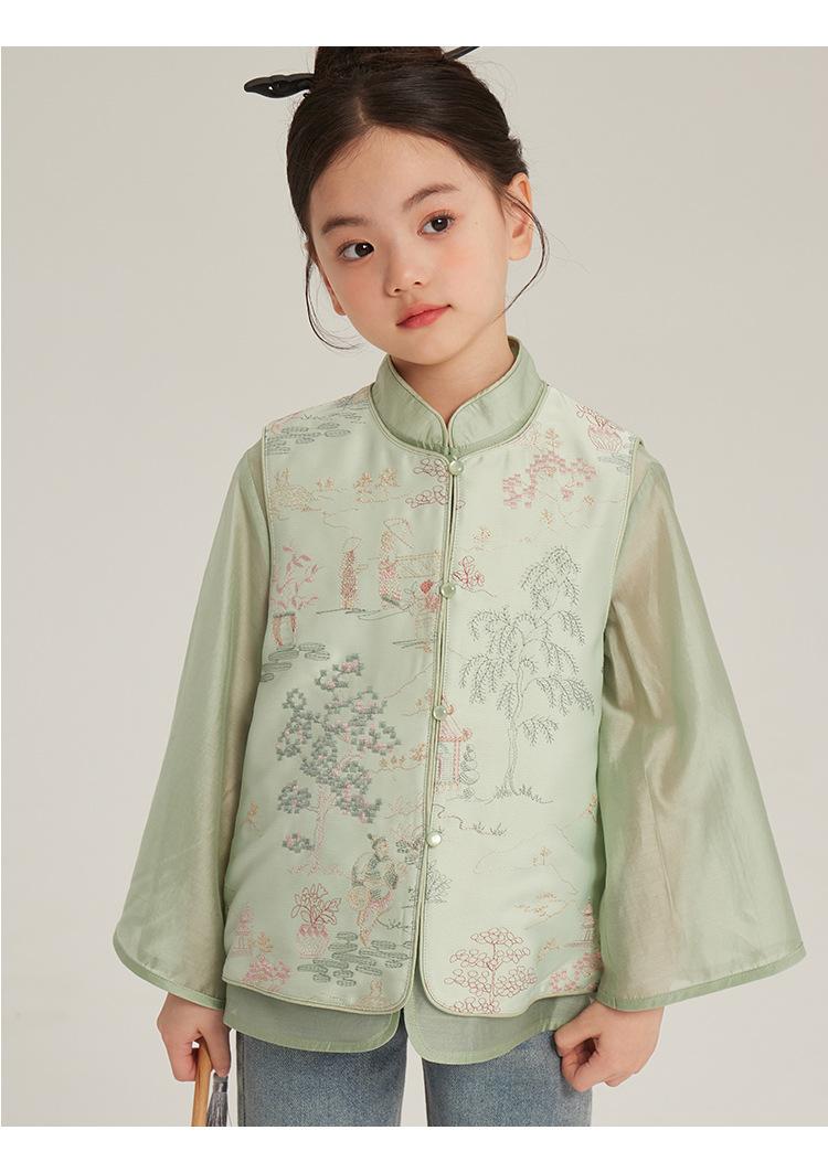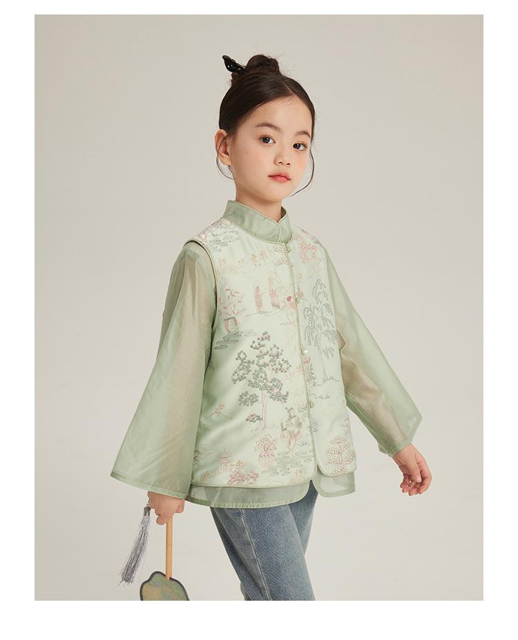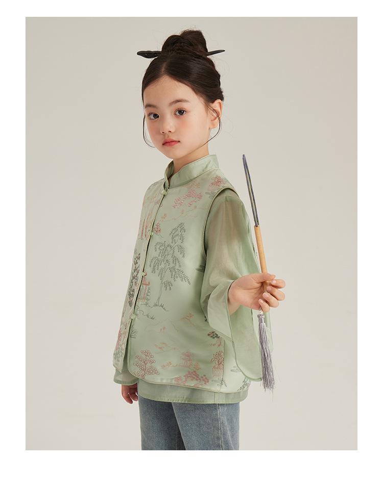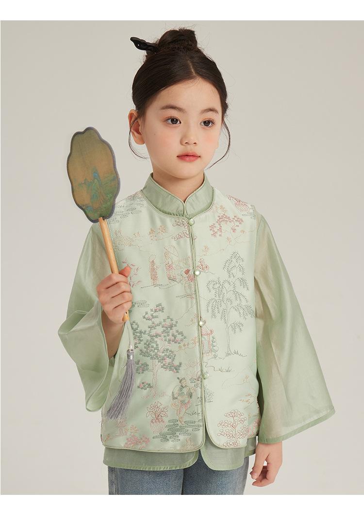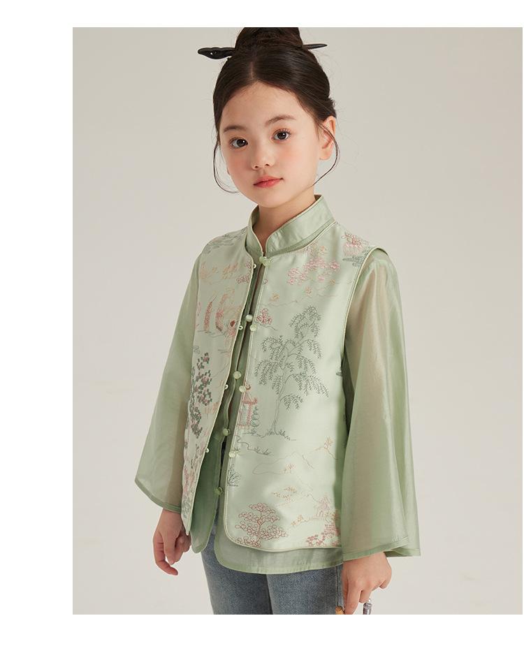 Top chaleco clásico para niña primavera 2024 nuevo bordado pintura a tinta Chaleco infantil estilo retro