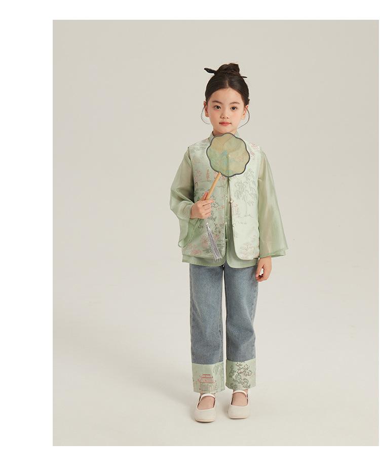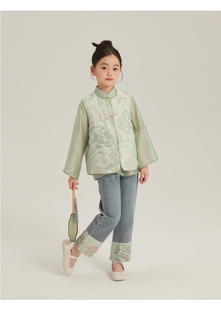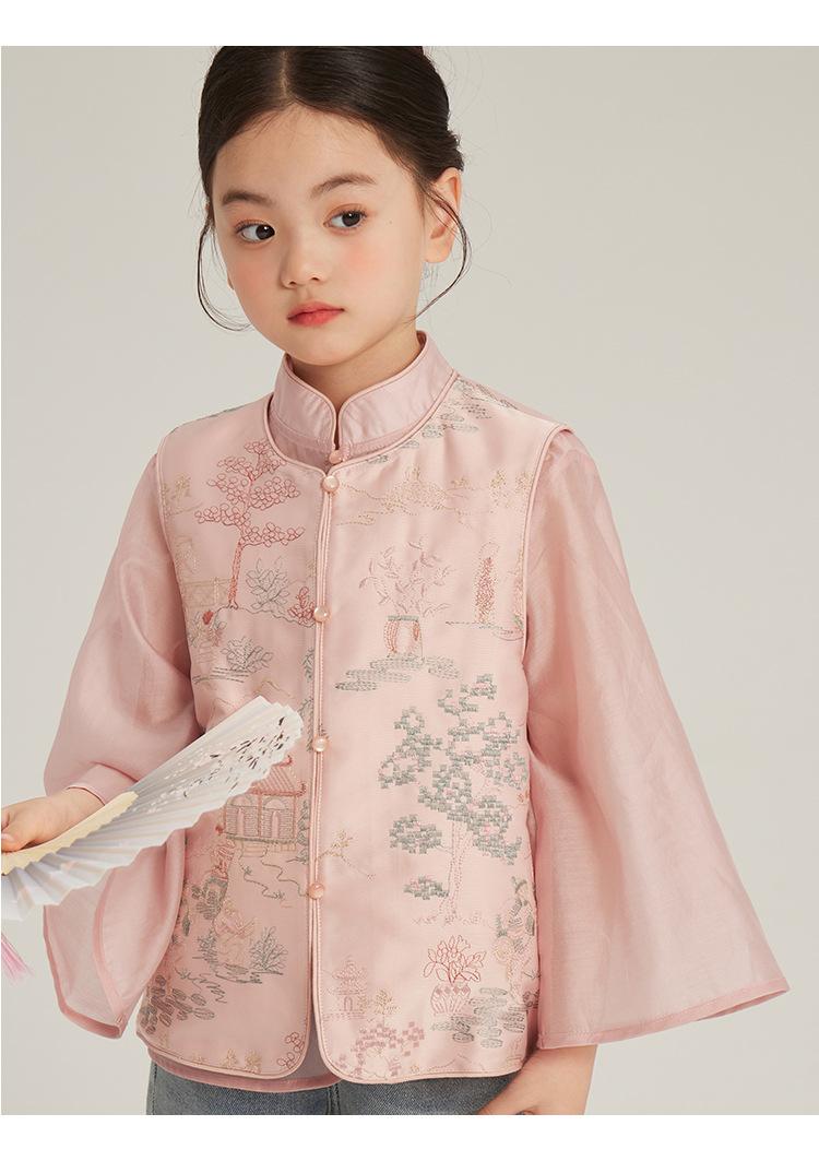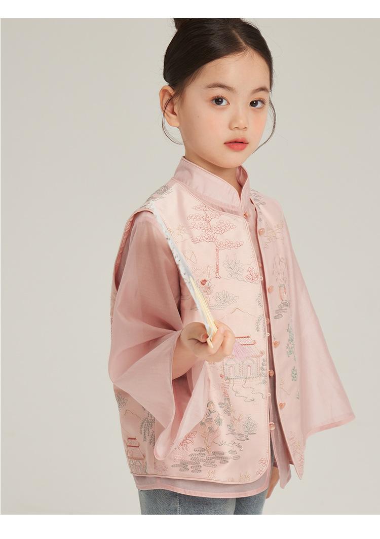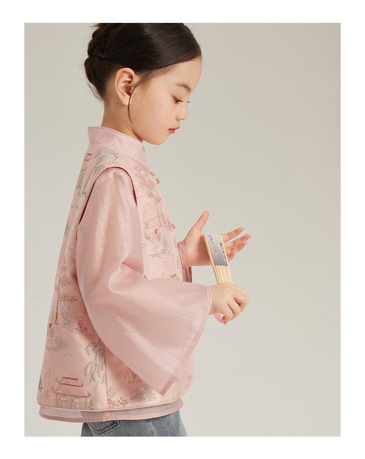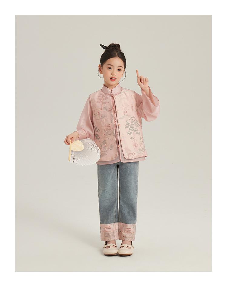 Top chaleco clásico para niña primavera 2024 nuevo bordado pintura a tinta Chaleco infantil estilo retro