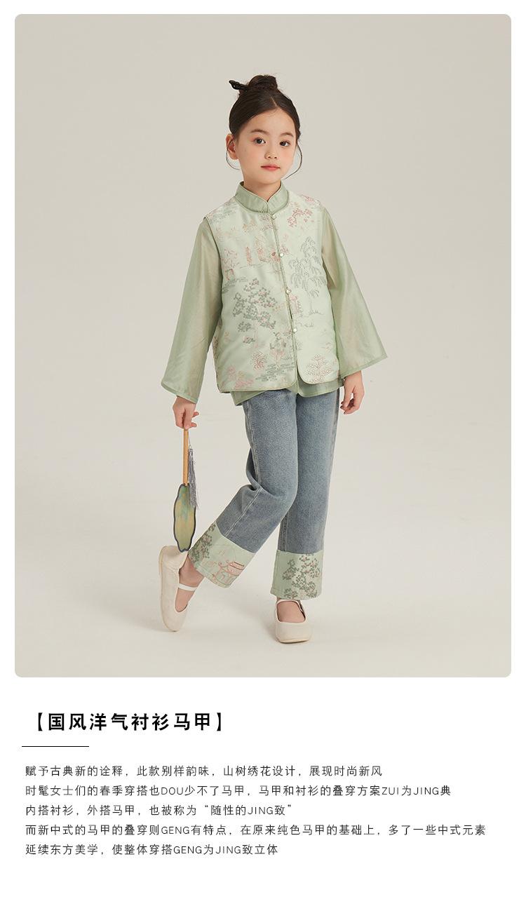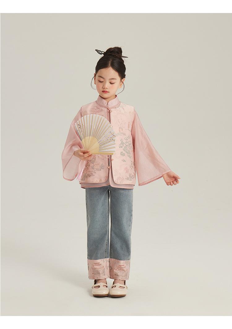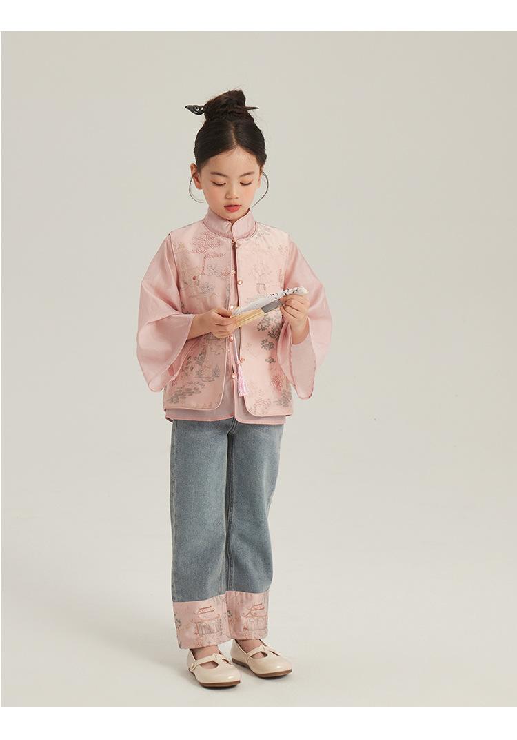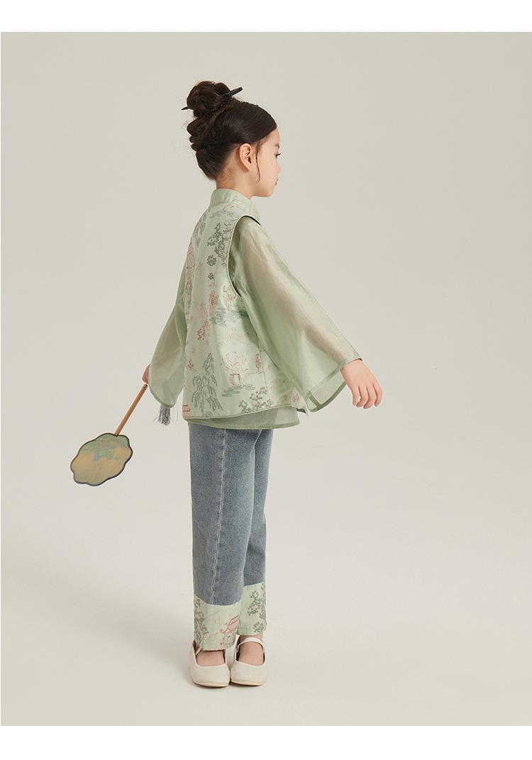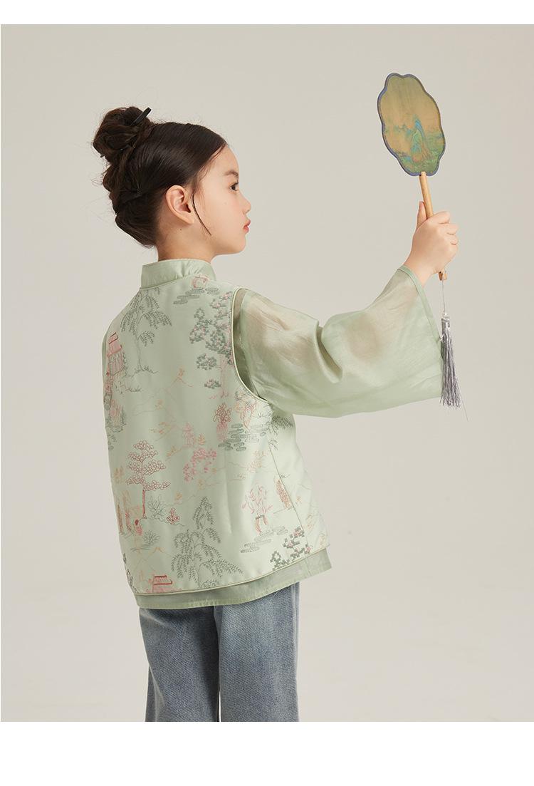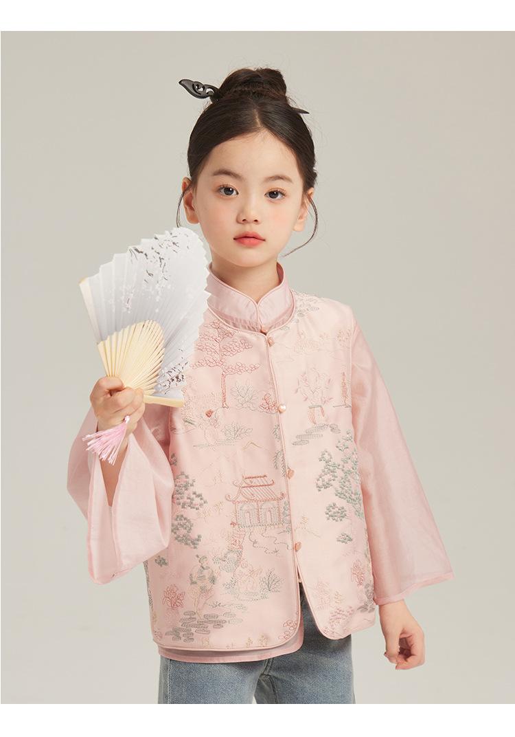 Top chaleco clásico para niña primavera 2024 nuevo bordado pintura a tinta Chaleco infantil estilo retro
