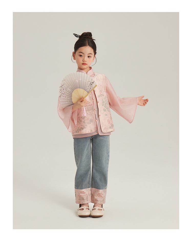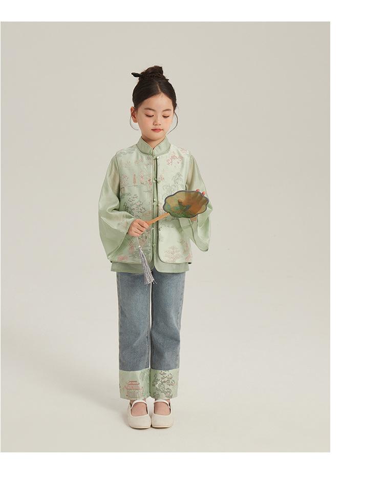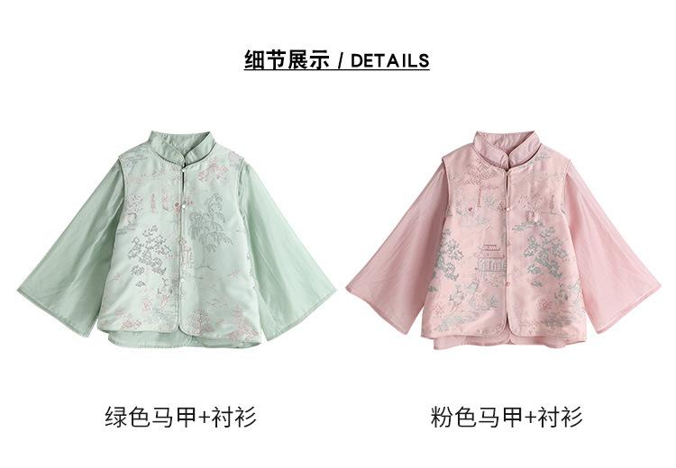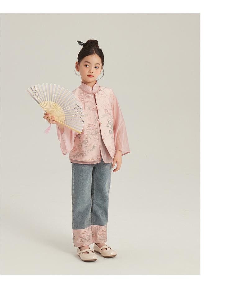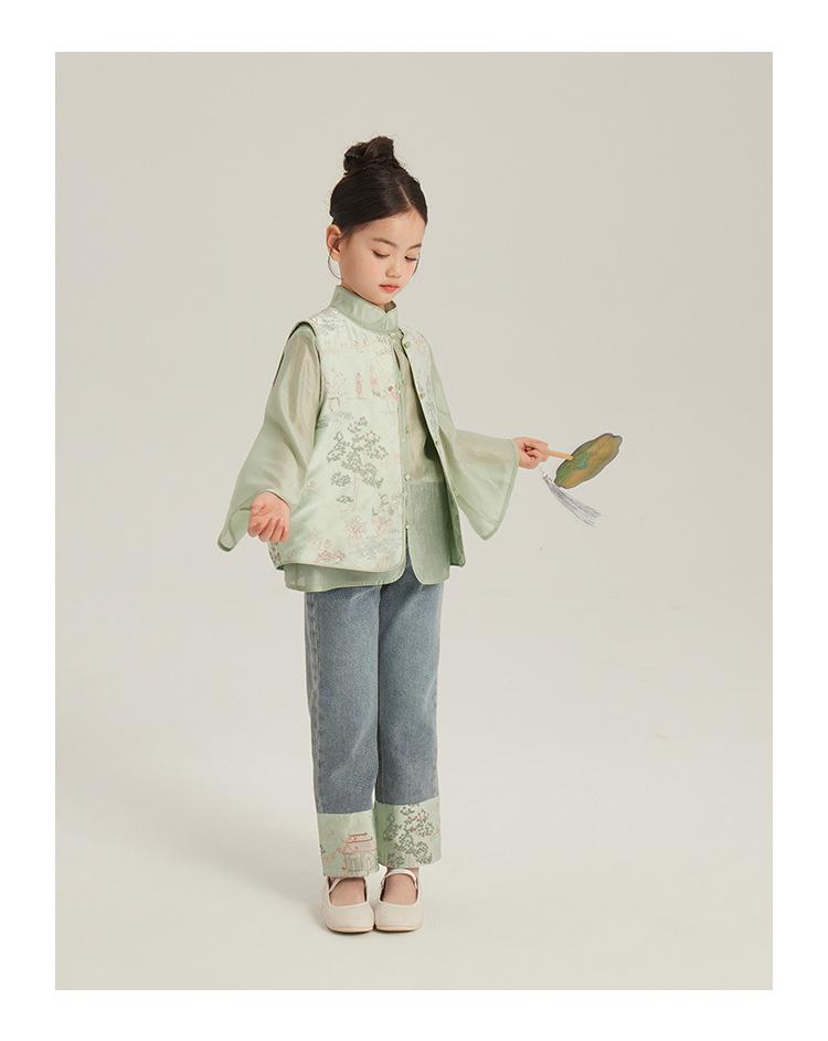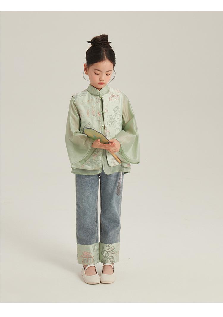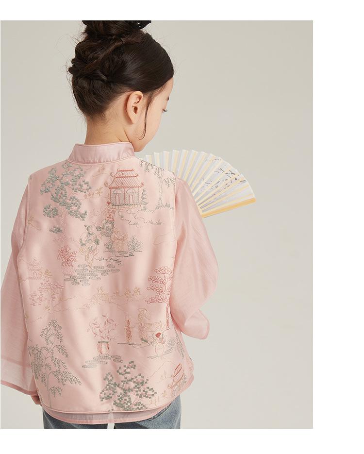 Top chaleco clásico para niña primavera 2024 nuevo bordado pintura a tinta Chaleco infantil estilo retro