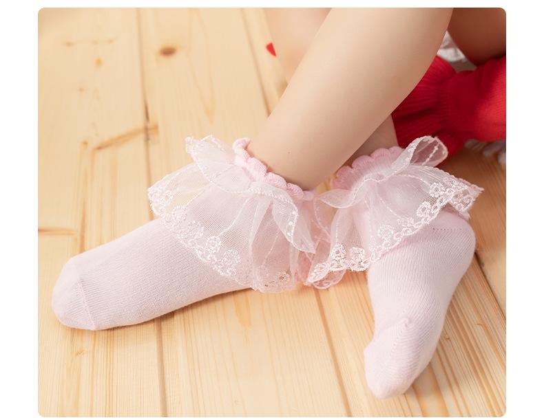 Calcetines para niños, venta al por mayor, nuevos calcetines de algodón de tubo medio de primavera, calcetines de encaje para niñas, lindos calcetines transpirables para niñas, venta al por mayor