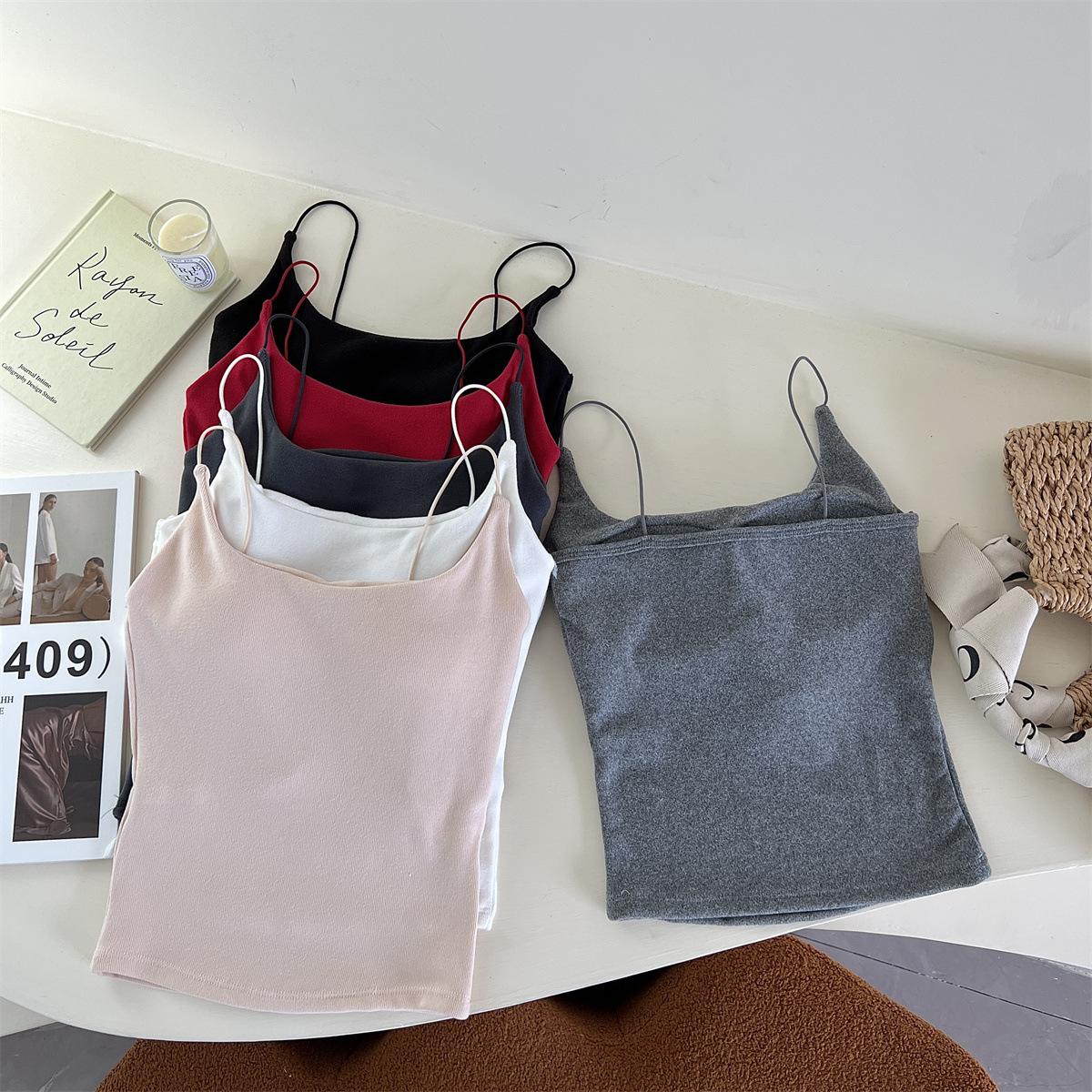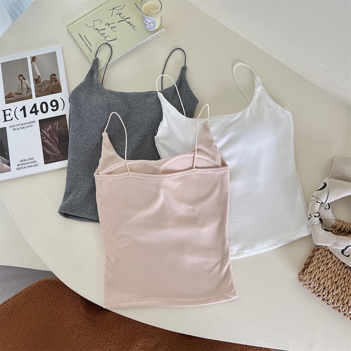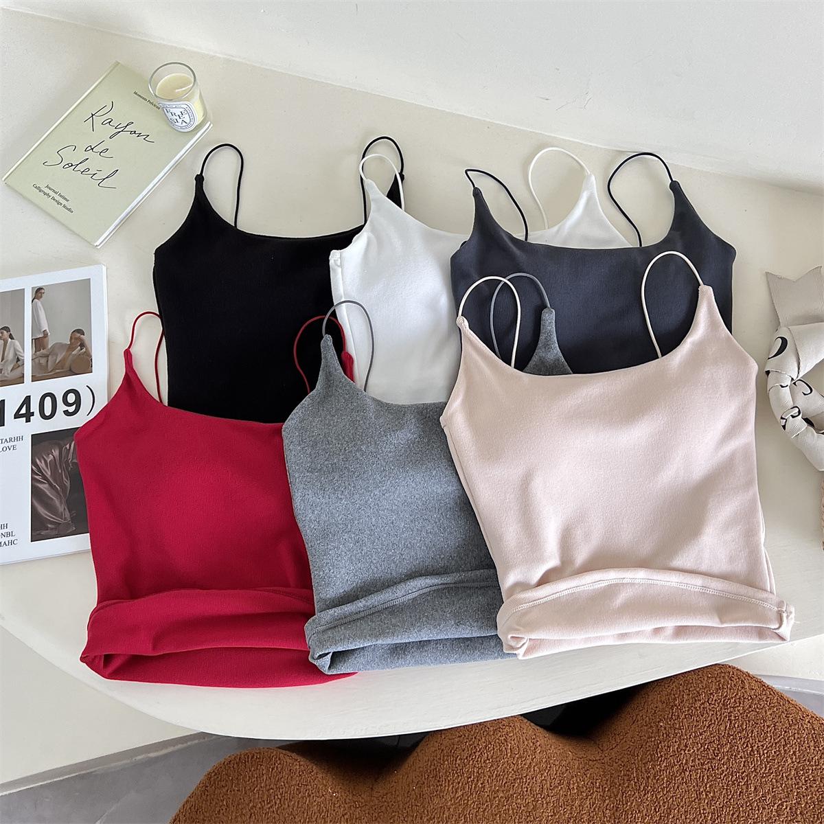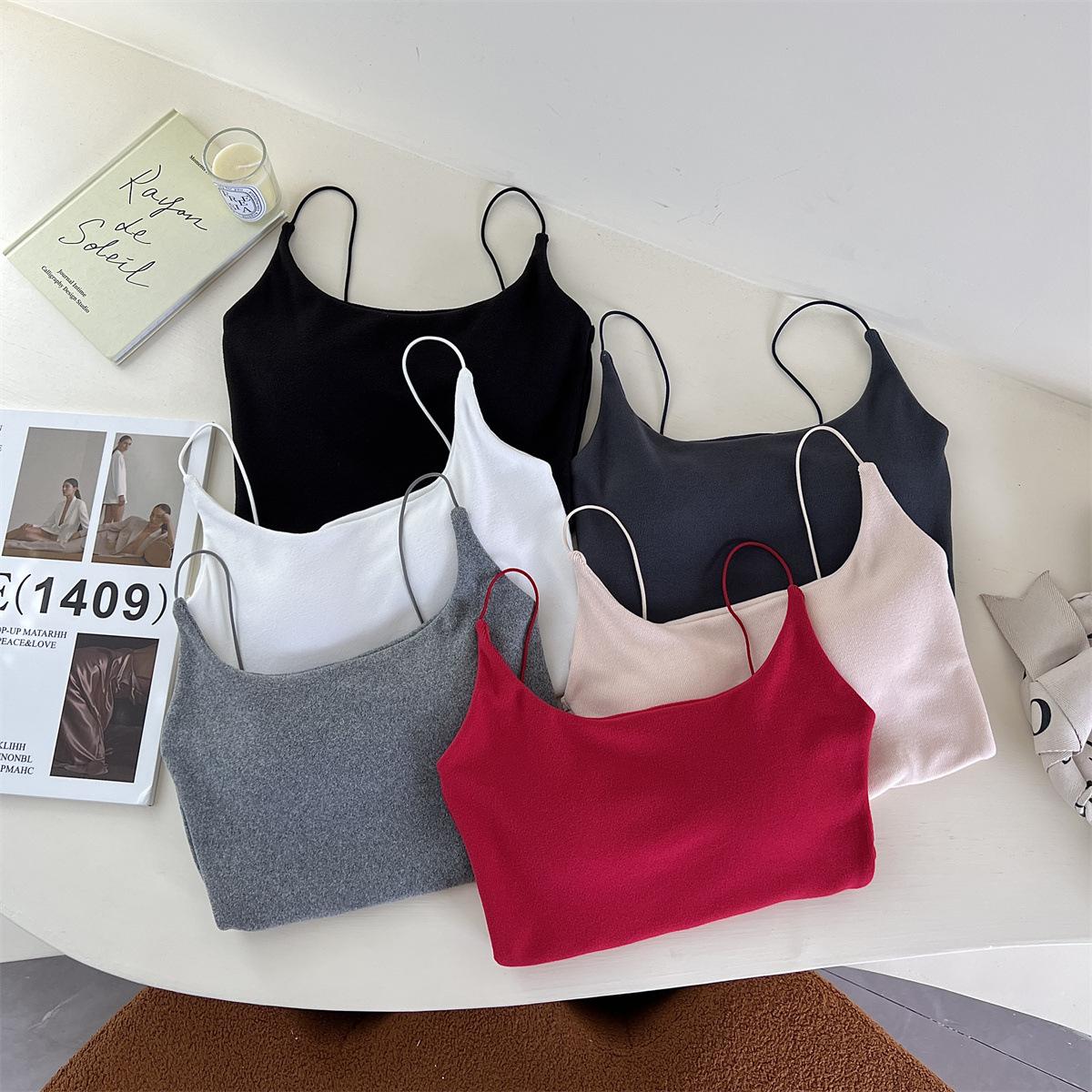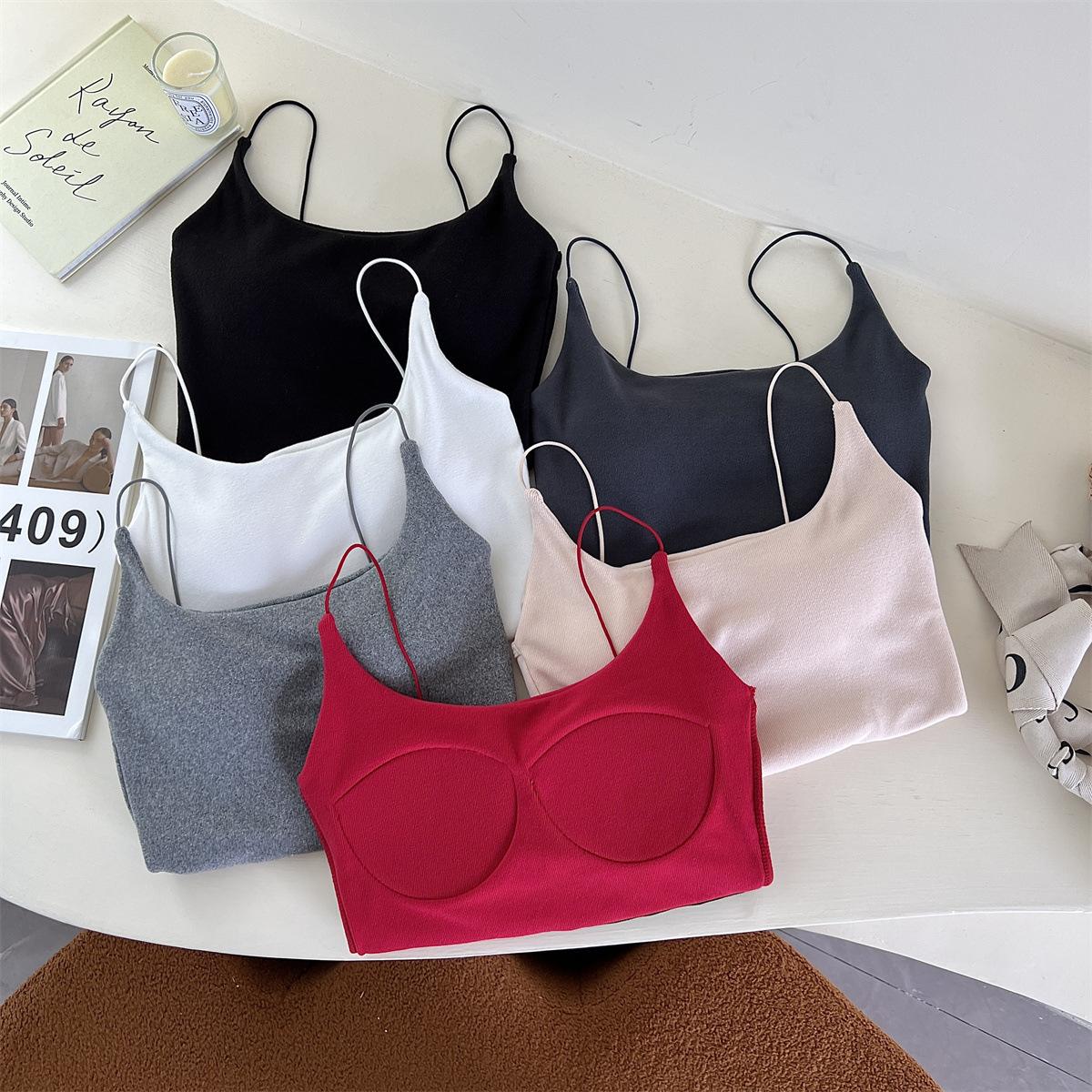 Camisola pequeña con tirantes cepillados y almohadilla para el pecho para mujer, ropa exterior para el cuidado de la piel, sujetador integrado, ropa interior de moda