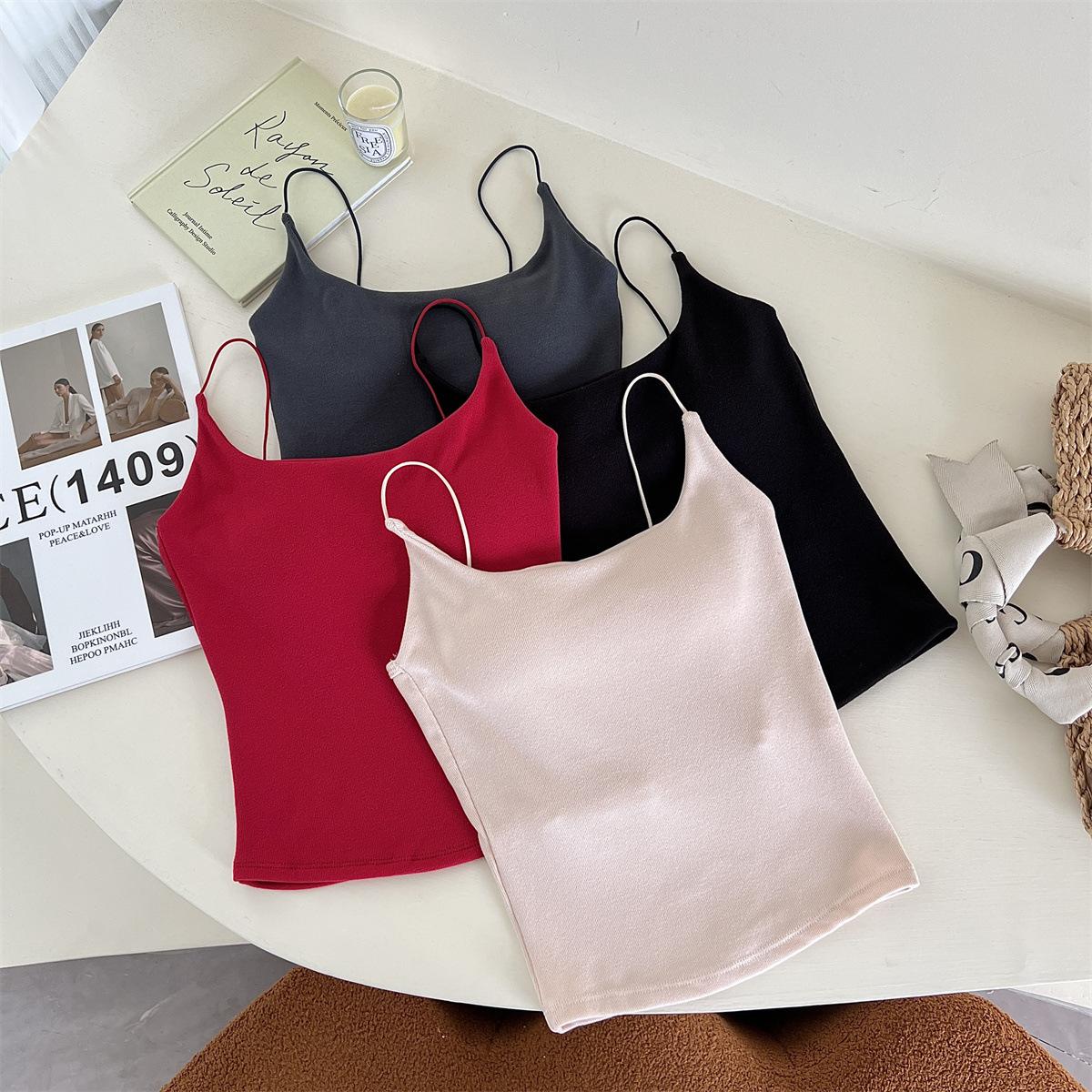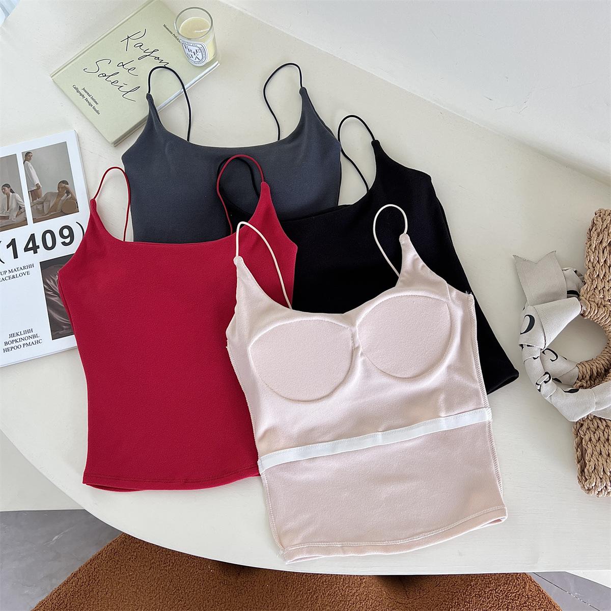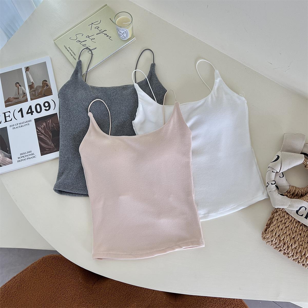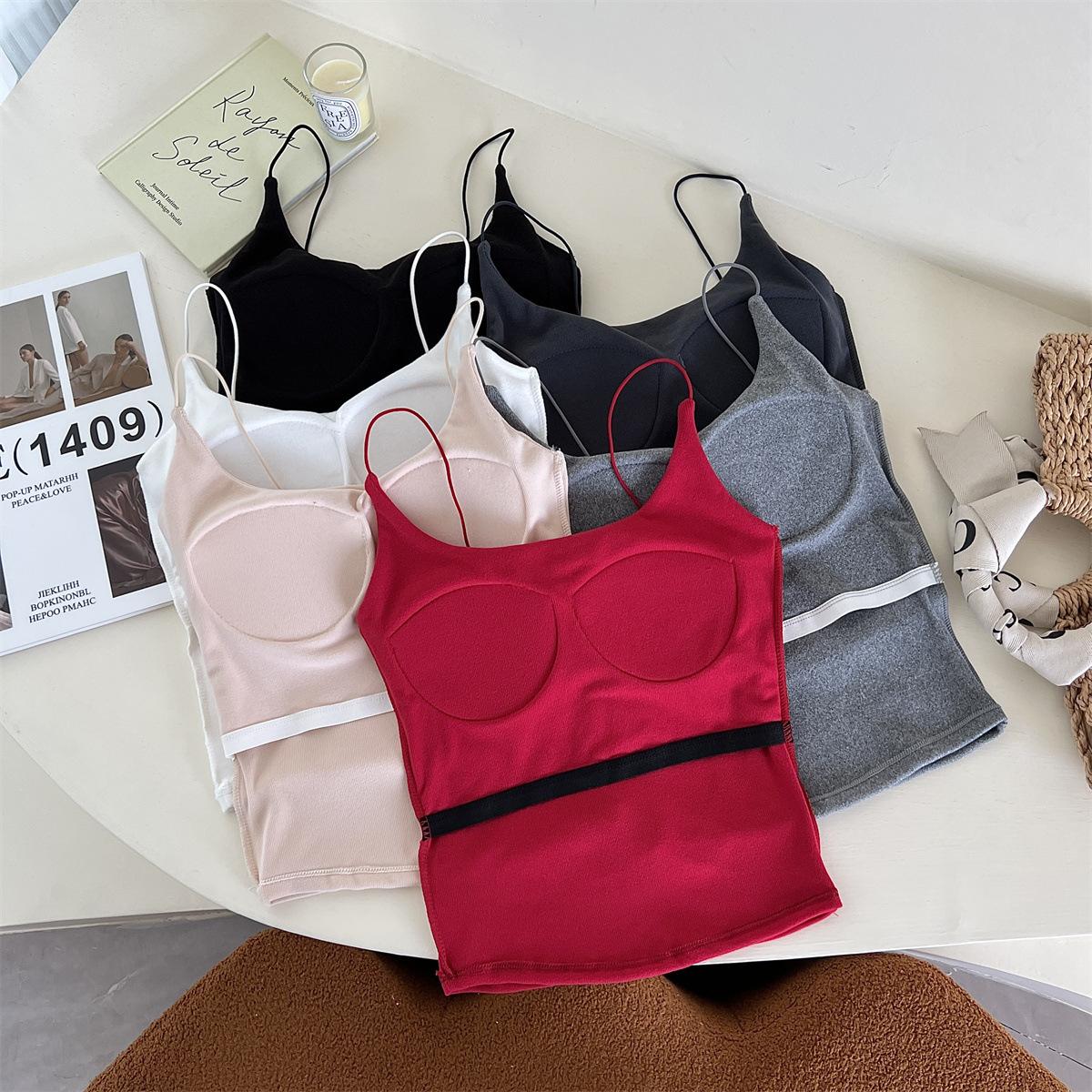 Camisola pequeña con tirantes cepillados y almohadilla para el pecho para mujer, ropa exterior para el cuidado de la piel, sujetador integrado, ropa interior de moda