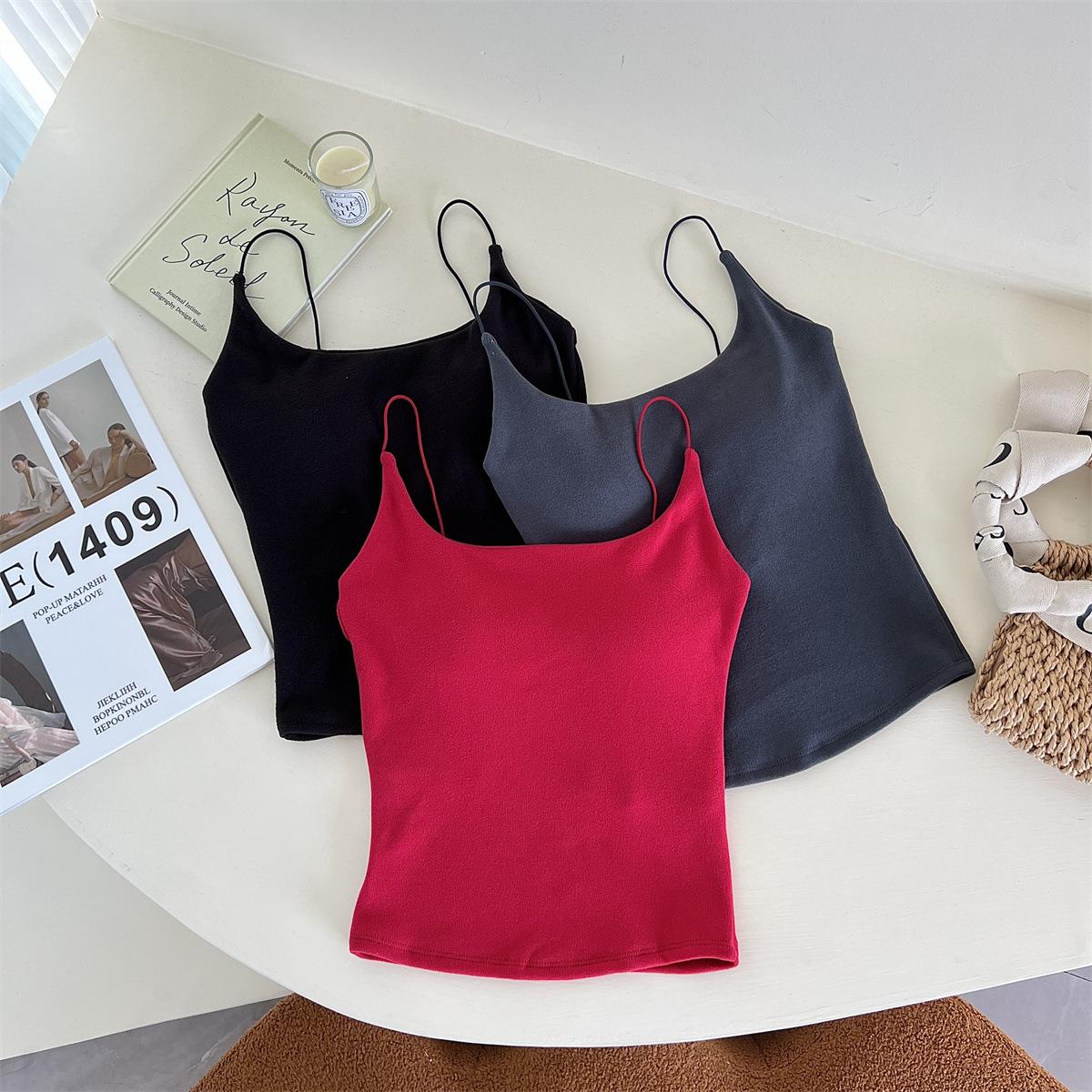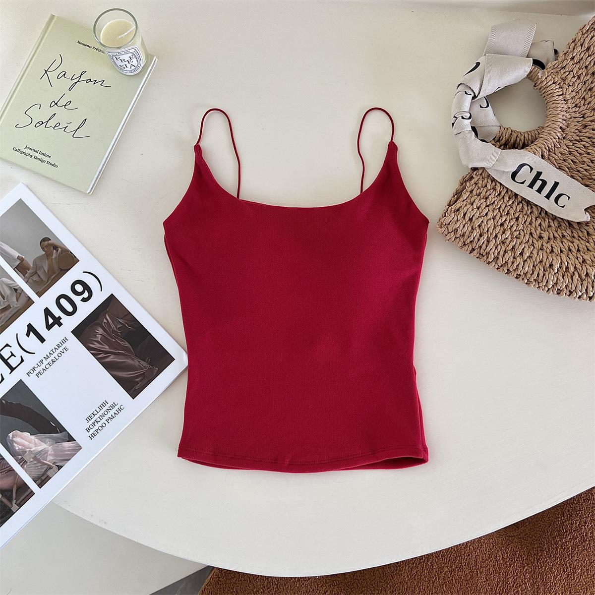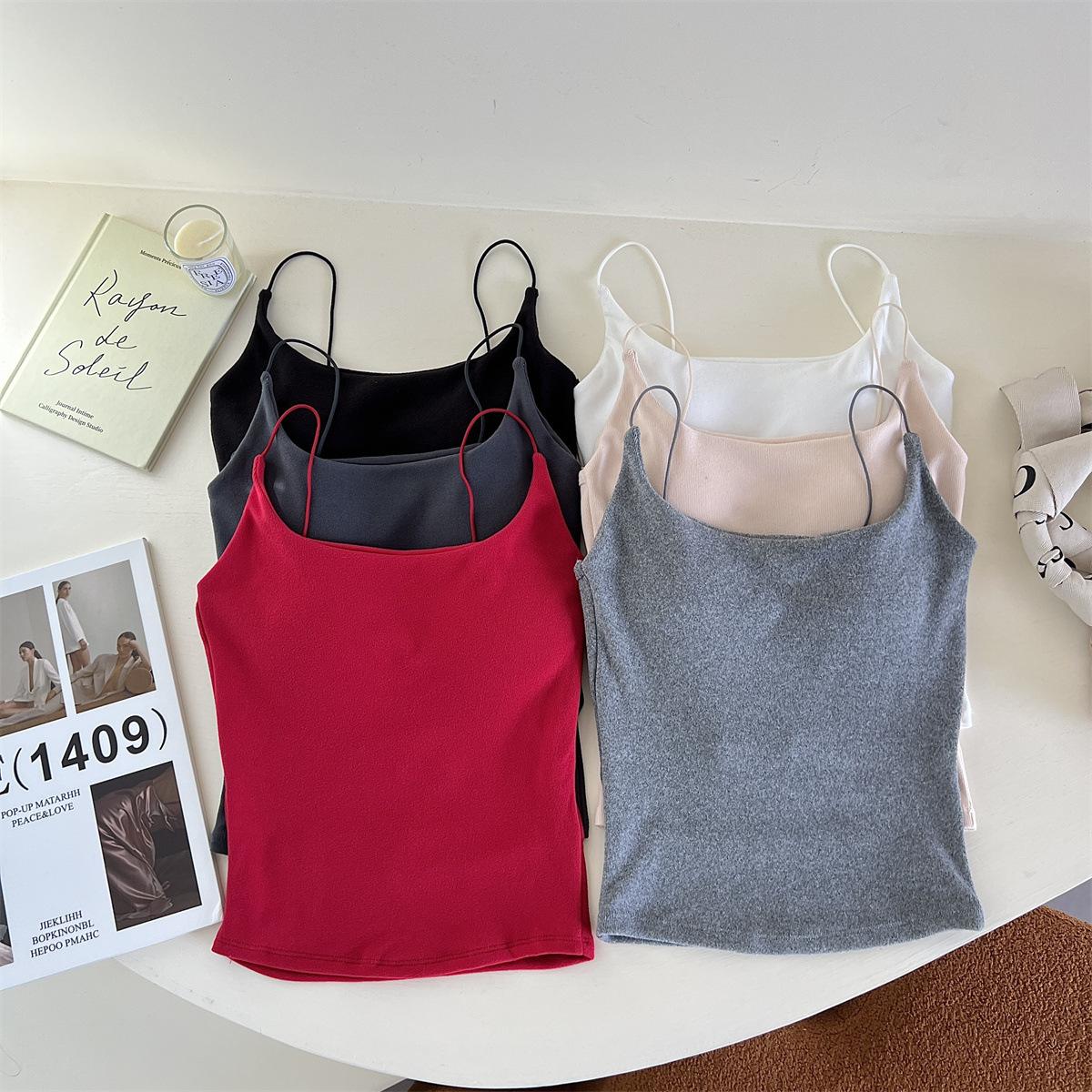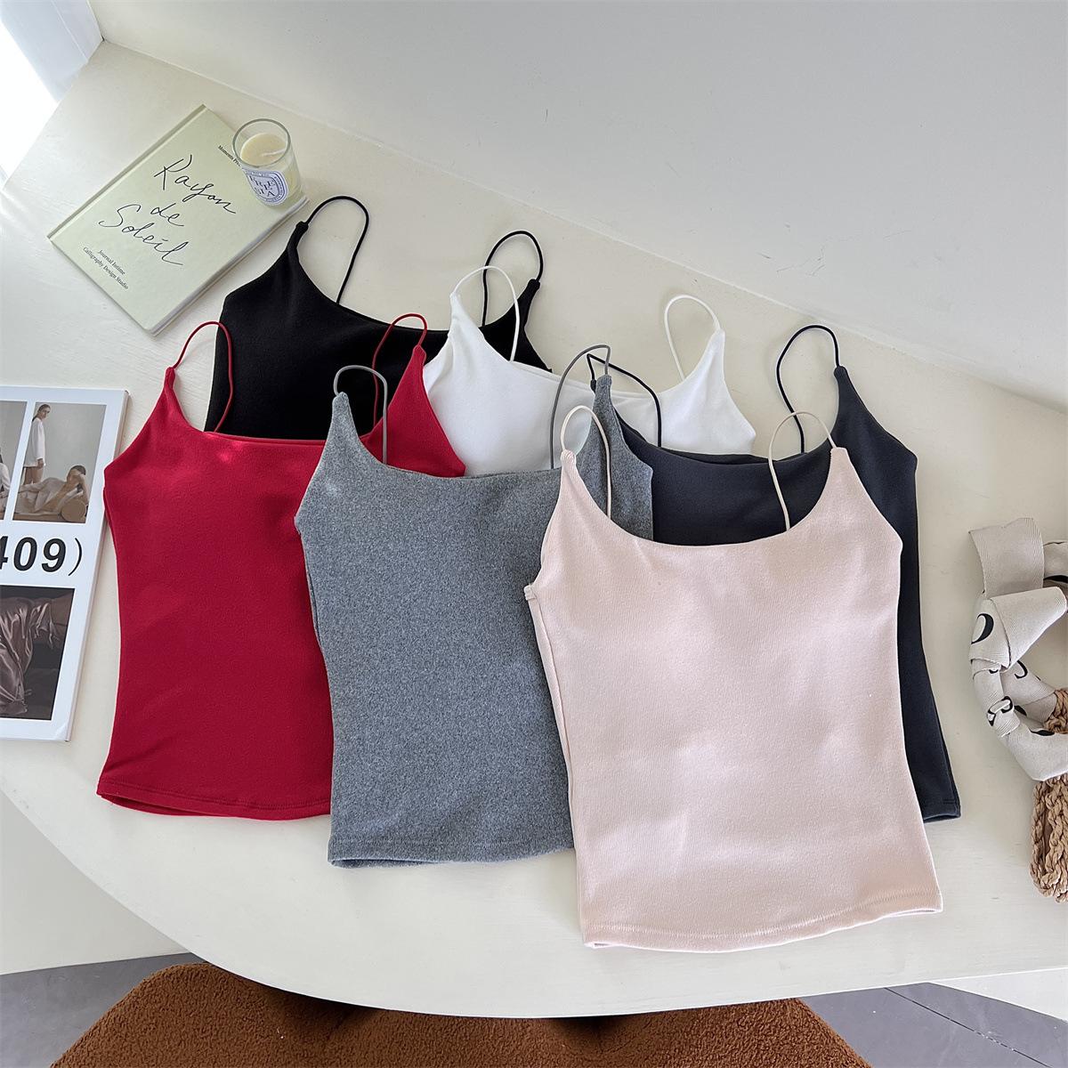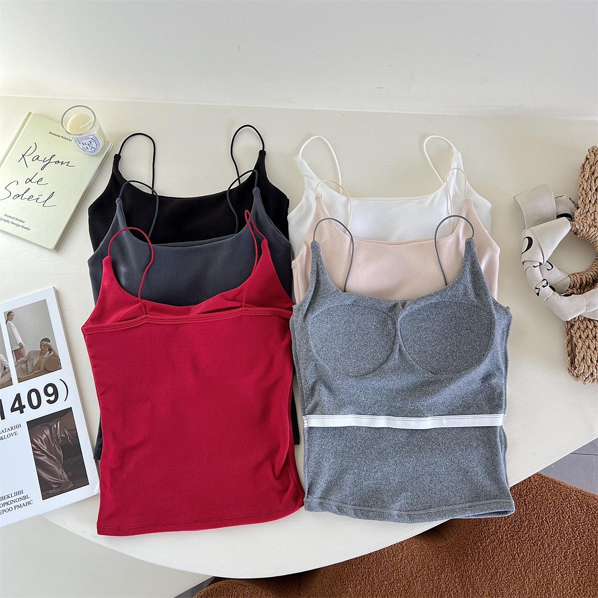 Camisola pequeña con tirantes cepillados y almohadilla para el pecho para mujer, ropa exterior para el cuidado de la piel, sujetador integrado, ropa interior de moda