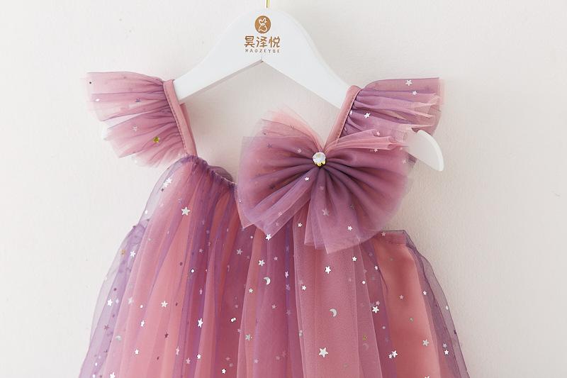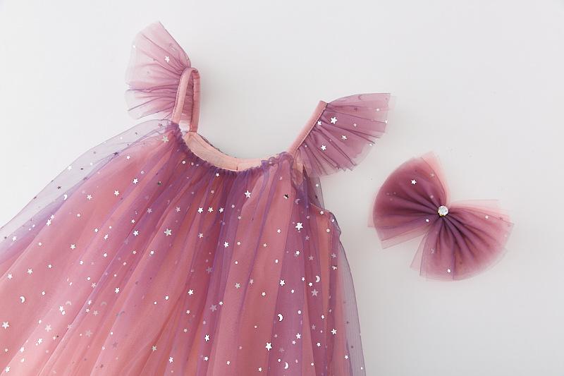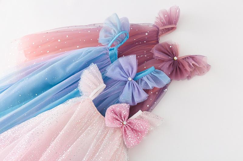 Accesorios para el cabello con lazo para niñas vestido de malla nuevo vestido de escenario para niños vestido de princesa para niña de las flores vestido de arcoíris con lentejuelas
