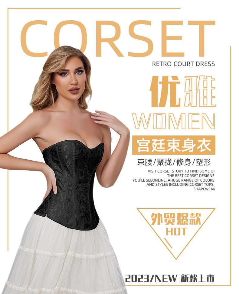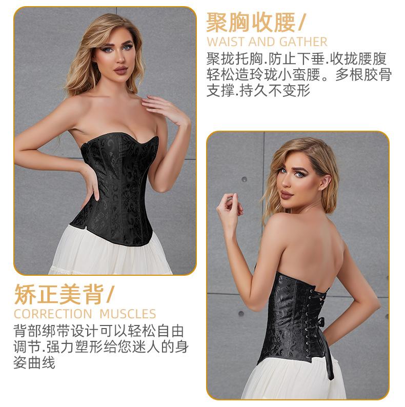Corsé 2024 Nuevo Comercio Exterior Retro Estampado Strapless Cintura de Reloj de Arena Vestido de Noche para Usar Palacio Sujetador