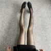Medias de terciopelo ultrafinas con letras en inglés, corte arbitrario, finas, antigancho, de seda, negras, sexys, de seda negra