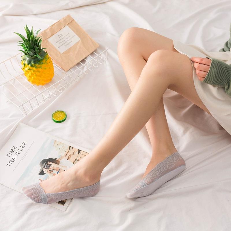 Calcetines náuticos de seda de hielo para mujer, calcetines de algodón de boca baja, calcetines invisibles para pies, calcetines cortos finos de verano, calcetines de verano de encaje antideslizantes de silicona.
