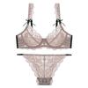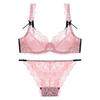 Venta directa de fábrica, nuevo conjunto de sujetador sexy de encaje pequeño con pecho grande y ropa interior hueca ultrafina para mujer |