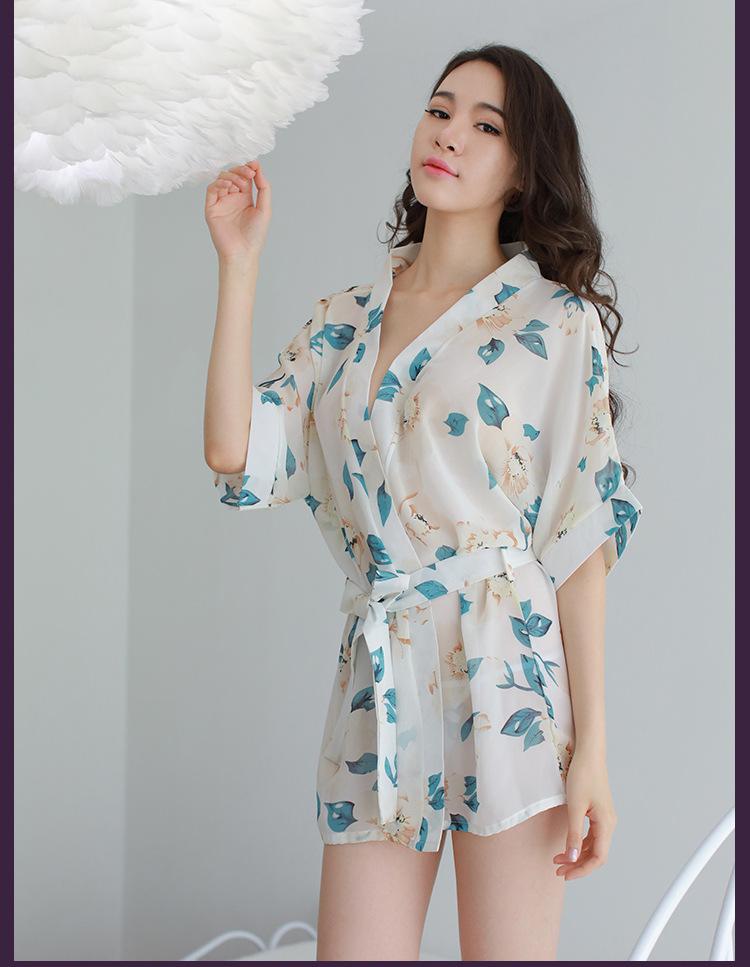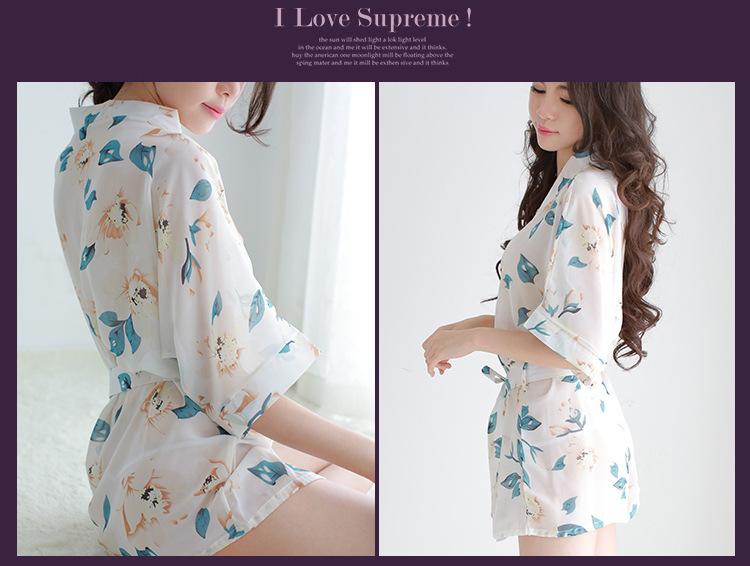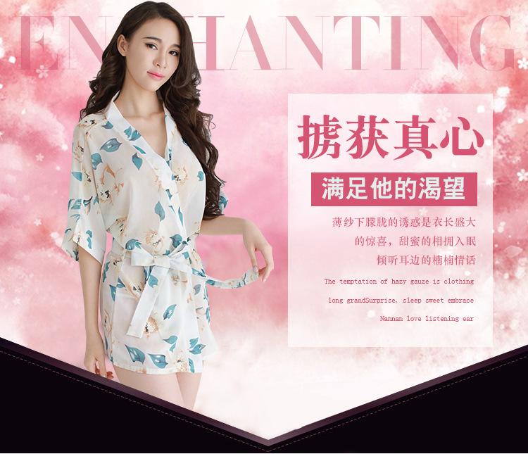 Pijama sexy de verano para mujer, camisón sexy de seda helada, kimono de tul transparente, bata de baño, ropa interior sexy, tentación para mujer