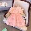Vestido de Niña Coreano 2025 Verano Nuevo Vestido de Princesa para Niños Falda de Malla de Encaje para Bebé Ropa para Niños