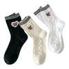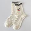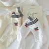 Calcetines de algodón japoneses de tres rayas para mujer, calcetín fino de primavera, verano y otoño, hechos a mano, con diseño de cerezas de amor, venta al por mayor