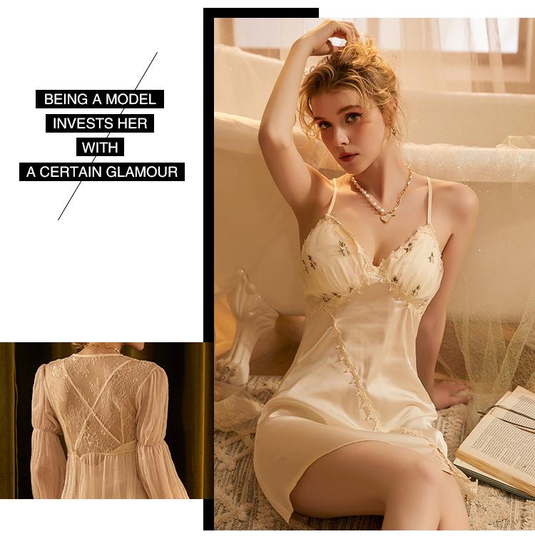 3066 Camisón Sexy Estilo Francés Estilo Corte Lujo Ligero Puro Flor Flotante Tirantes Estilo Princesa Hada Estudiante Pijama Combinable