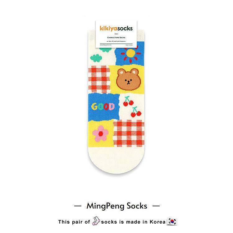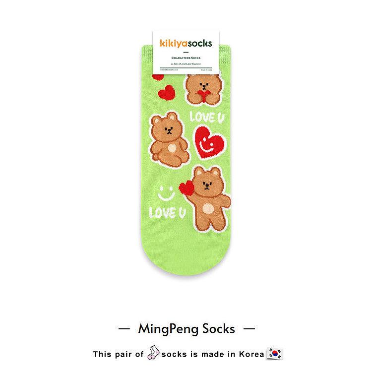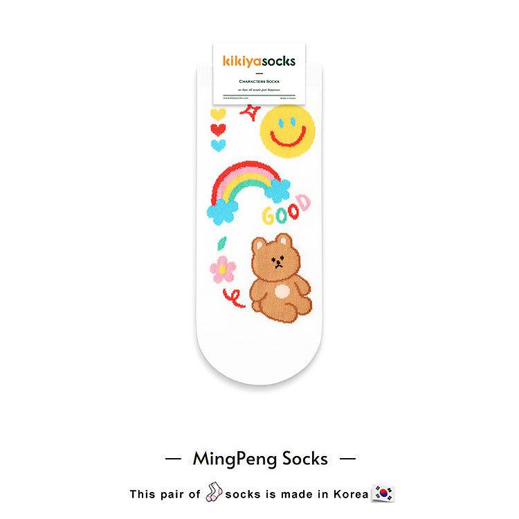 0 Calcetines de Corea del Sur calcetines de algodón para mujer de tubo corto con dibujos animados de animales oso kikikiya primavera nuevo dibujos animados casual
