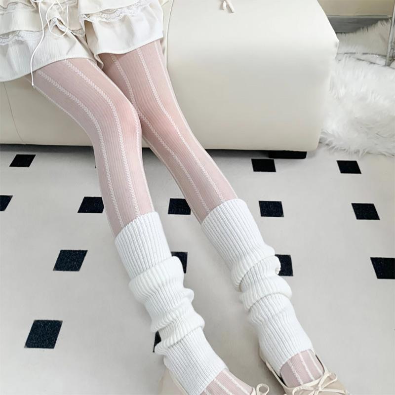 Patrón vertical amor medias blancas estilo ballet para mujer primavera y verano delgadas jk ultrafinas sensación nude deseo puro anti-enganches seda pantimedias de fondo
