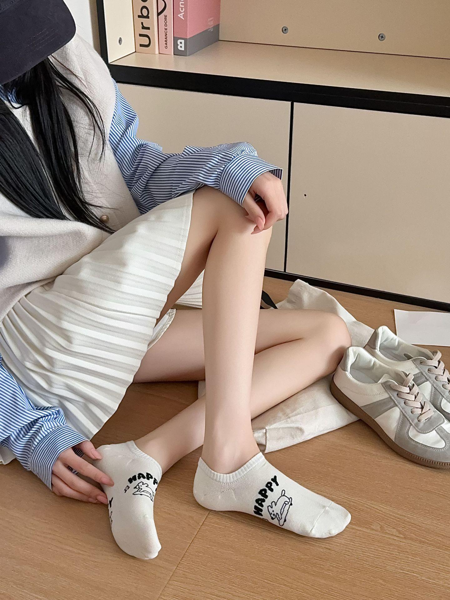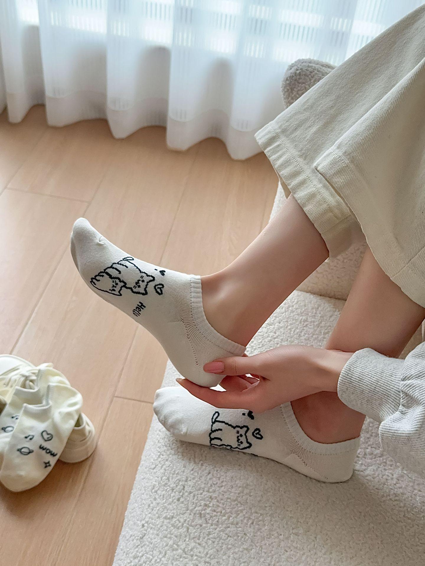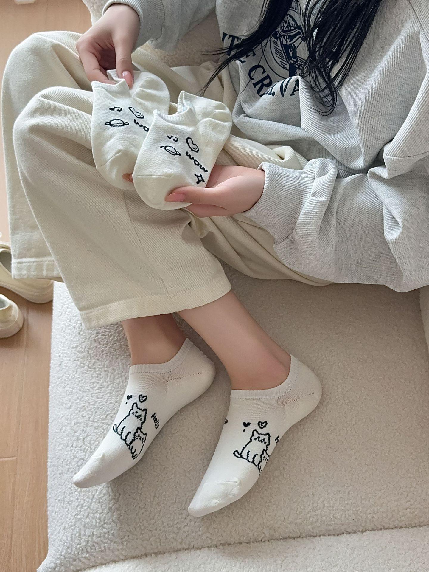 Calcetines blancos con diseño de gatitos para mujer, de verano, finos, de corte bajo y boca baja, de algodón con dibujos animados, para estudiantes, estilo japonés.