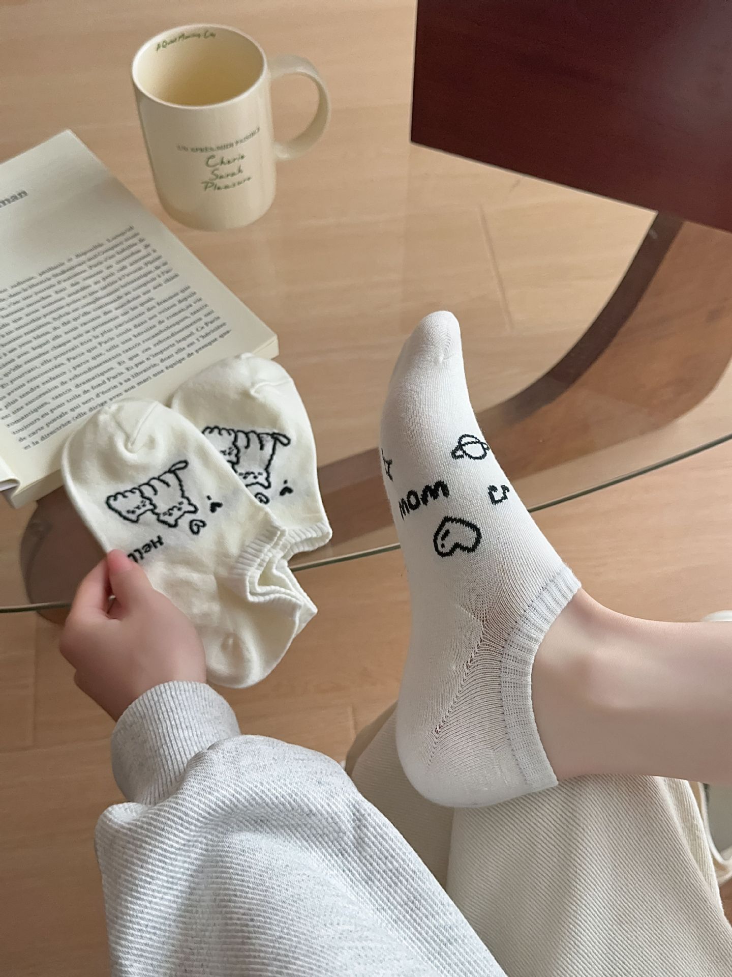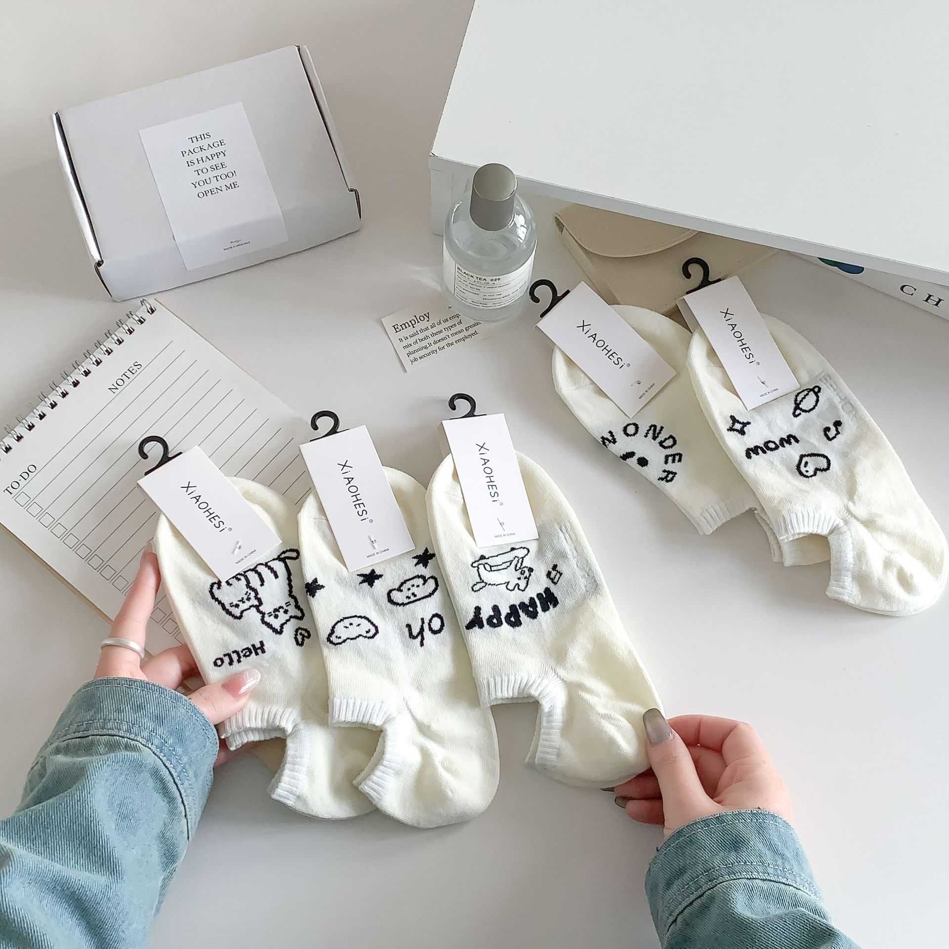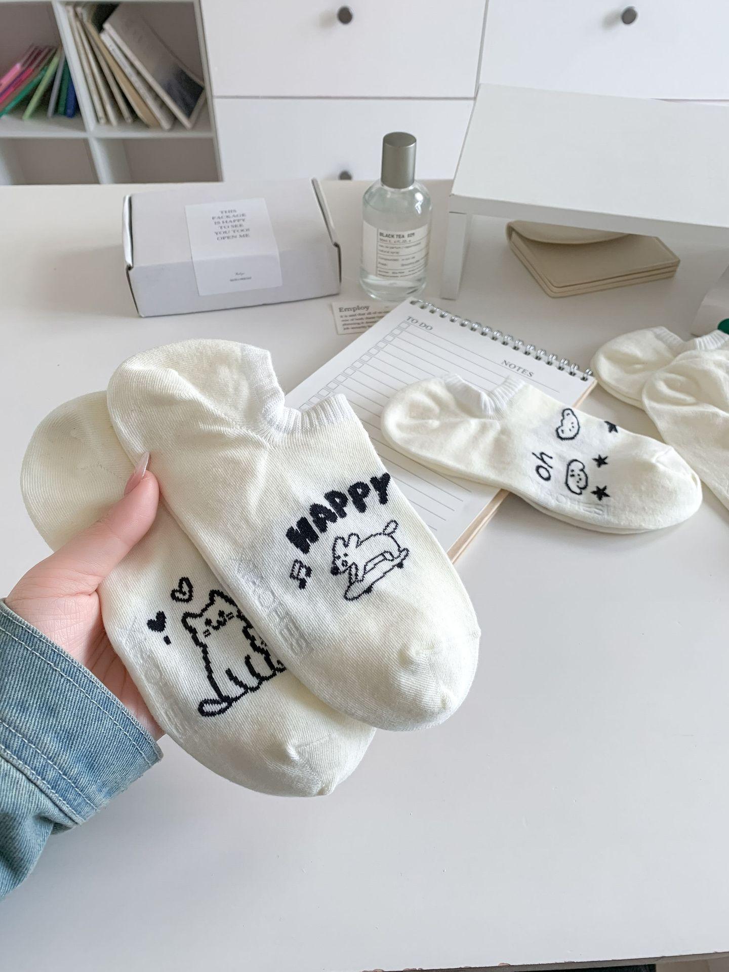 Calcetines blancos con diseño de gatitos para mujer, de verano, finos, de corte bajo y boca baja, de algodón con dibujos animados, para estudiantes, estilo japonés.