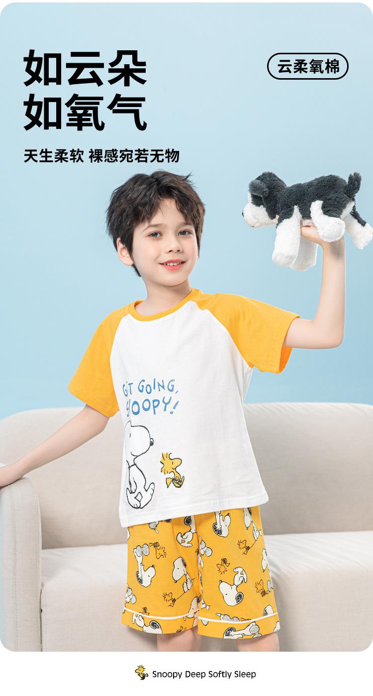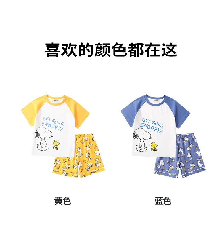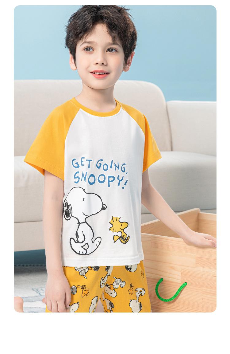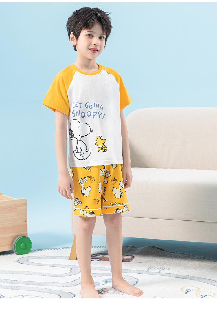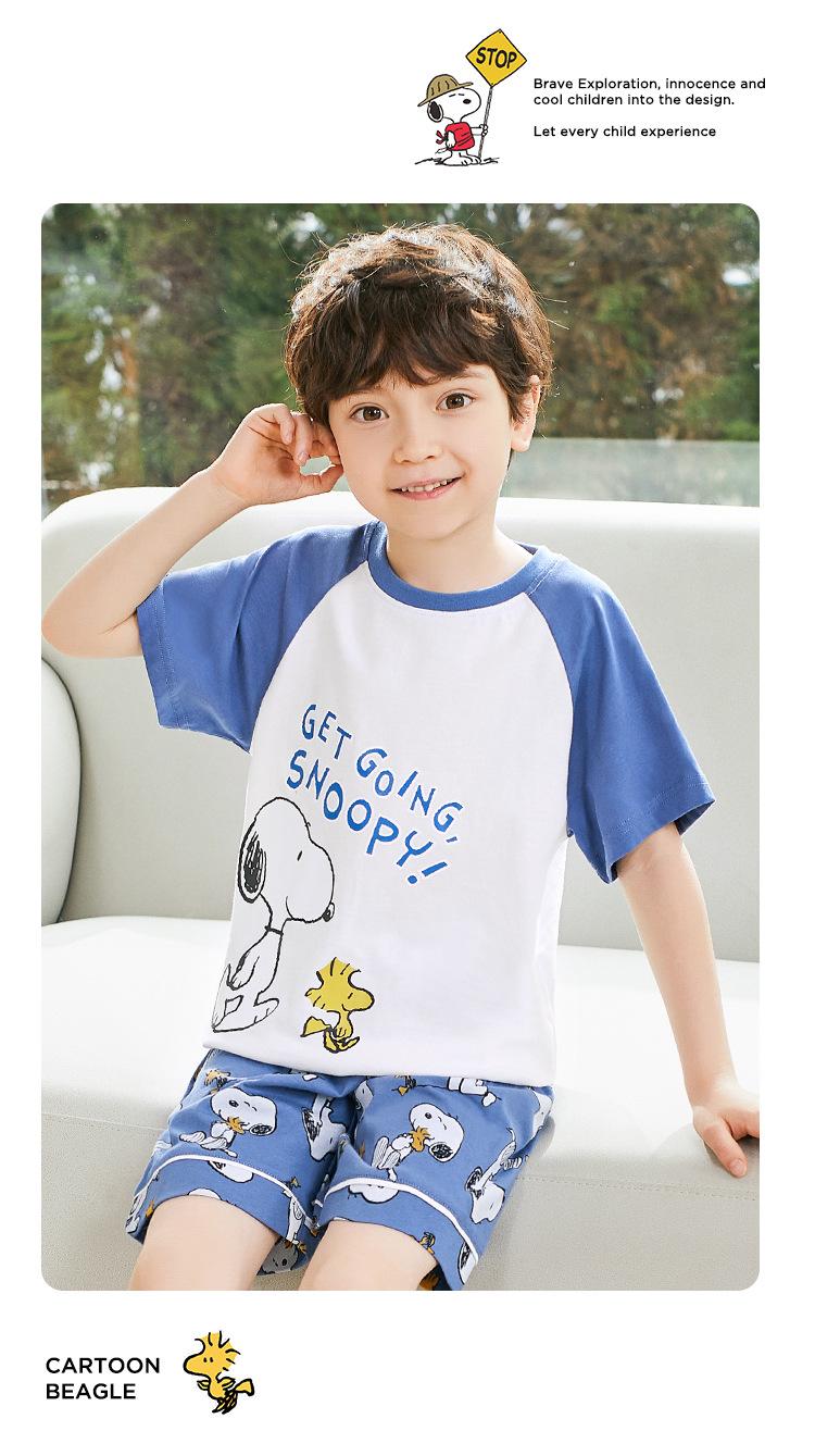 Conjunto de pijama de verano de algodón para niños de Snoopy, pantalones cortos de manga corta para niños, ropa de hogar para niños medianos y grandes, pijamas para niños
