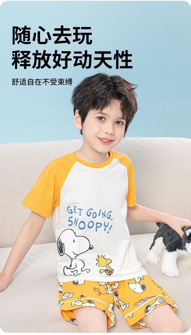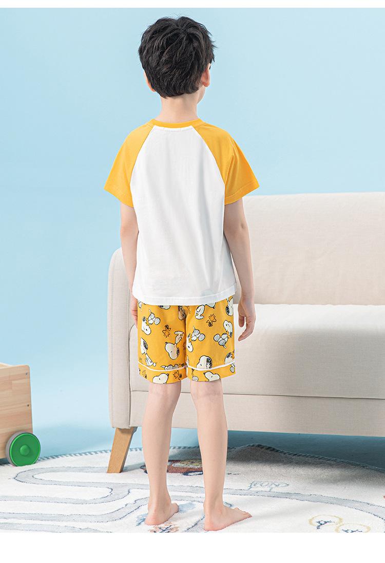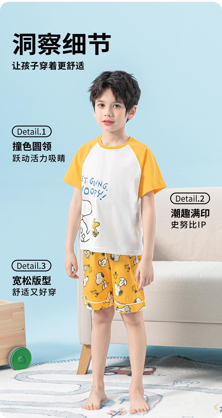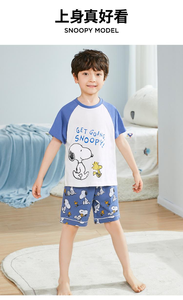 Conjunto de pijama de verano de algodón para niños de Snoopy, pantalones cortos de manga corta para niños, ropa de hogar para niños medianos y grandes, pijamas para niños