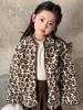 Abrigo de piel con estampado de leopardo para niña, otoño e invierno 2023, nueva ropa infantil, chaqueta de lana de cordero con cuello estilo occidental para niños