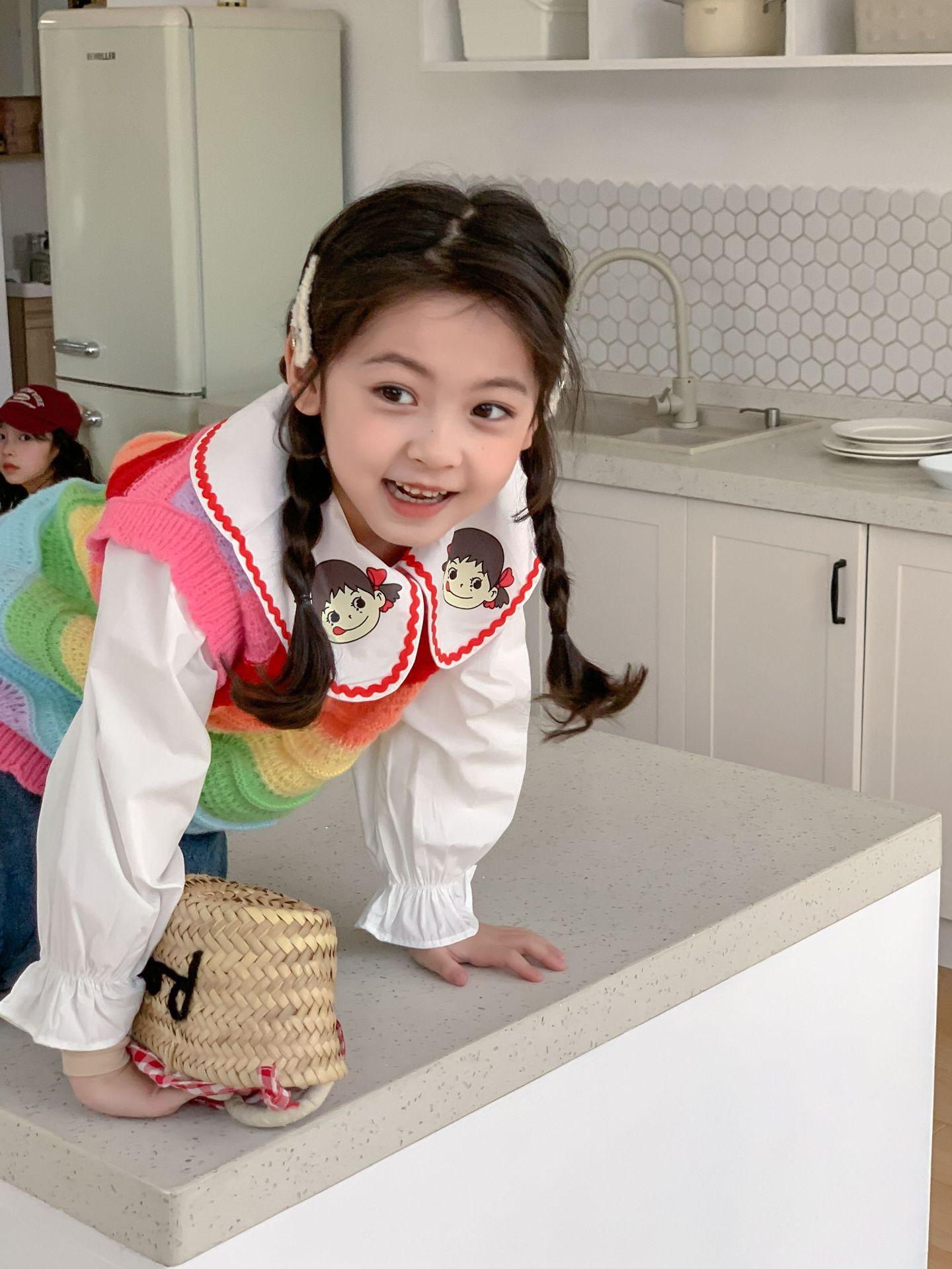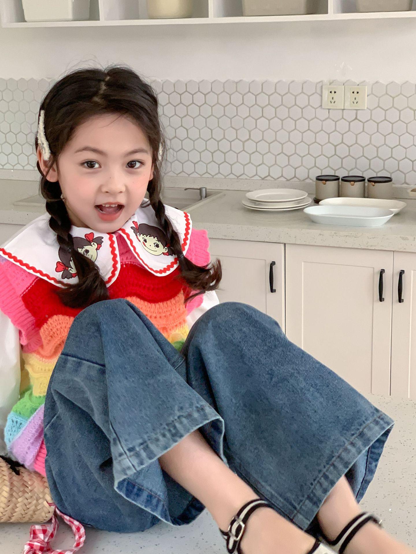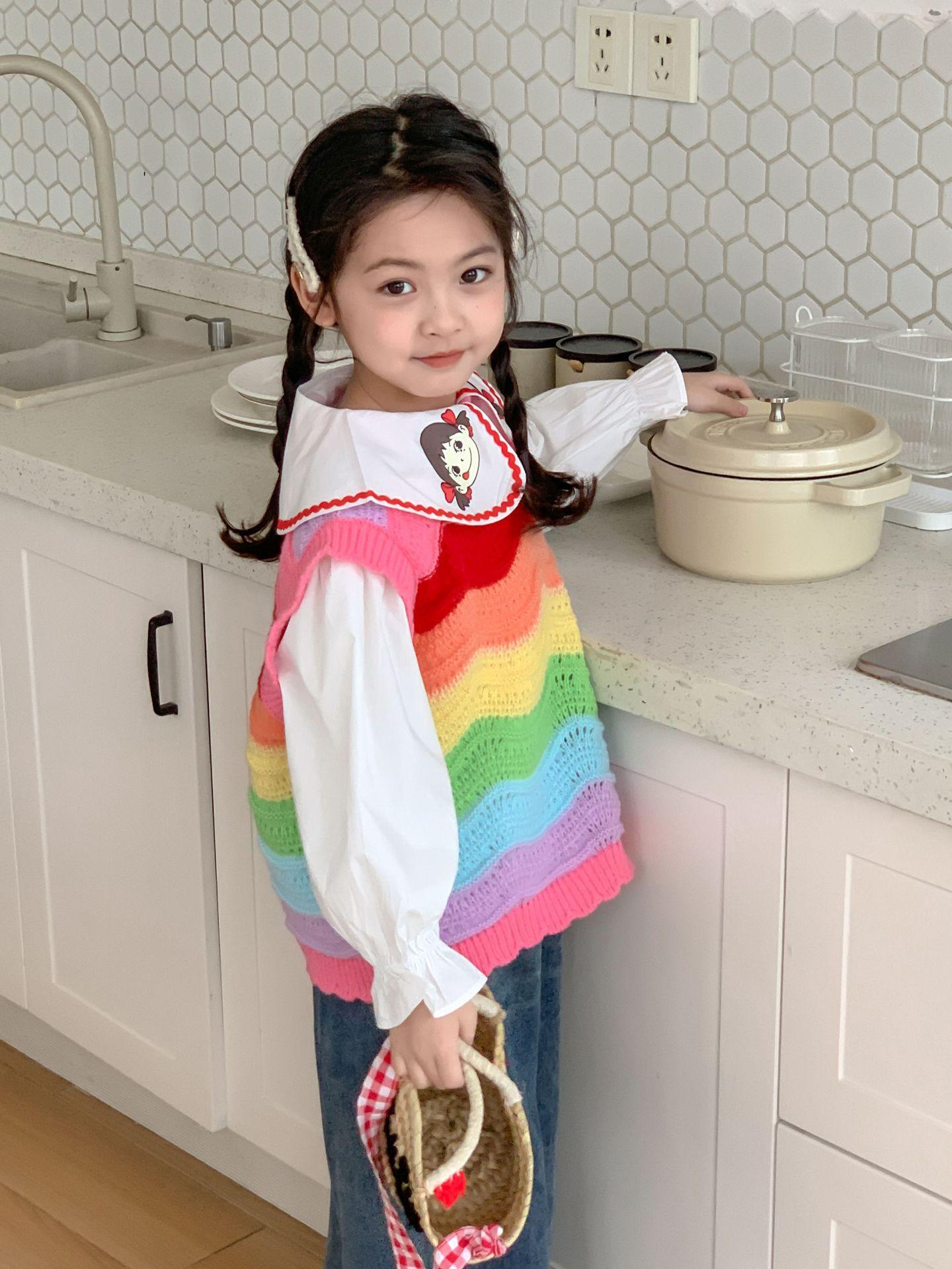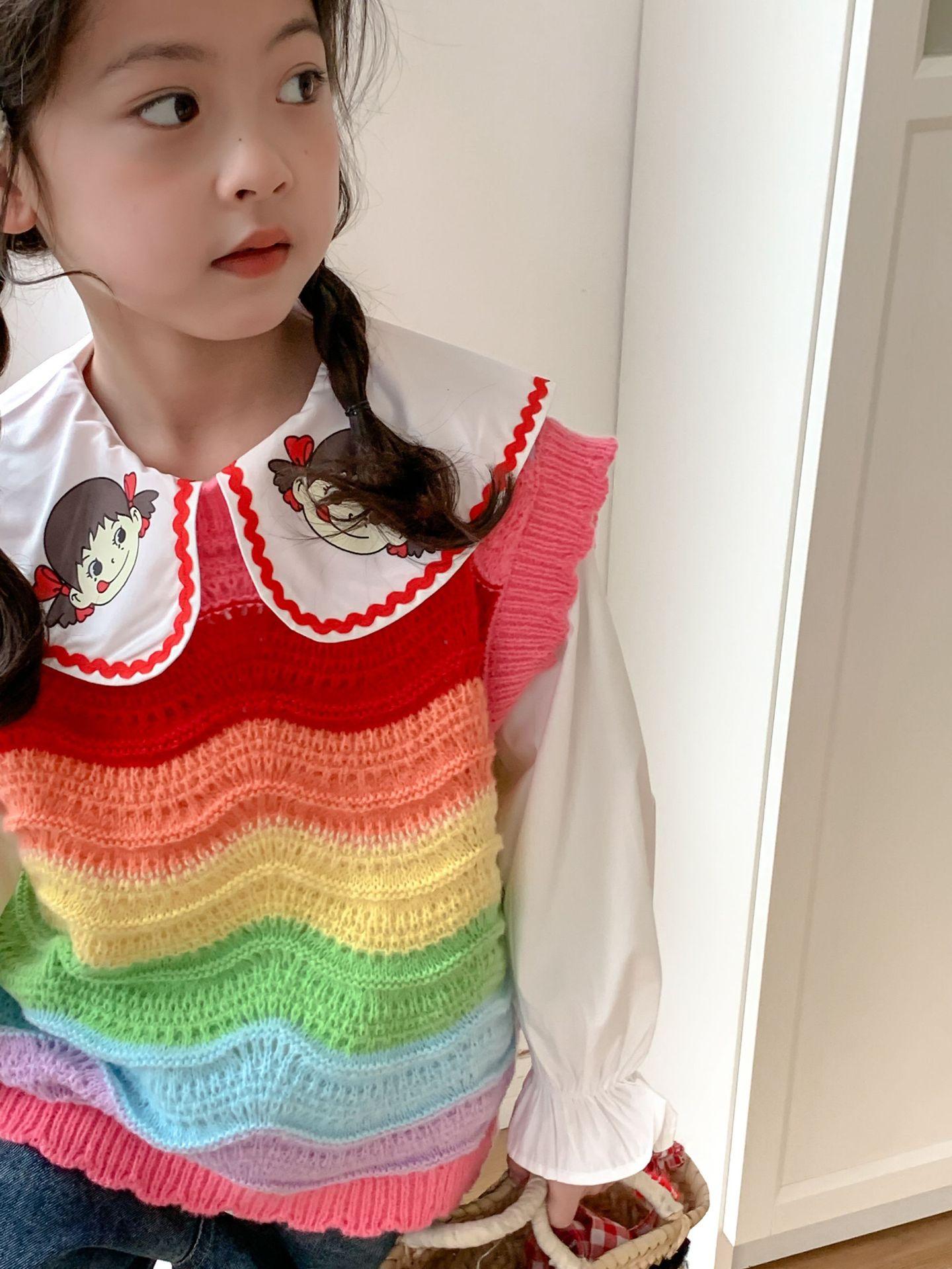 Chaleco para Niños 2024 Primavera Chaleco de Lana sin Mangas Ondulado con Costuras de Color para Niñas Top de Suéter Lindo para Bebé para Mujer