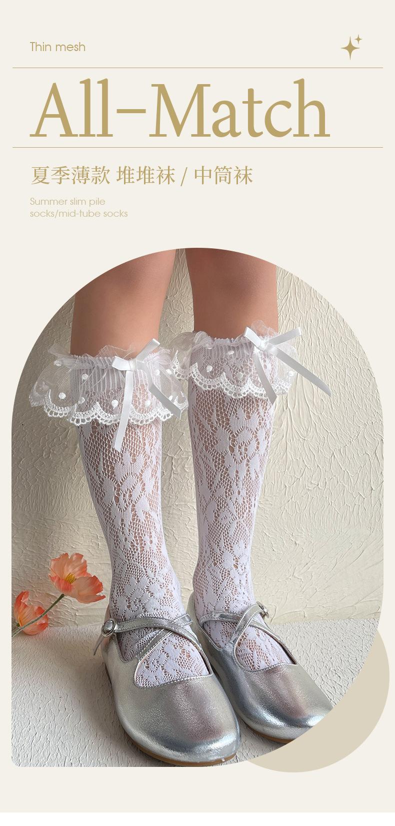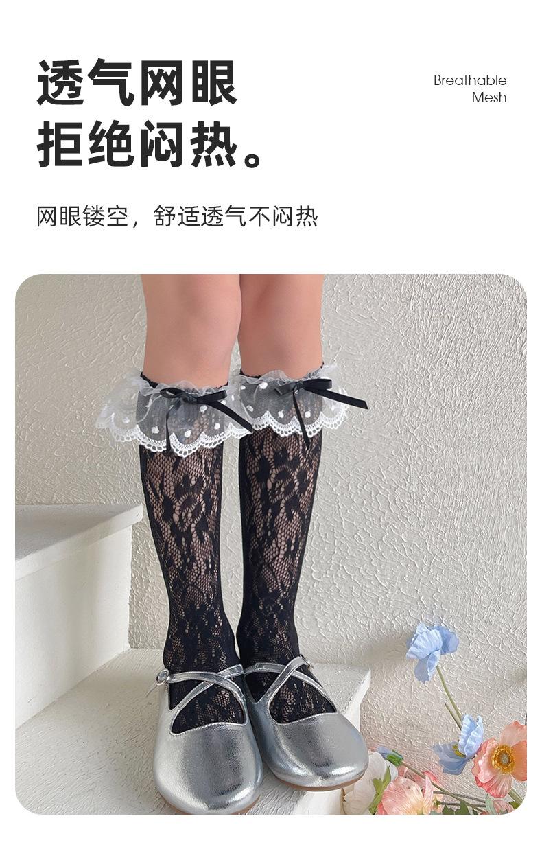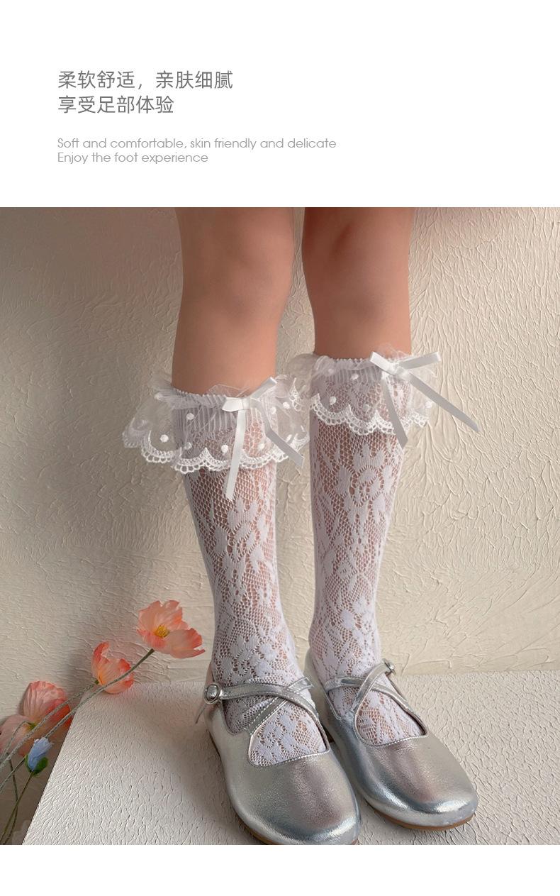 2024 nuevas medias para niños, calcetines de malla hueca, calcetines de moda de primavera y verano para niñas, calcetines hasta la mitad de la pantorrilla, calcetines de princesa de estilo coreano que combinan con todo