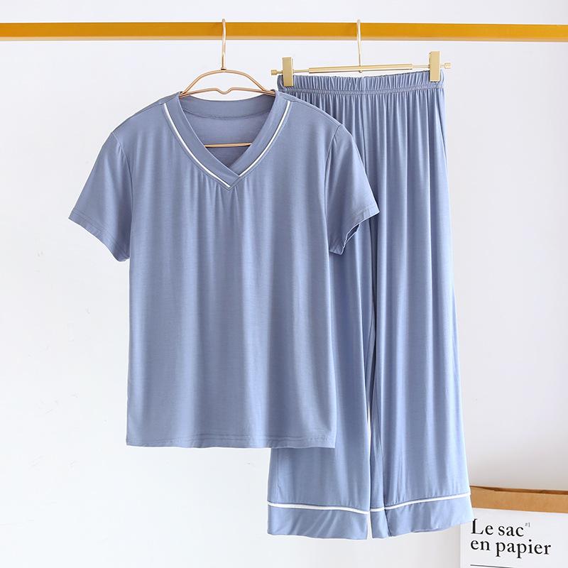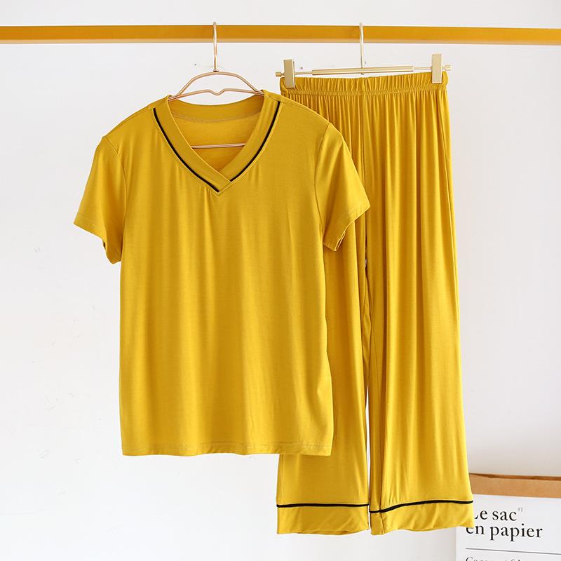 Pijamas de modal para mujer, primavera y verano, pantalones cortos de manga corta, novedad de 2024, traje informal holgado sin copa para el hogar