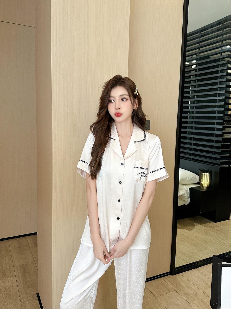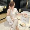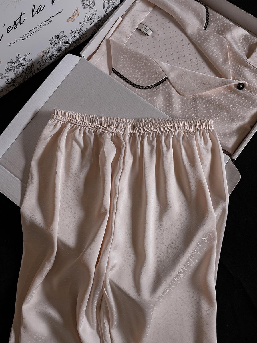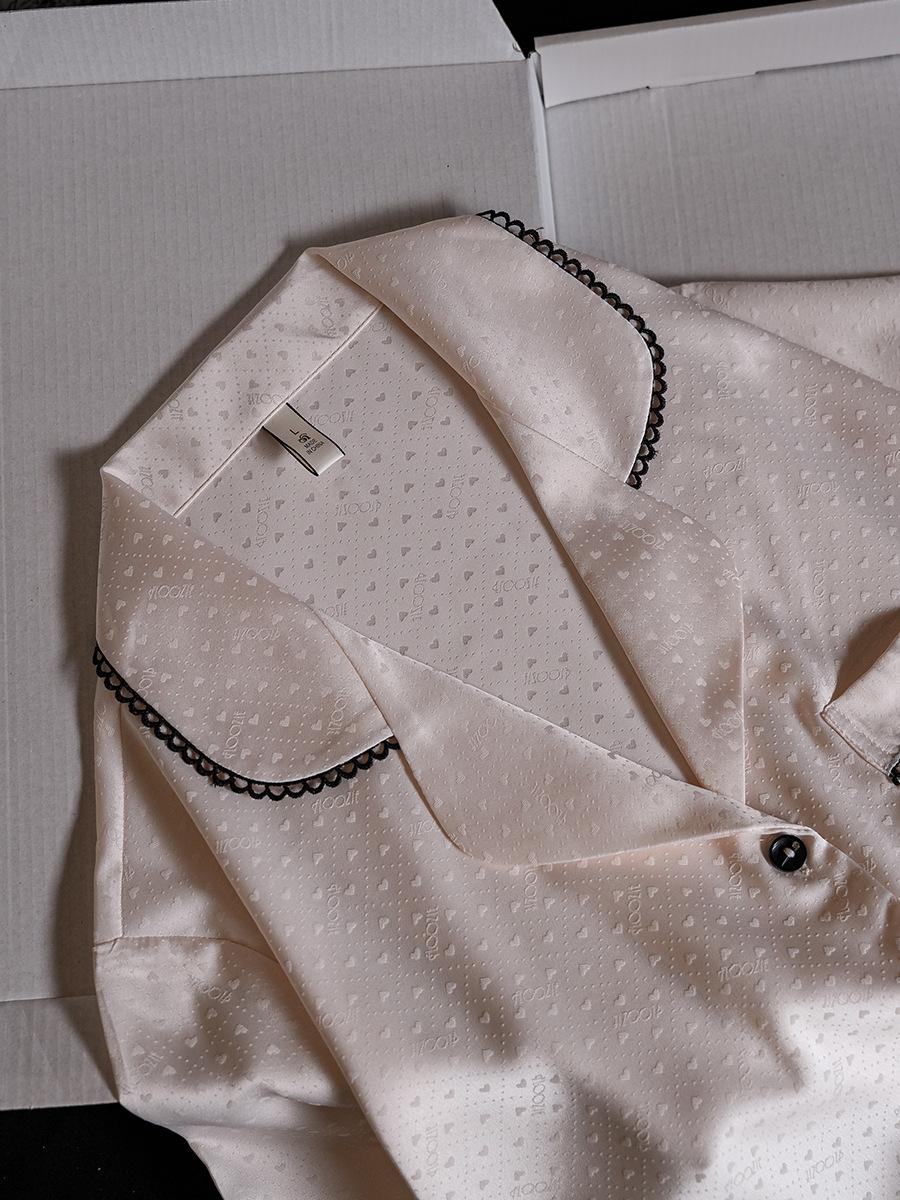 Pijama para Mujer Estilo Dulce y Lindo Jacquard Corazoncito Primavera y Verano Seda de Hielo Manga Corta Conjunto de Ropa para Casa