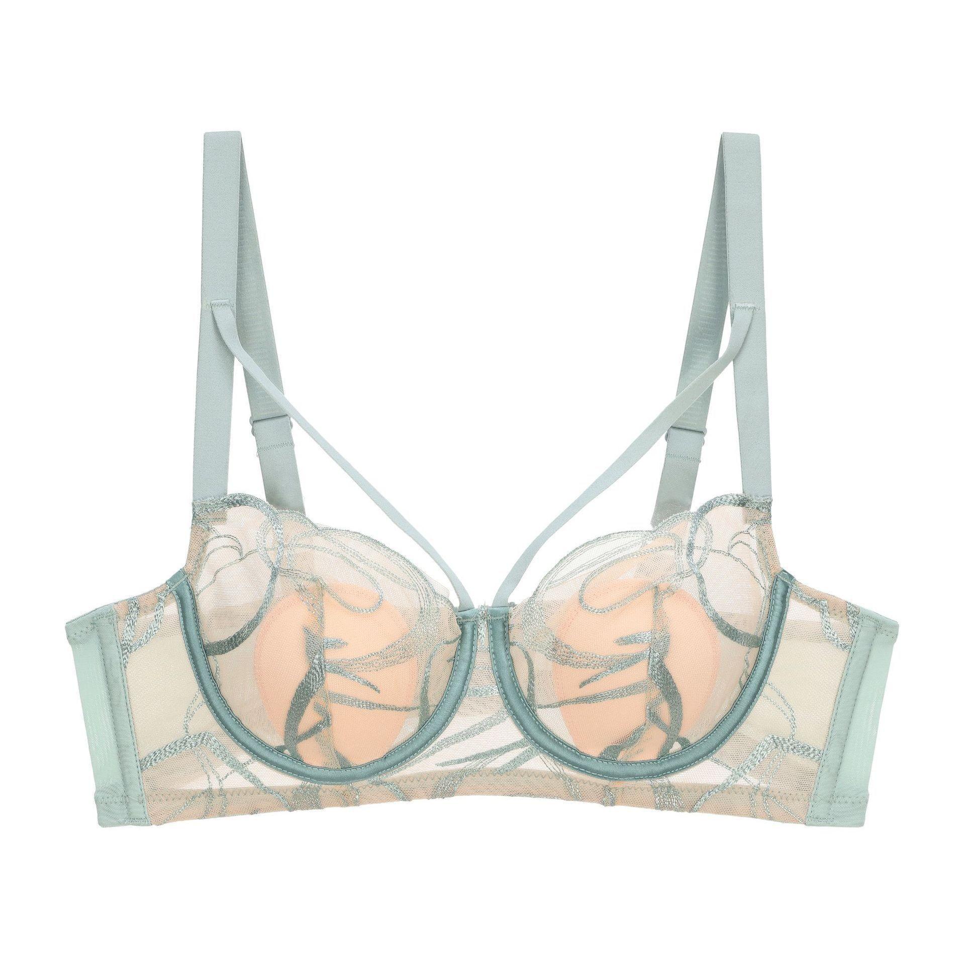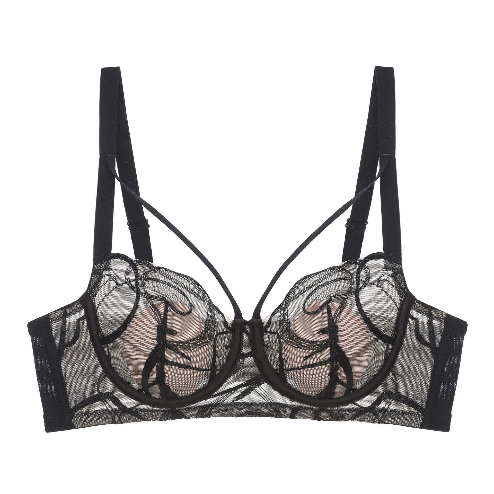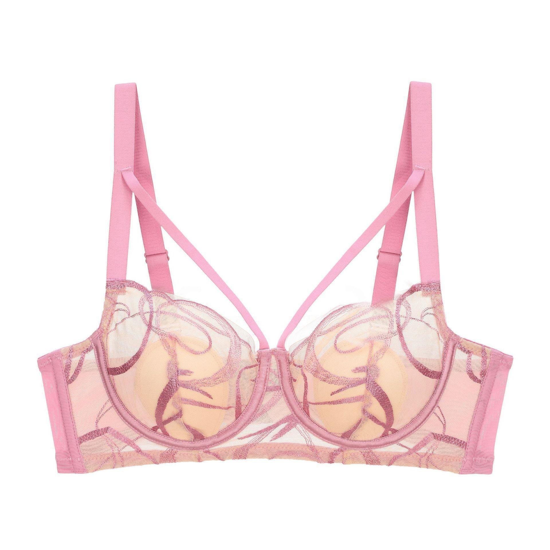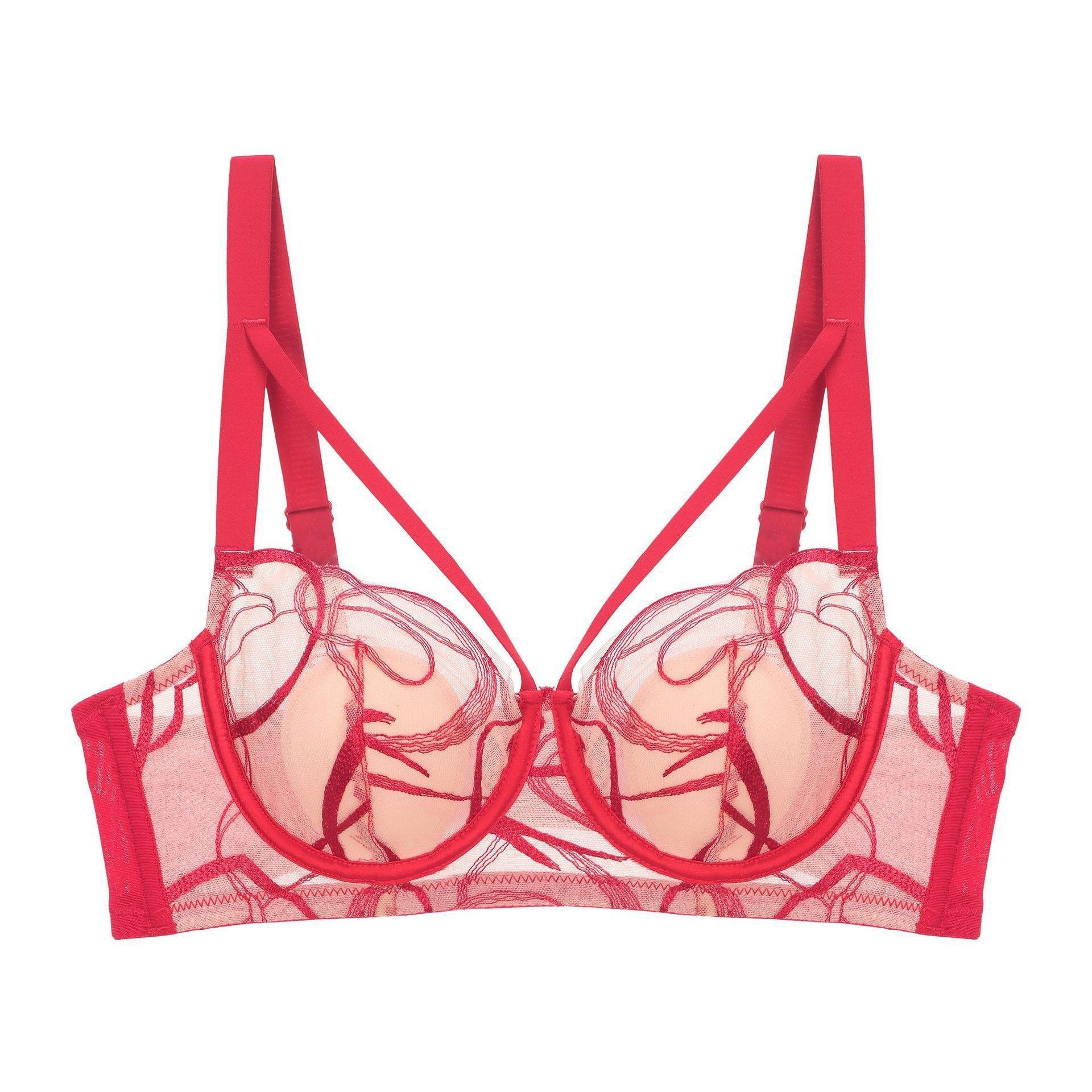 Ropa interior estilo francés sexy pintura a tinta bordada encaje ropa interior copa orejas de conejo pecho grande pequeño talla grande push up sujetador