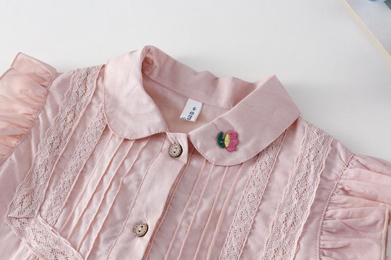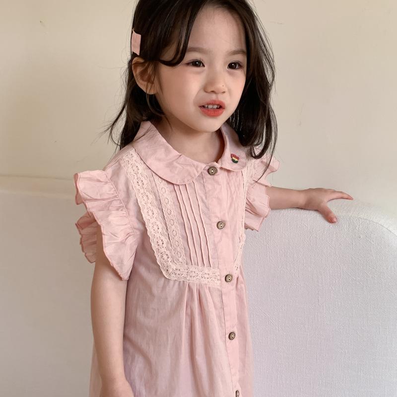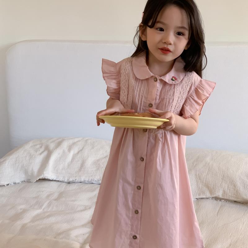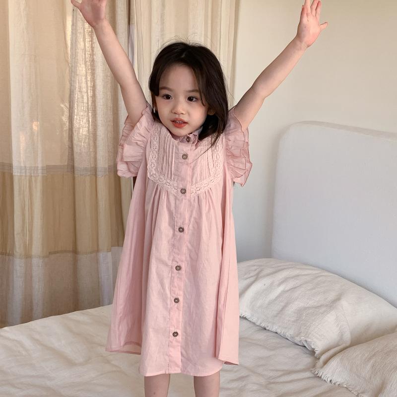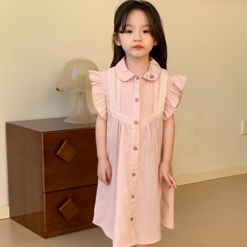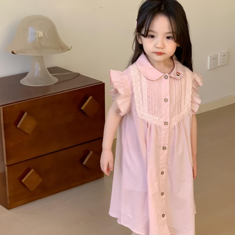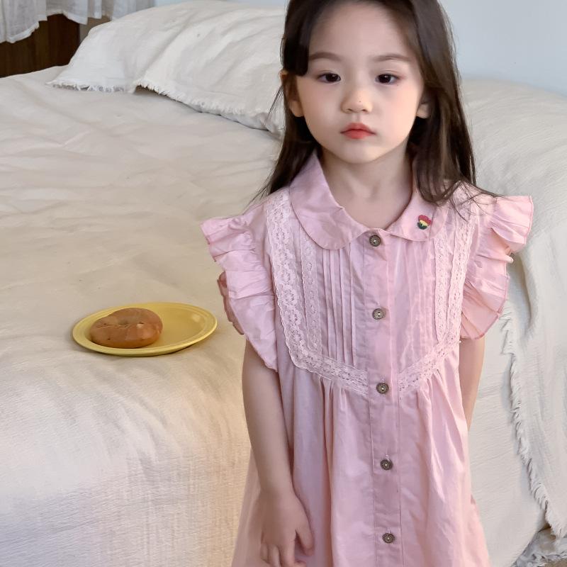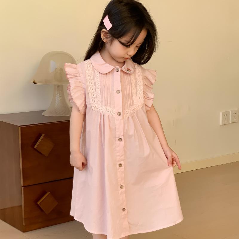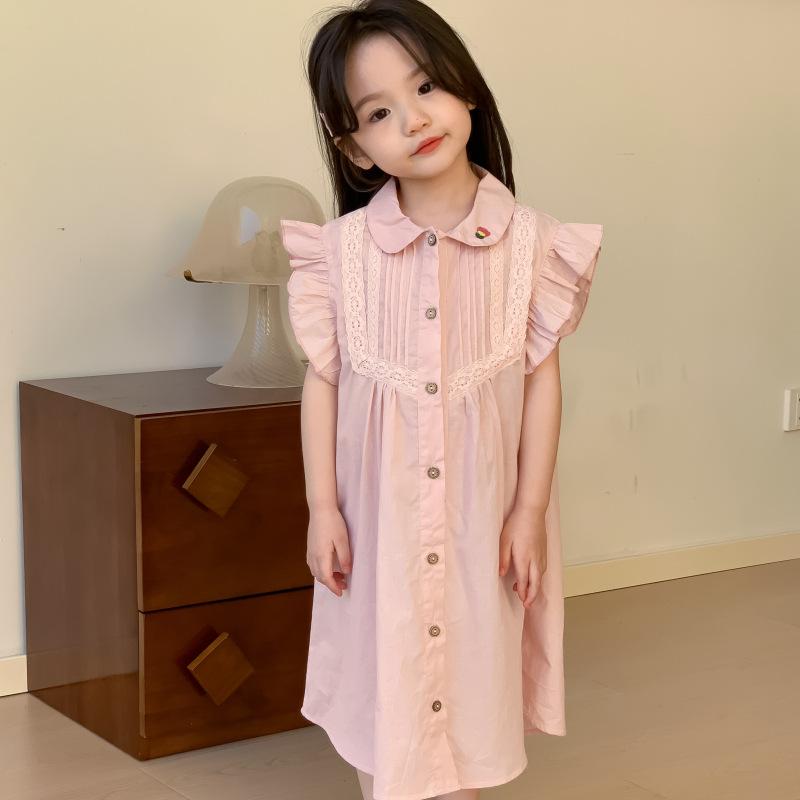Vestido de Solapa para Niñas 2025 Verano Nuevo Estilo Vestido de Princesa a la Moda para Niñitas Vestido Camisero de Encaje con Manga Volante para Niños