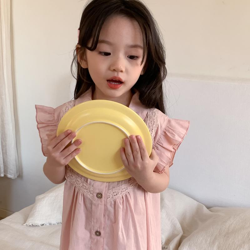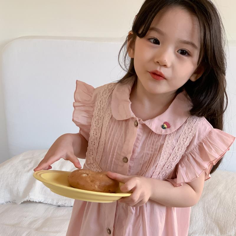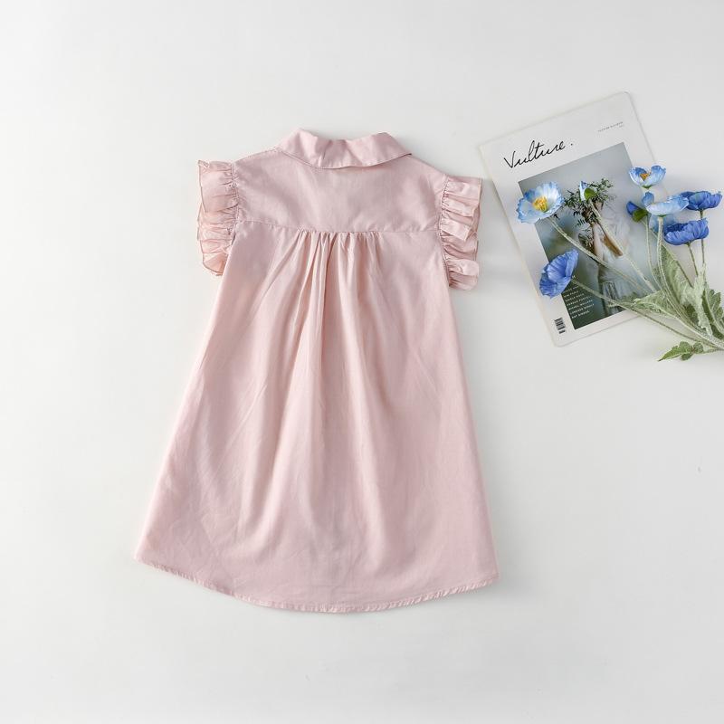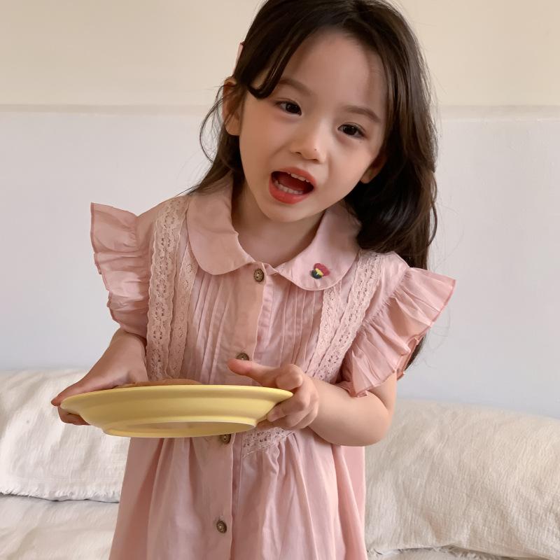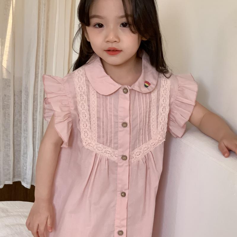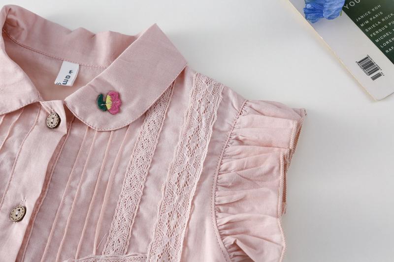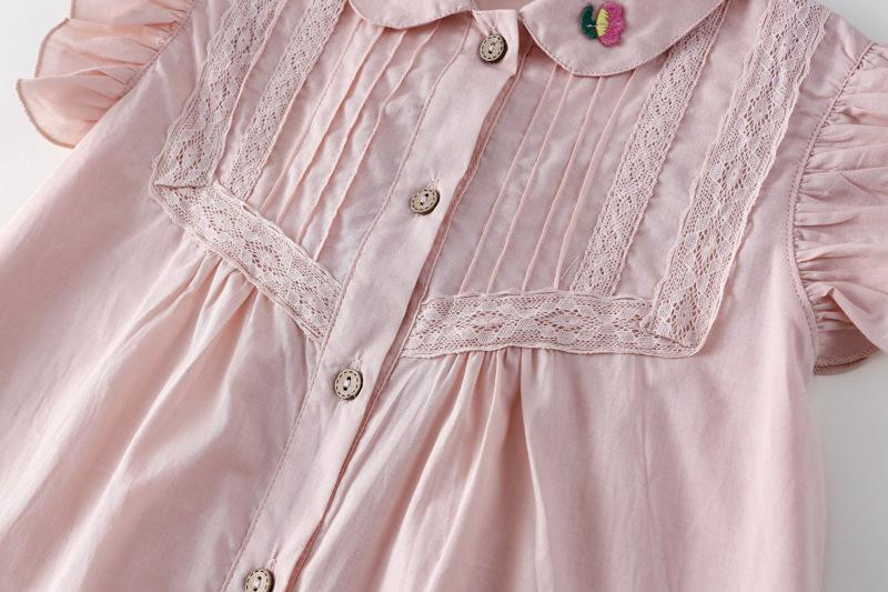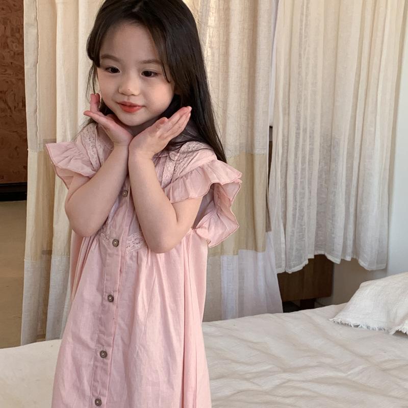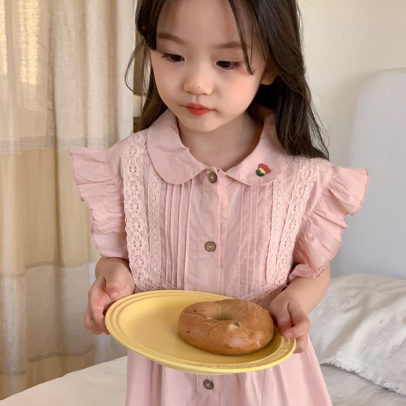 Vestido de Solapa para Niñas 2025 Verano Nuevo Estilo Vestido de Princesa a la Moda para Niñitas Vestido Camisero de Encaje con Manga Volante para Niños