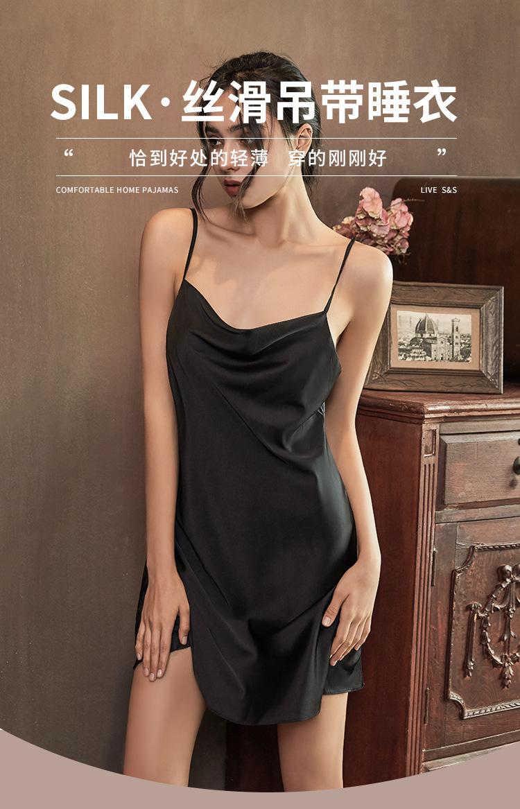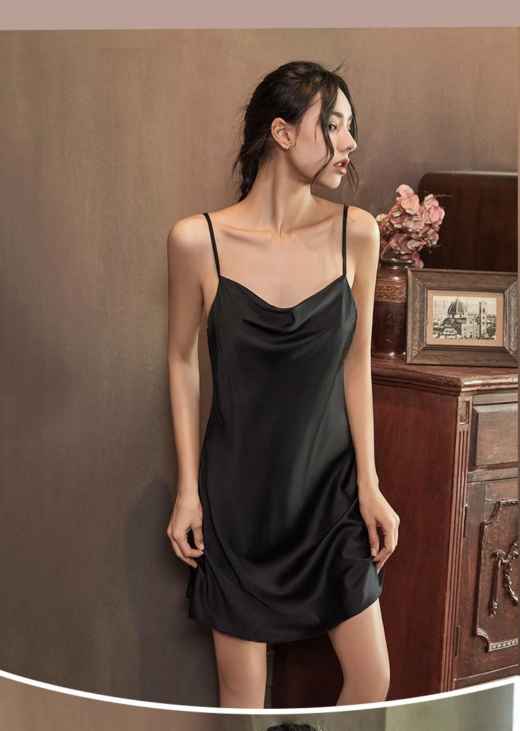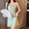 Pijama de verano para mujer Fino Seda de Hielo color sólido sexy camisón de tirantes falda corta viento de deseo puro lujo ligero Seda de Hielo ropa para el hogar