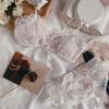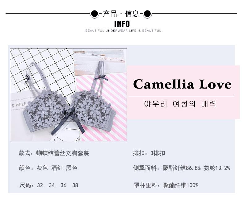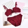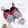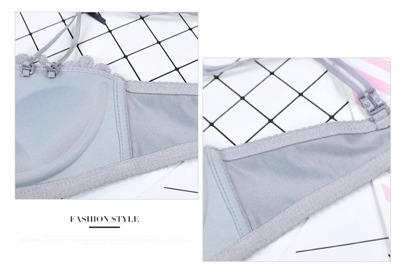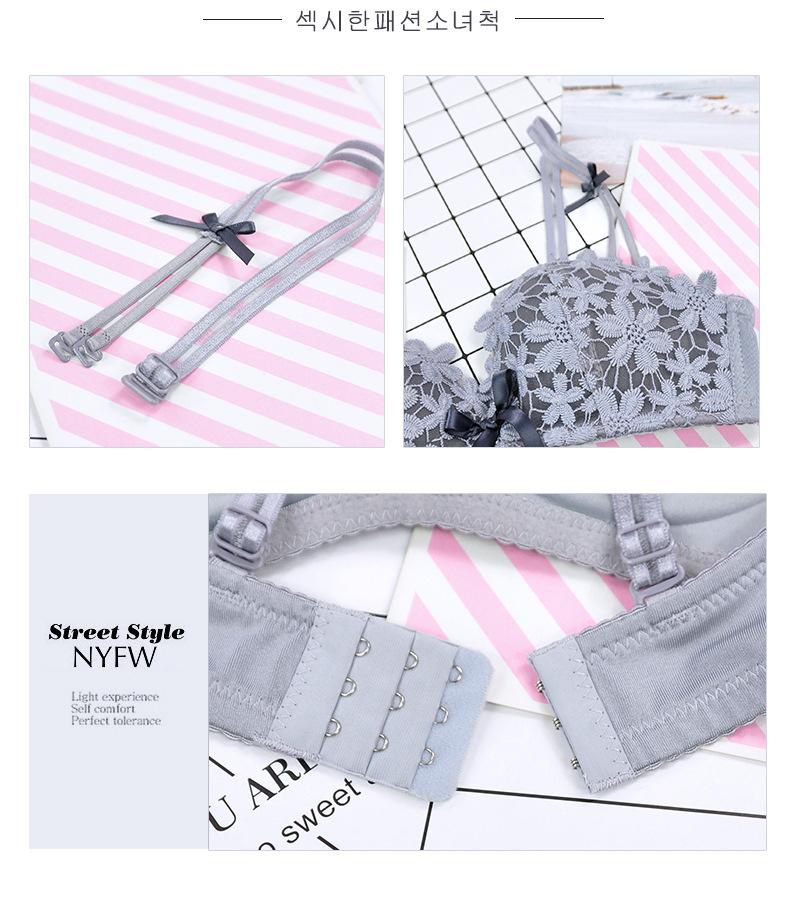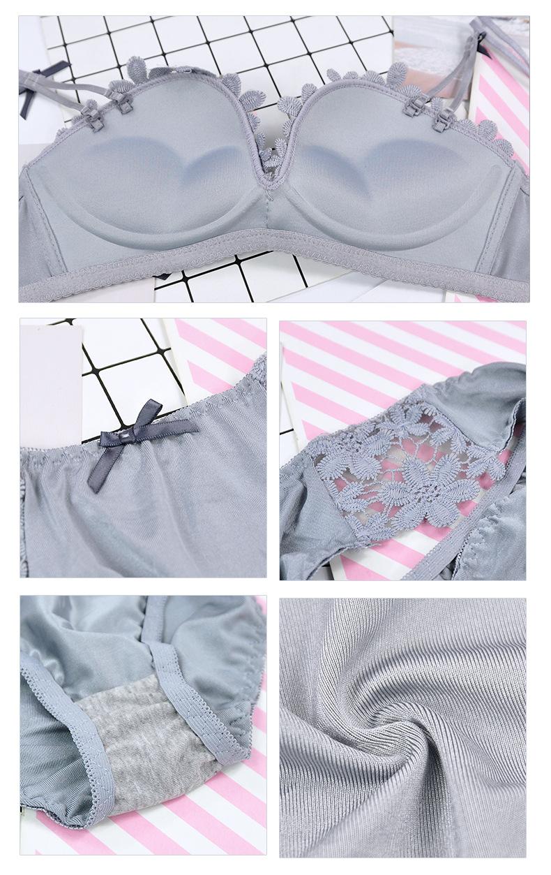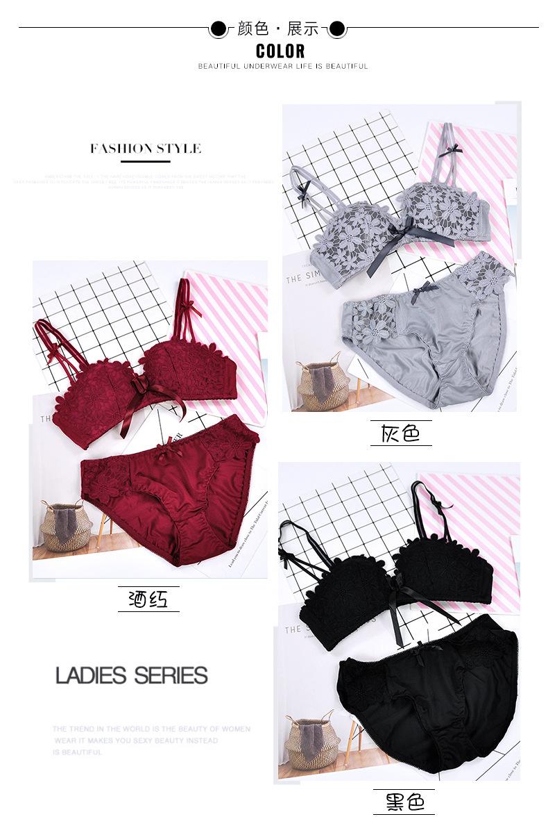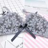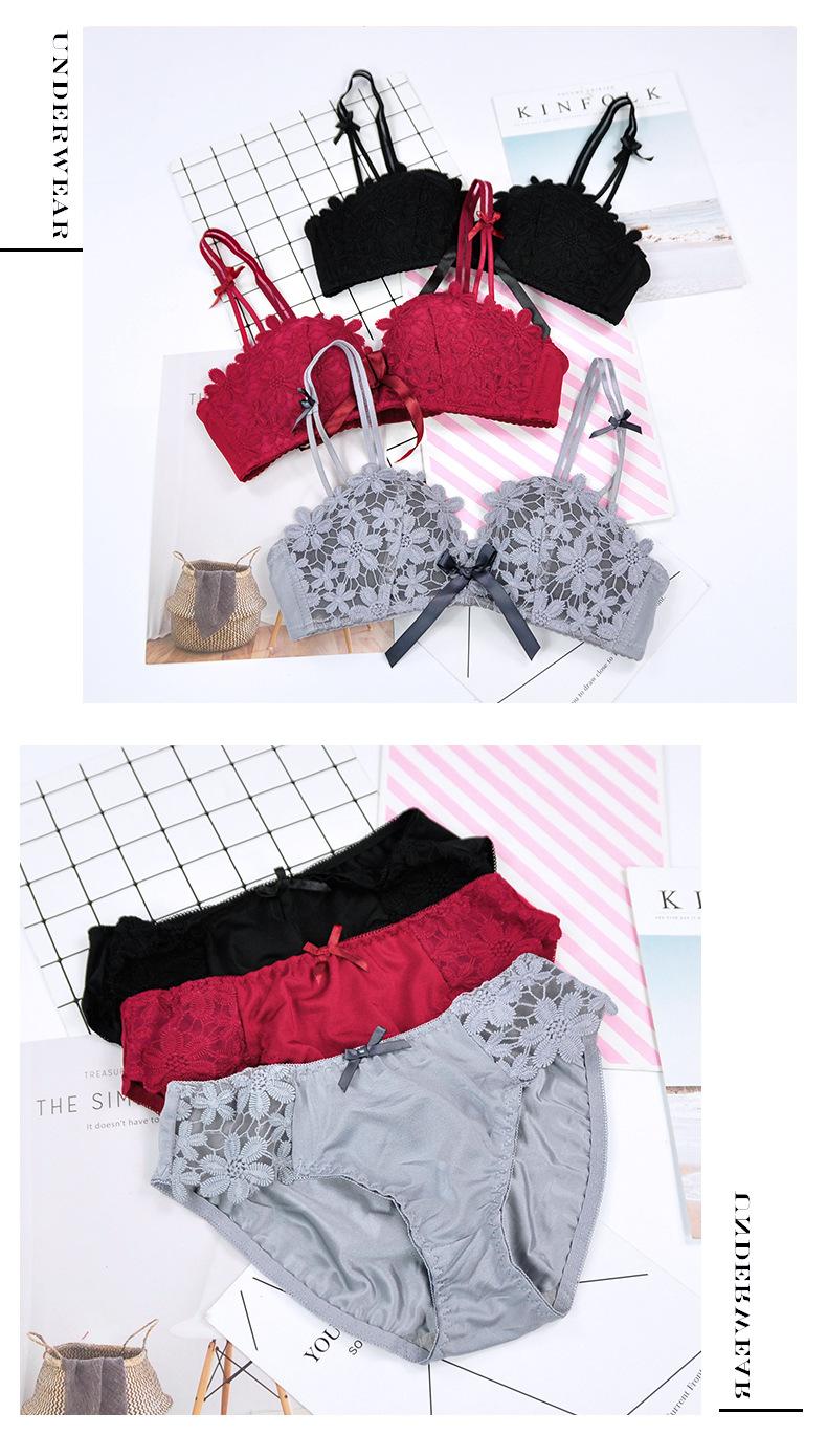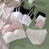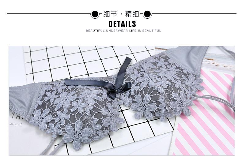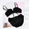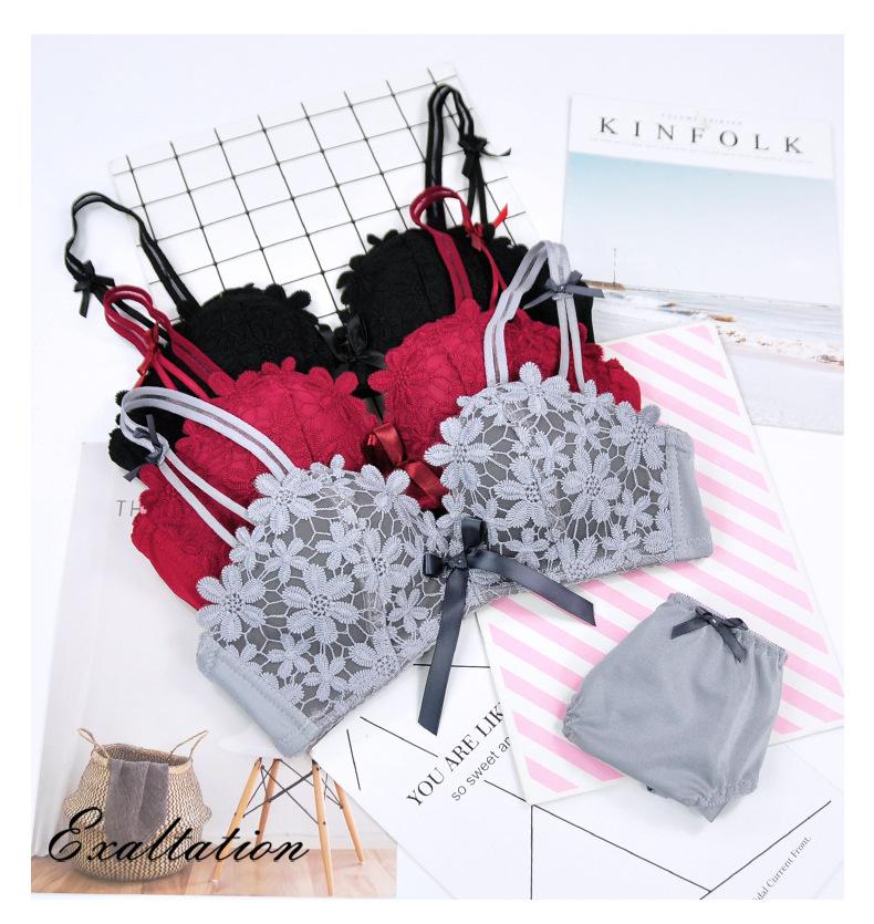 Conjunto de sujetador sexy sin aros de acero con lazo para niña, ropa interior dulce con flores solubles en agua y pecho pequeño fruncido, venta al por mayor