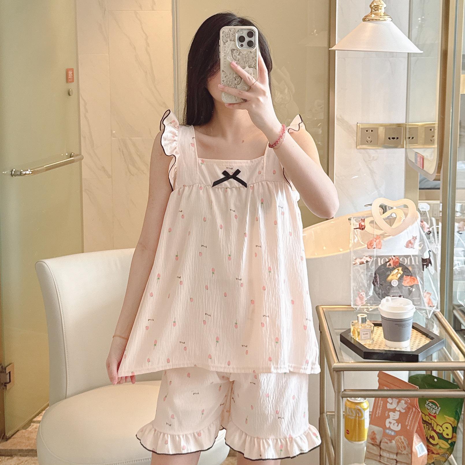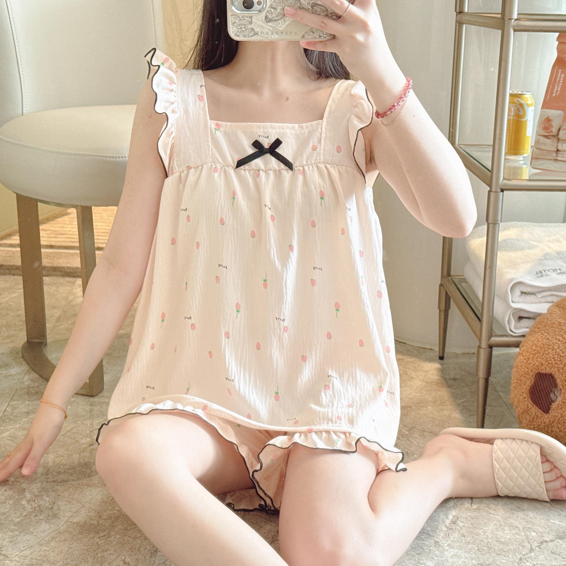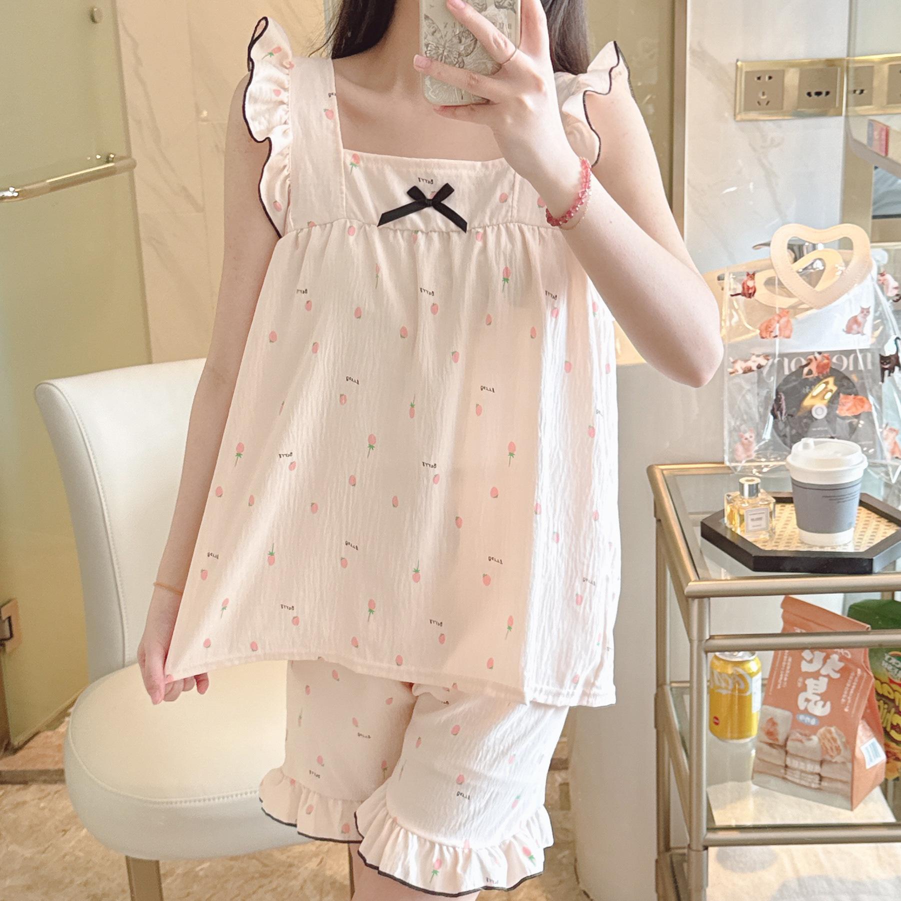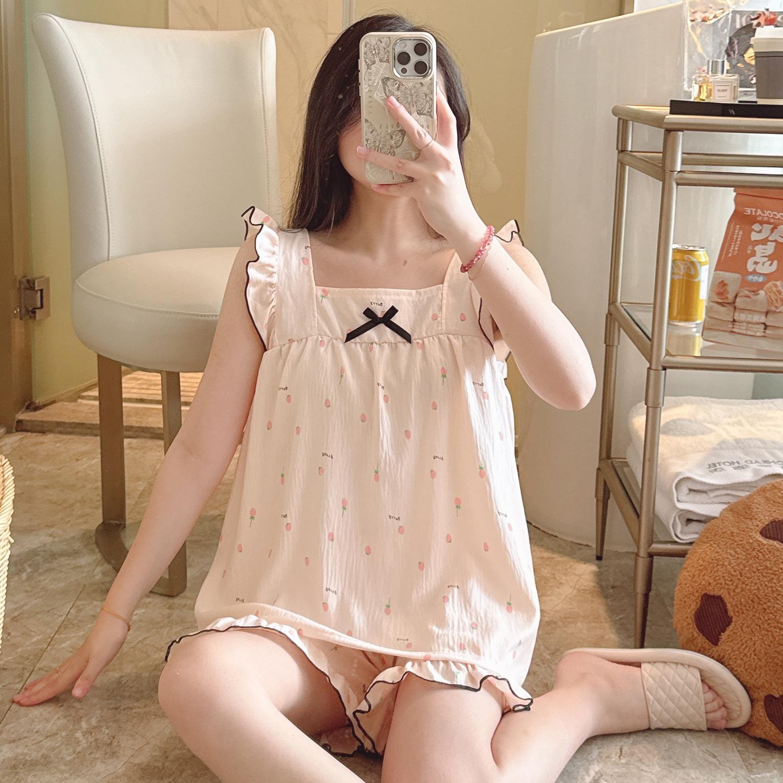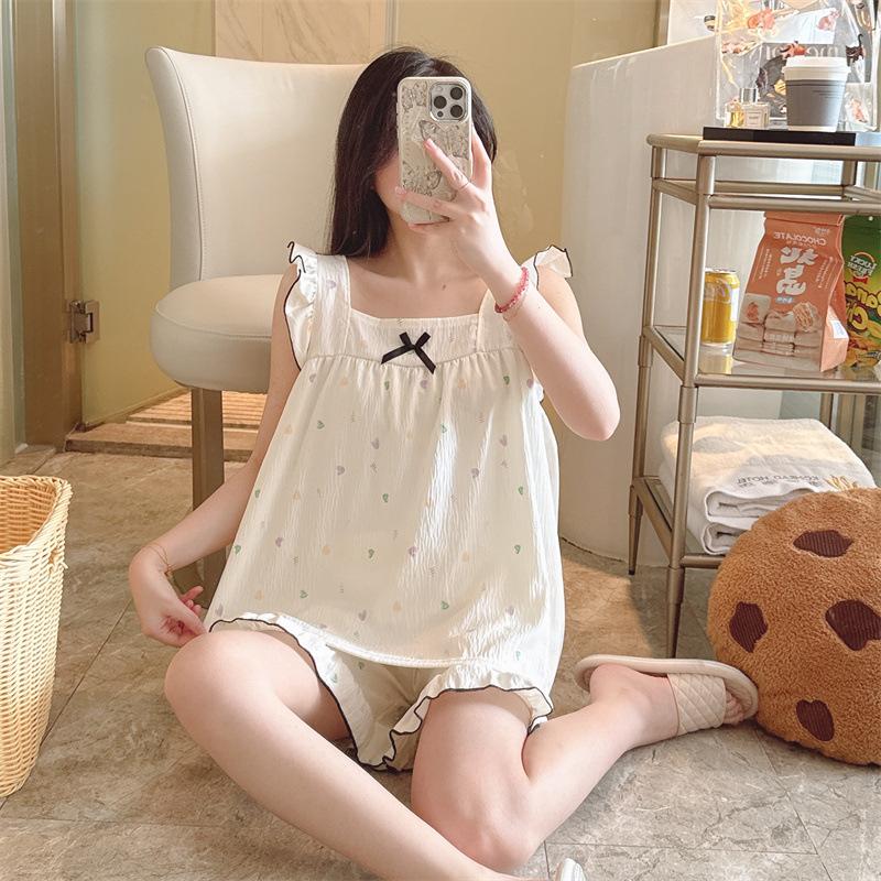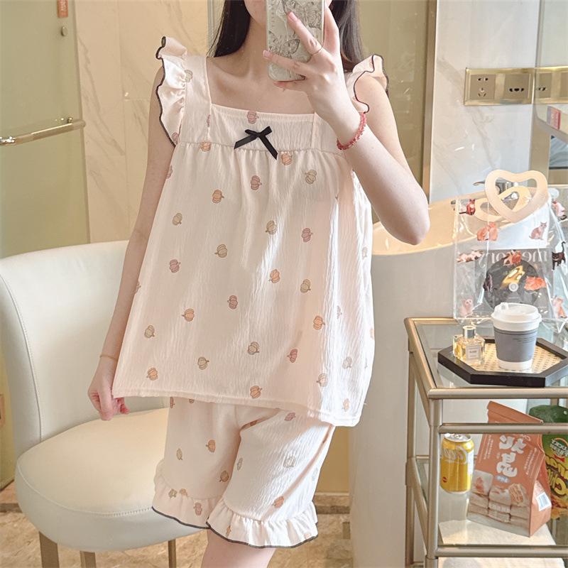 Pijama de tirantes para mujer, de verano, nuevo, de algodón suave con nubes, pantalones cortos con mangas voladoras, bonito y dulce conjunto de ropa para el hogar
