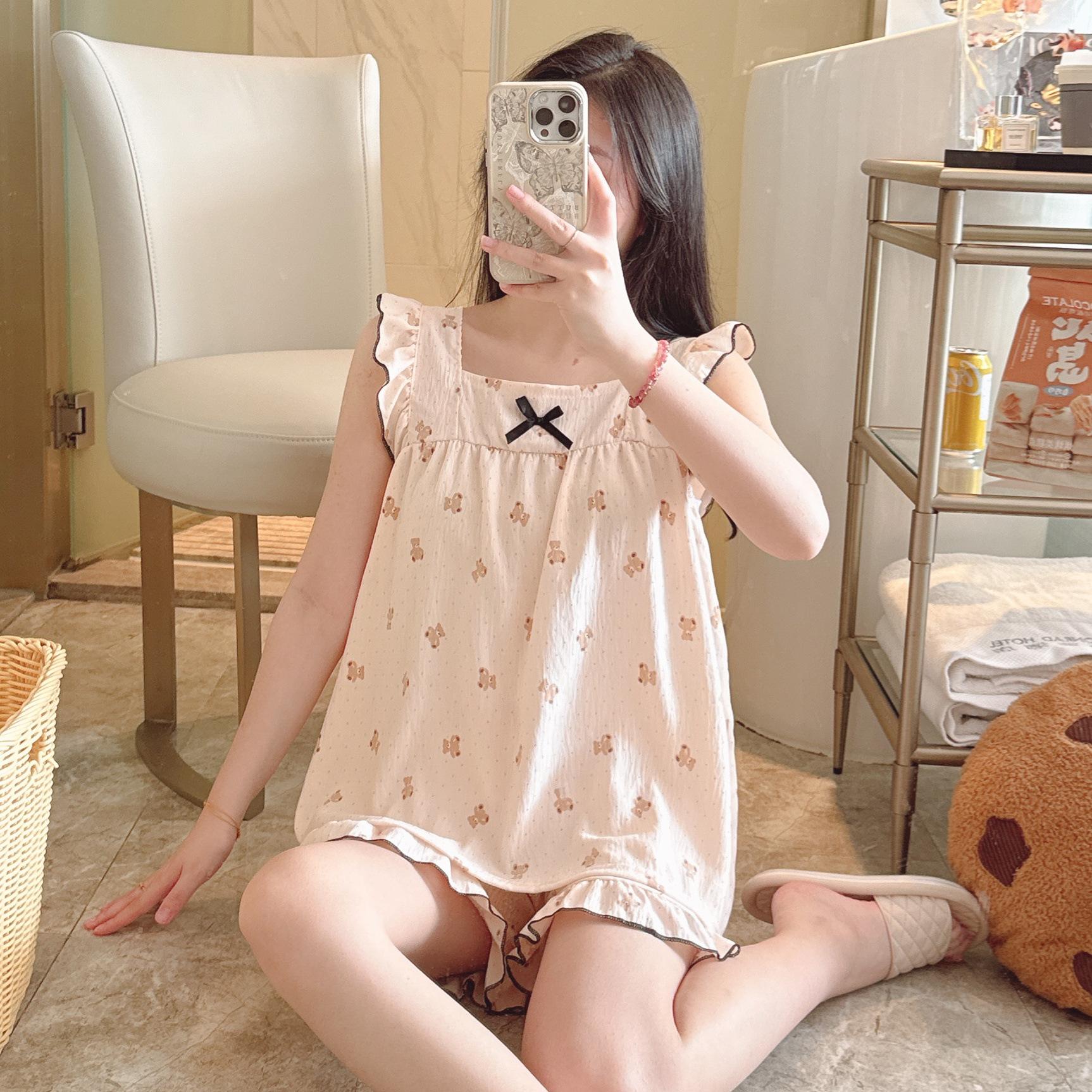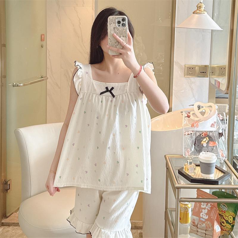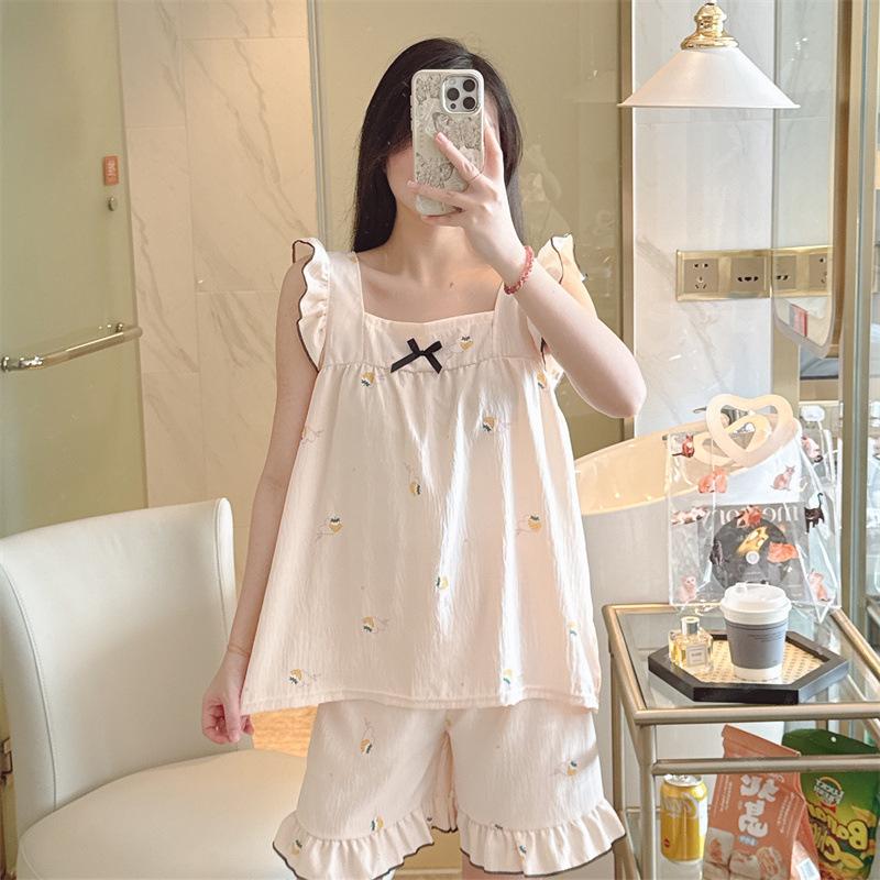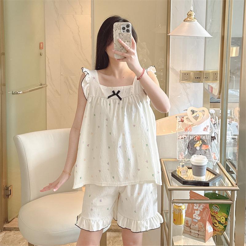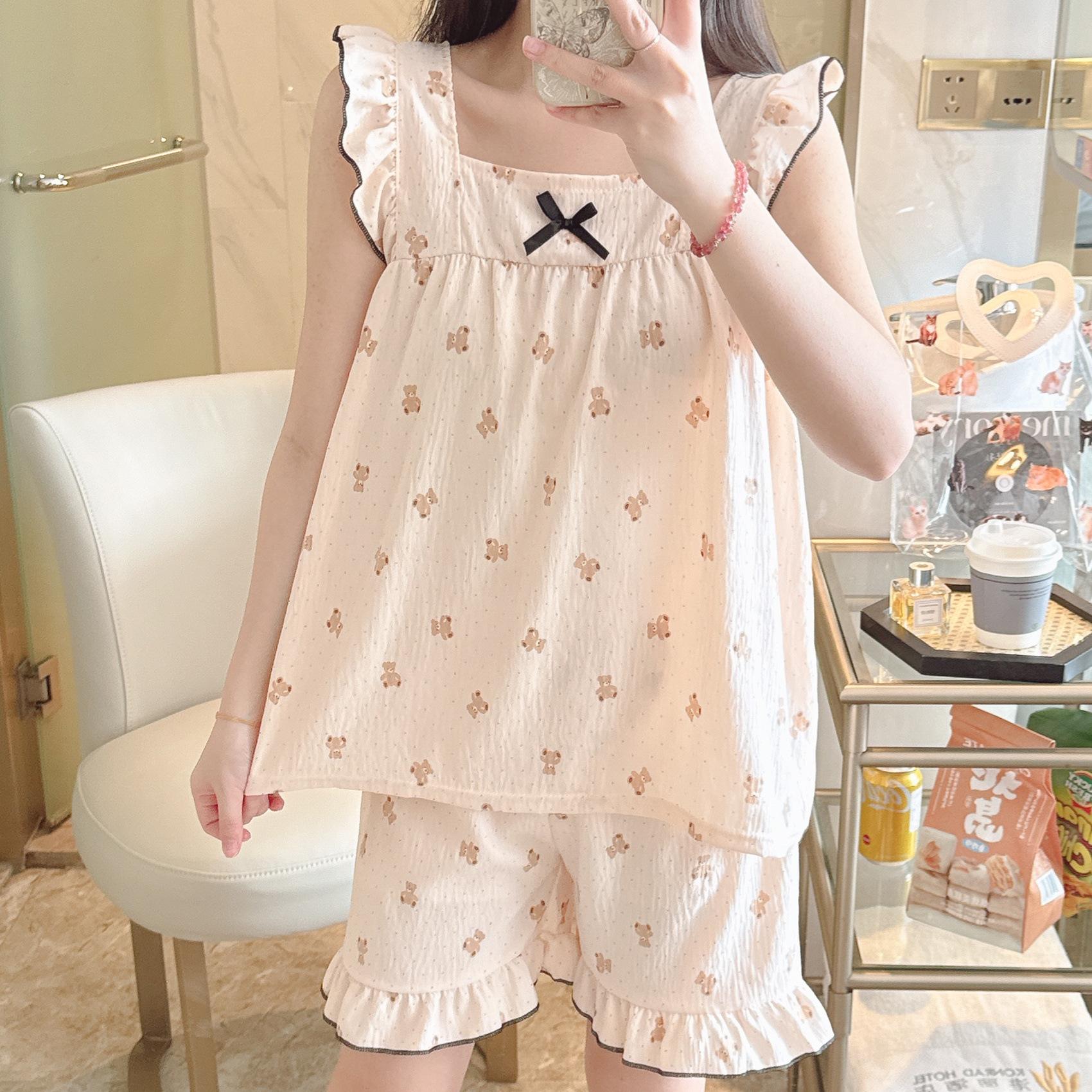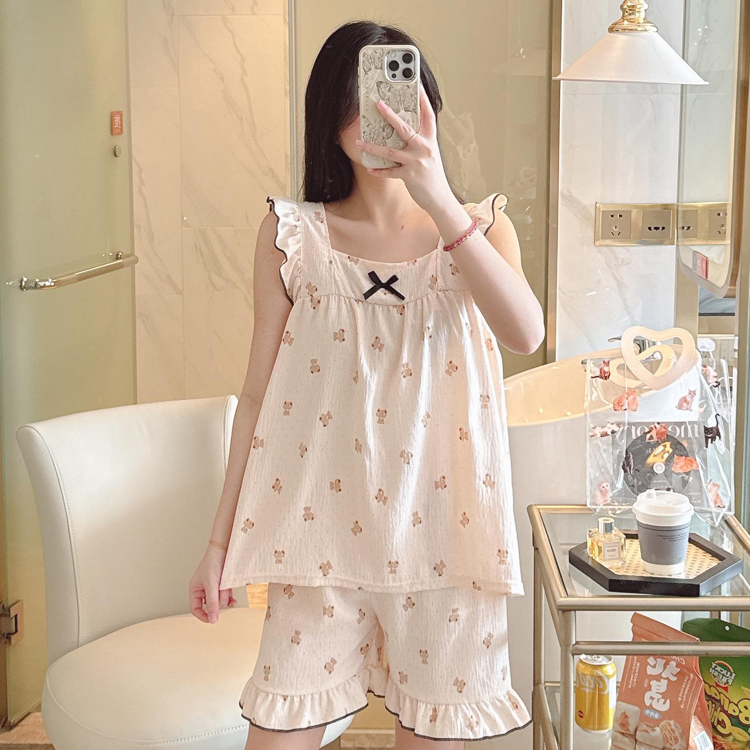 Pijama de tirantes para mujer, de verano, nuevo, de algodón suave con nubes, pantalones cortos con mangas voladoras, bonito y dulce conjunto de ropa para el hogar