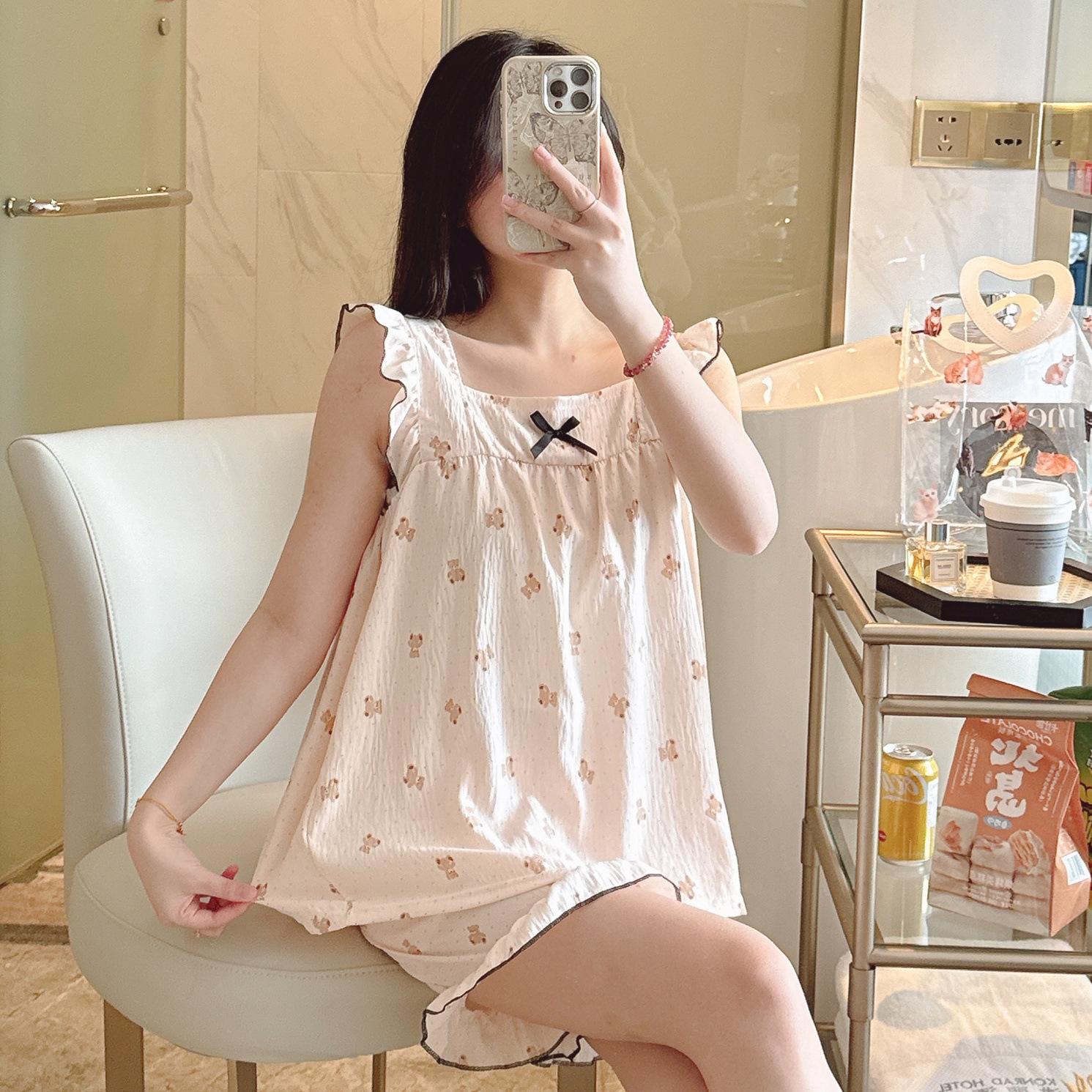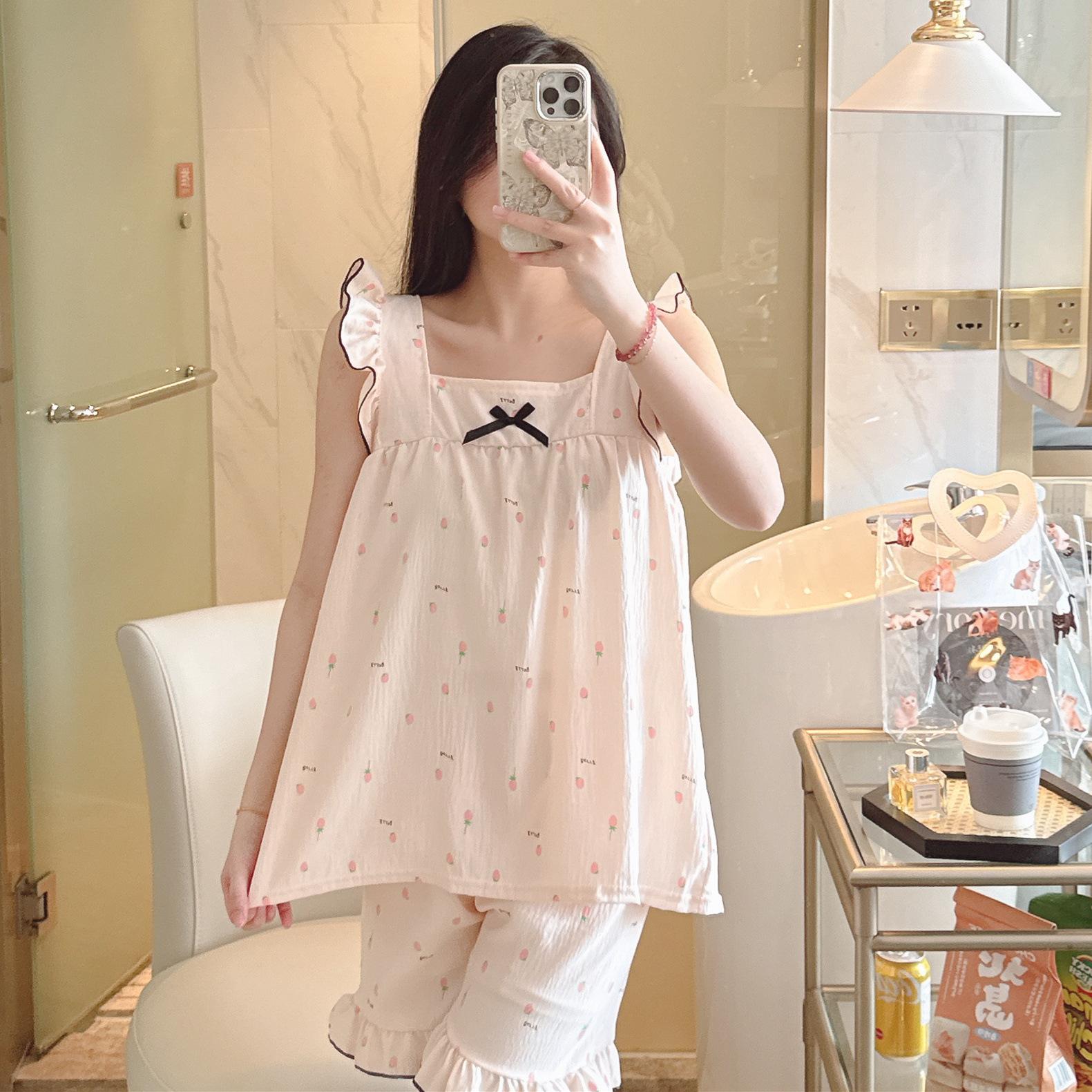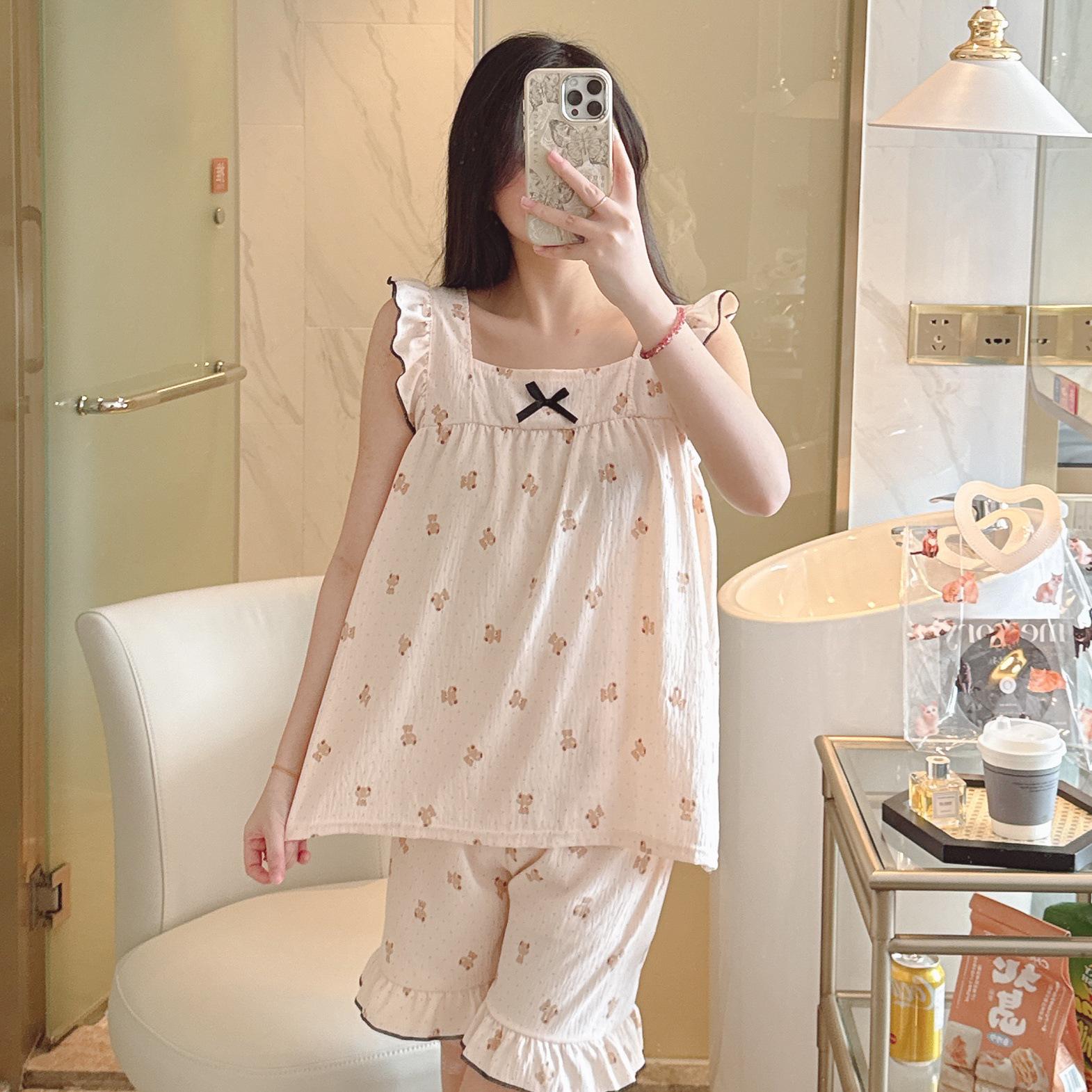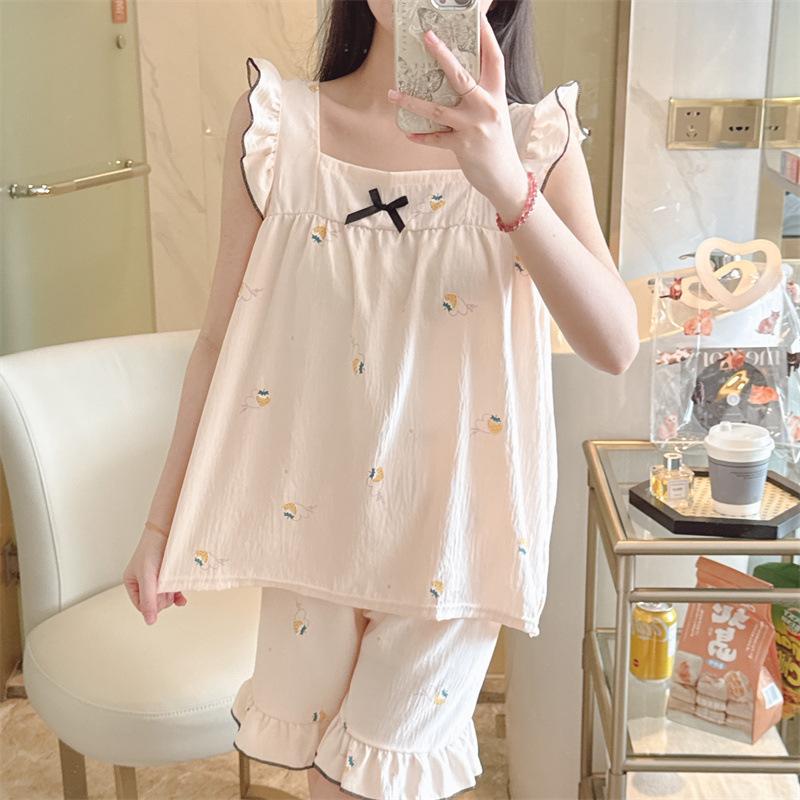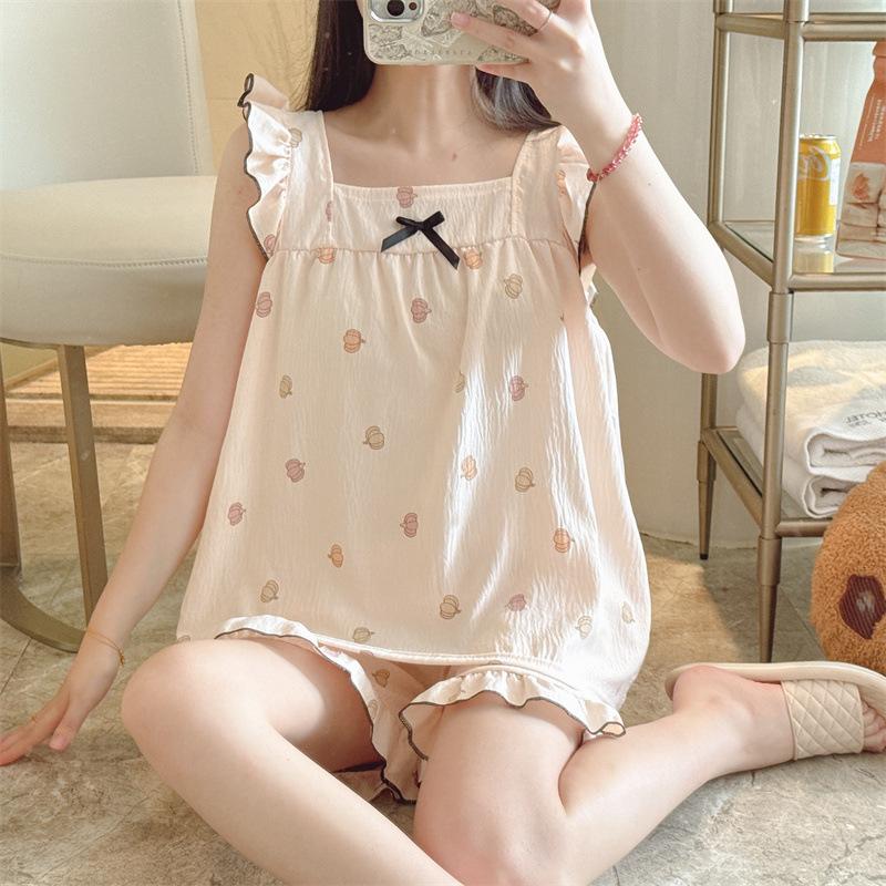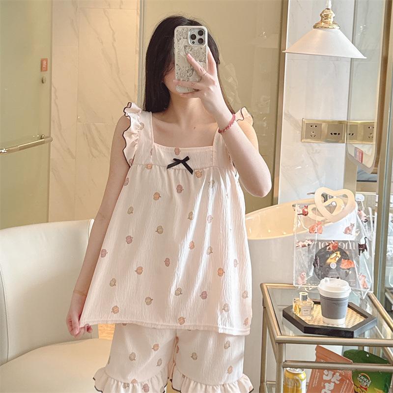 Pijama de tirantes para mujer, de verano, nuevo, de algodón suave con nubes, pantalones cortos con mangas voladoras, bonito y dulce conjunto de ropa para el hogar