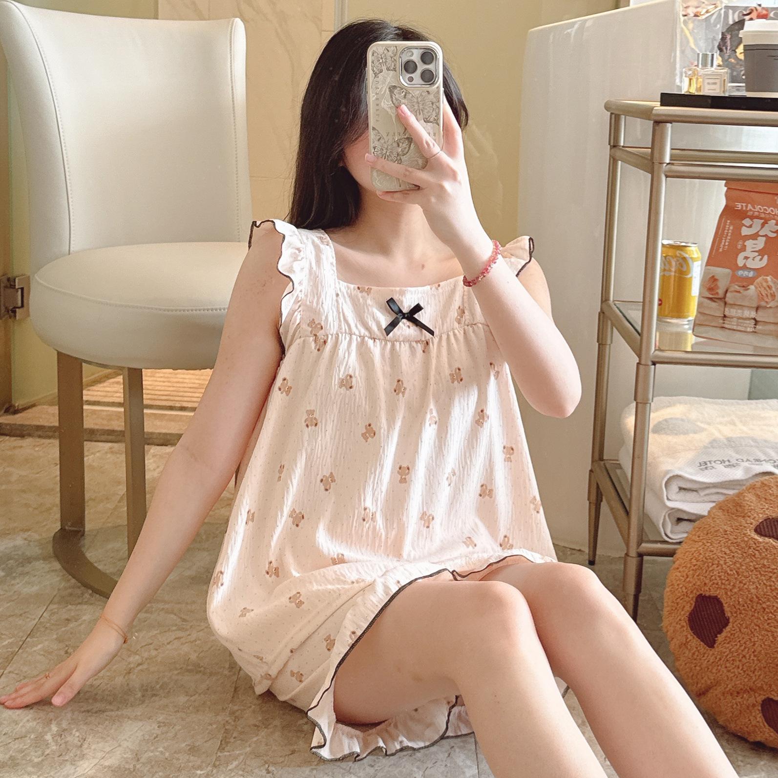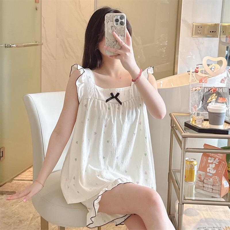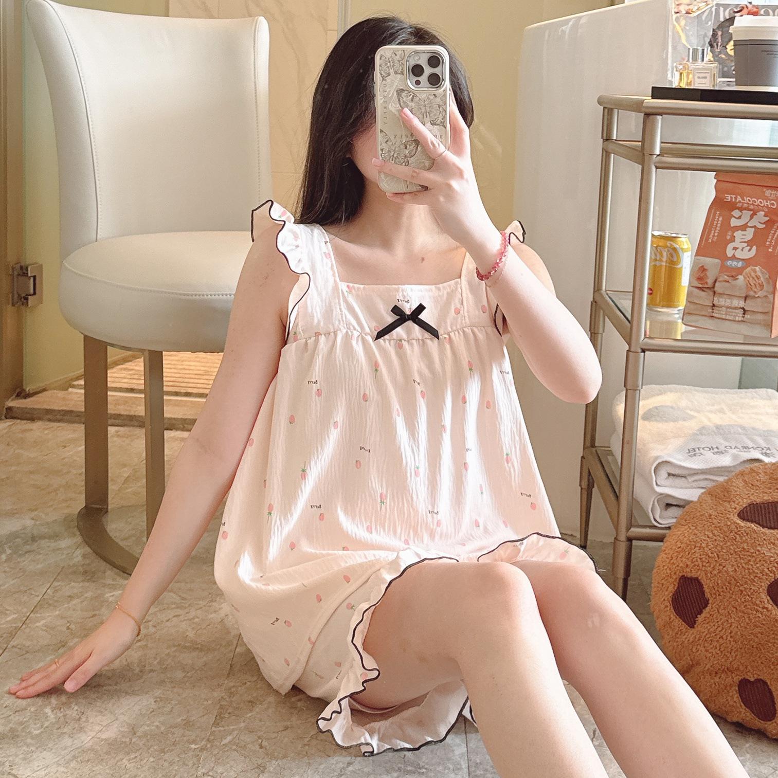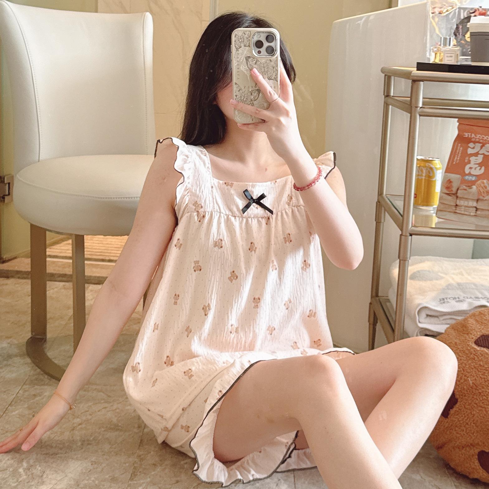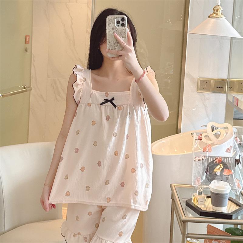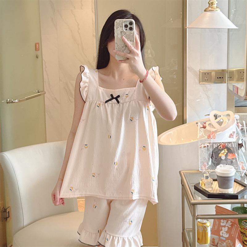 Pijama de tirantes para mujer, de verano, nuevo, de algodón suave con nubes, pantalones cortos con mangas voladoras, bonito y dulce conjunto de ropa para el hogar