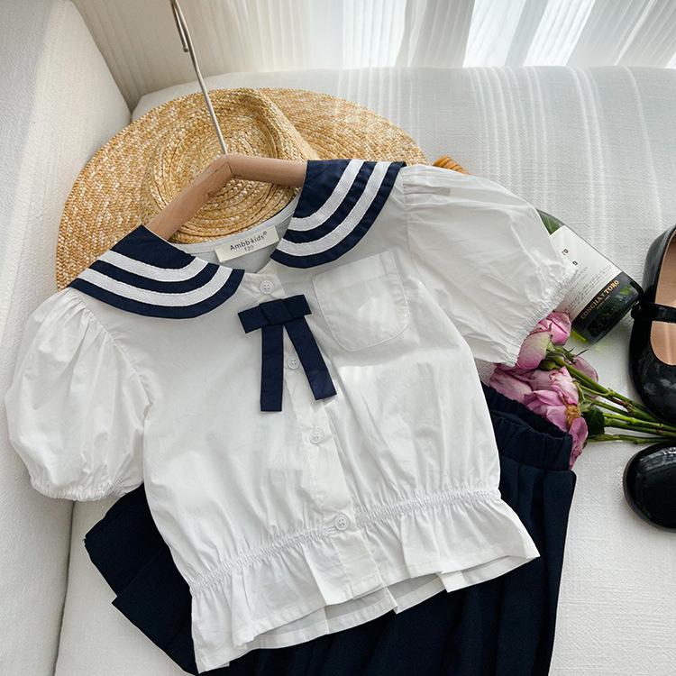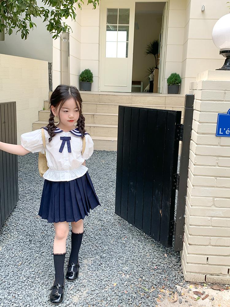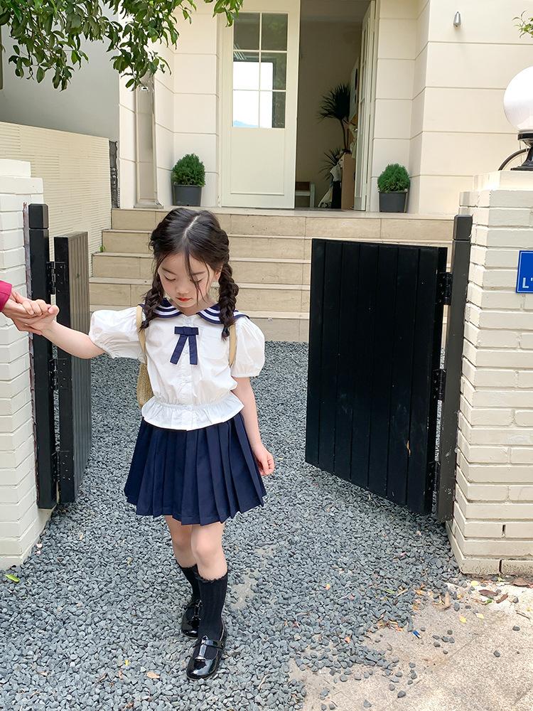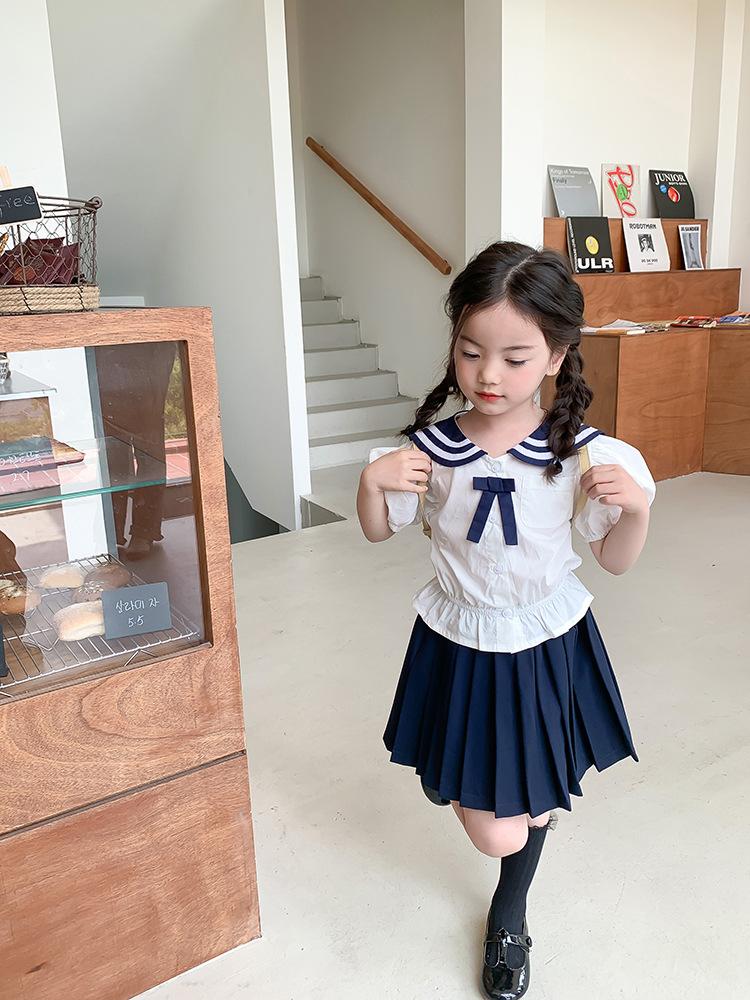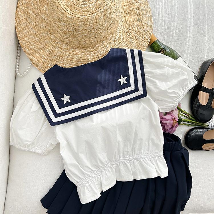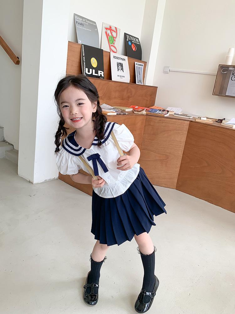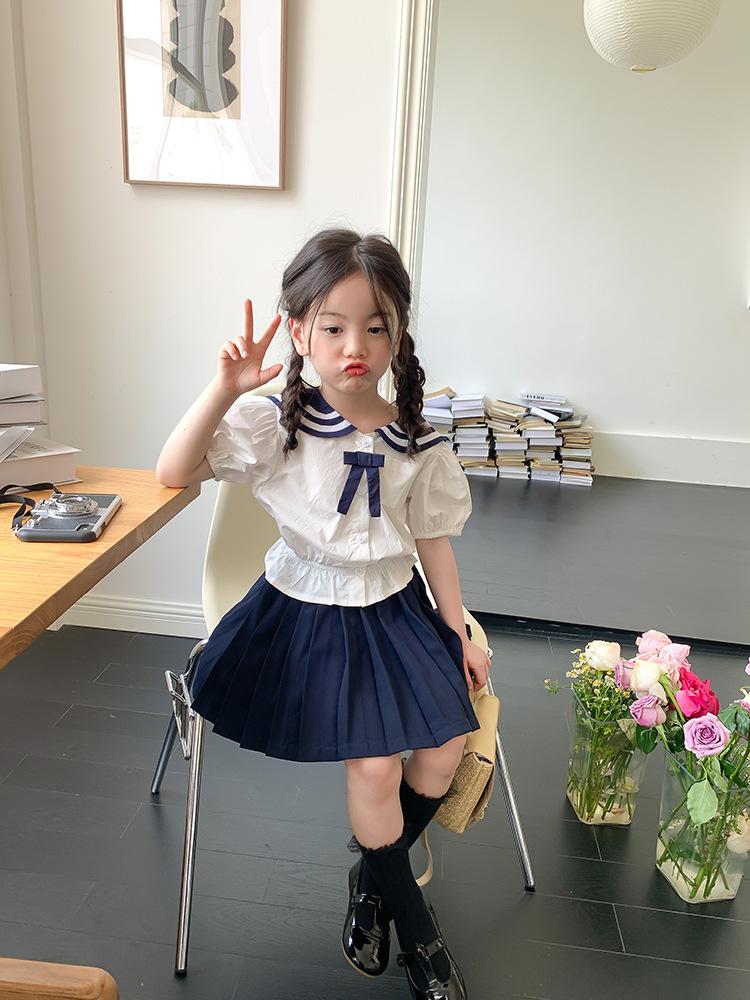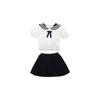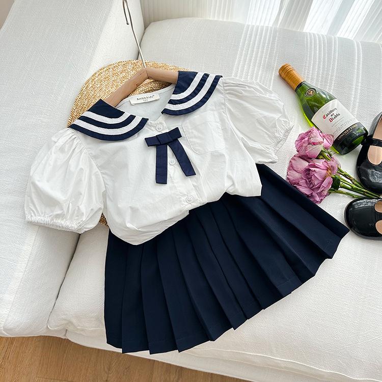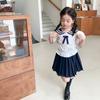 2024 Nuevo Traje Jk para Niñas Verano Cuello Marino Lazo Estilo Universitario Top de Manga Corta Falda Plisada Conjunto de Dos Piezas
