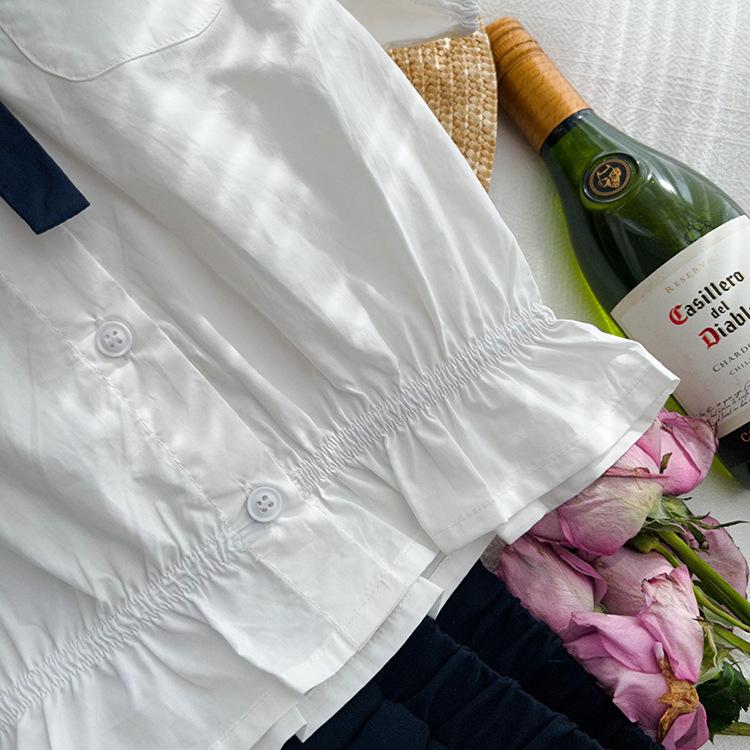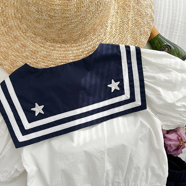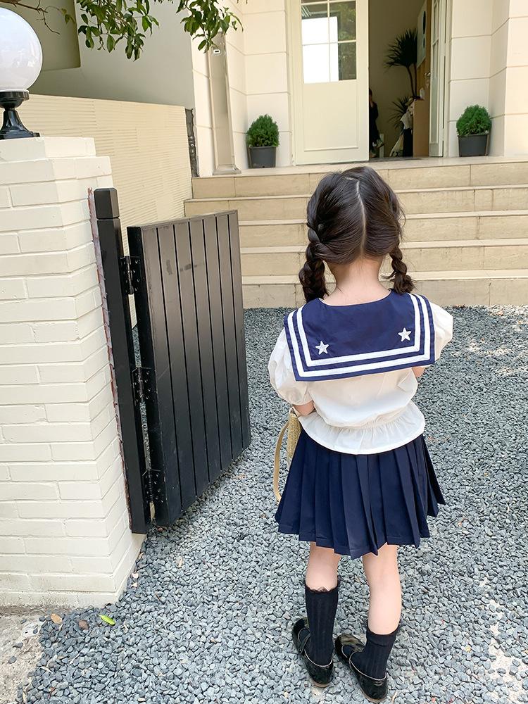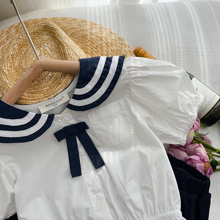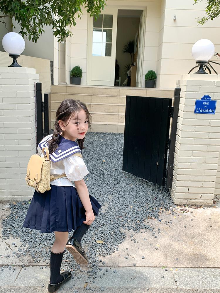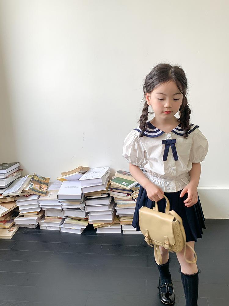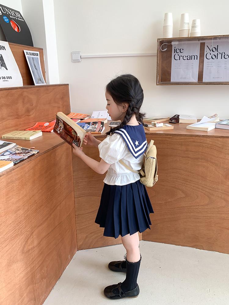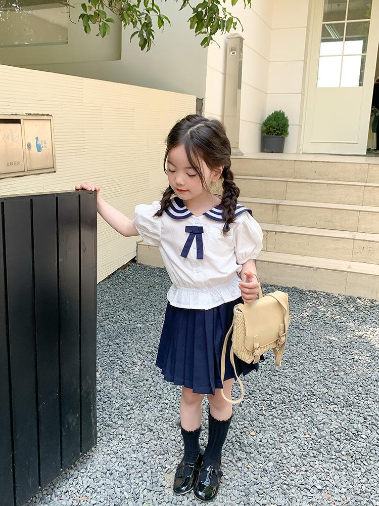 2024 Nuevo Traje Jk para Niñas Verano Cuello Marino Lazo Estilo Universitario Top de Manga Corta Falda Plisada Conjunto de Dos Piezas