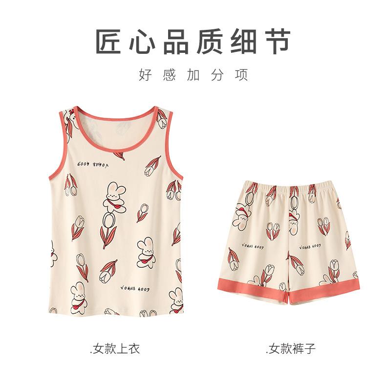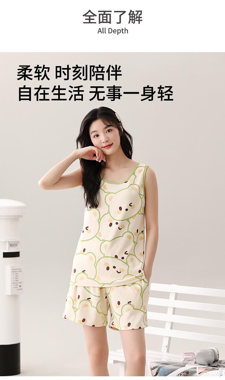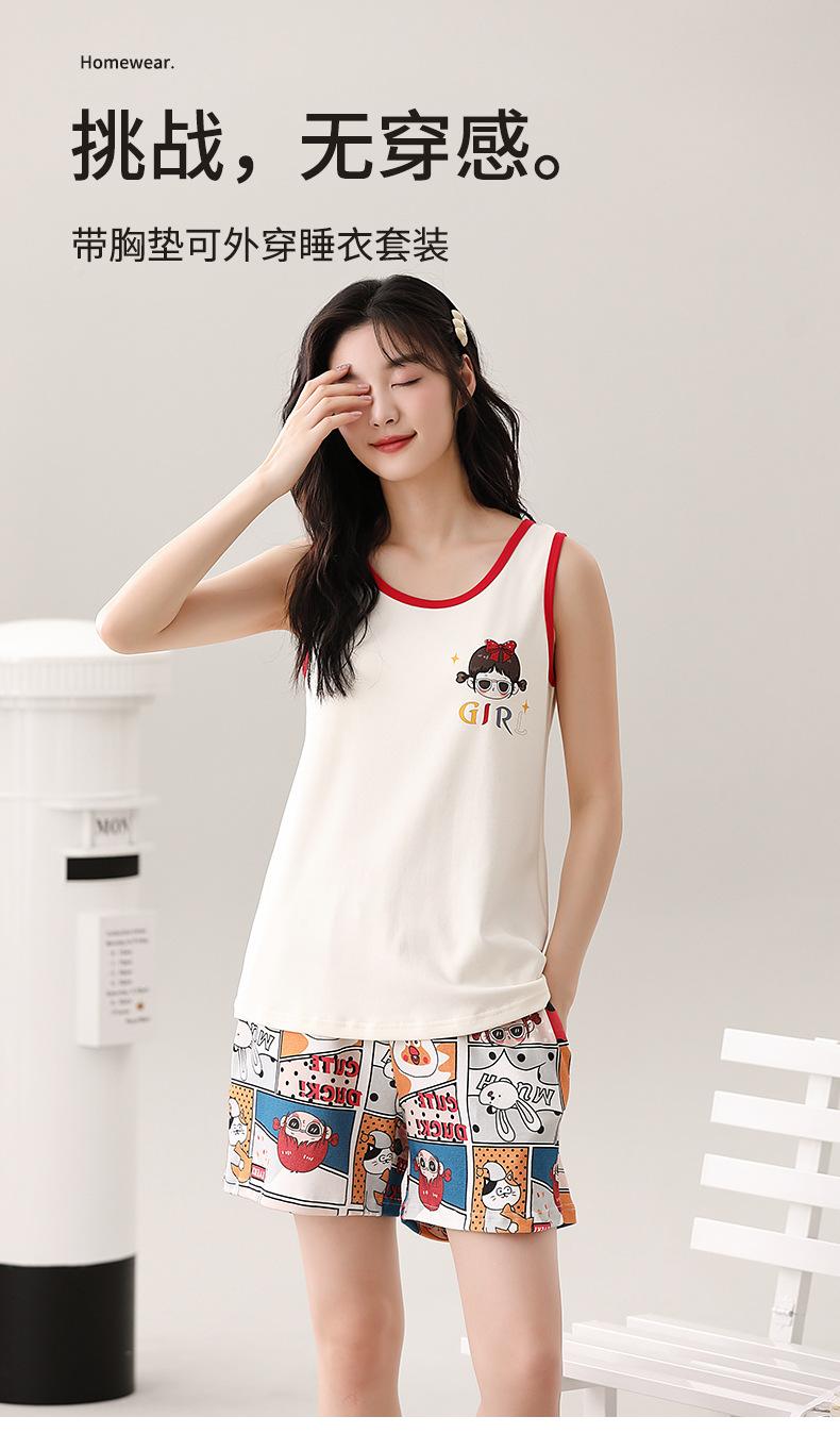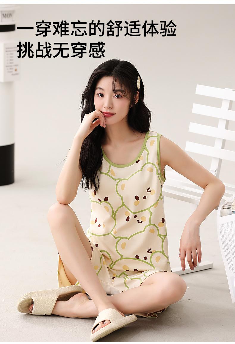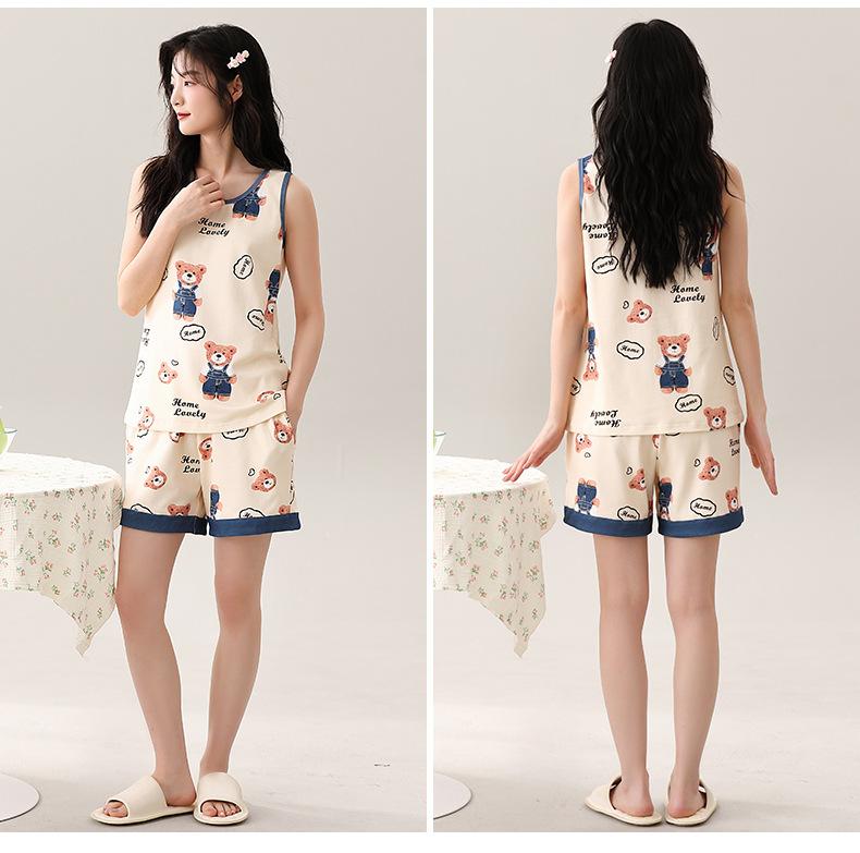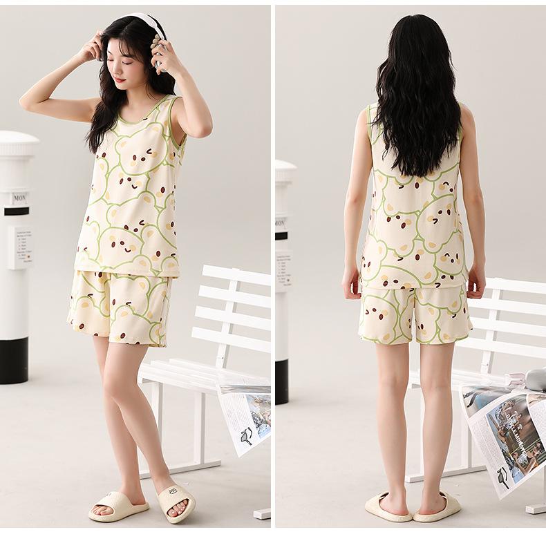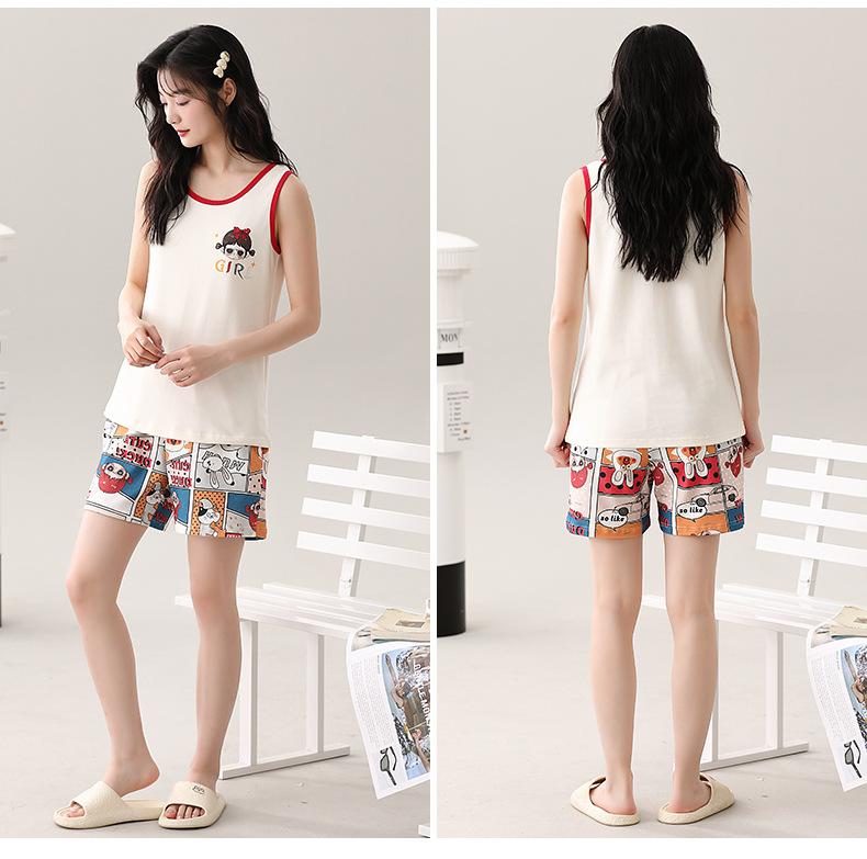 Pijamas Less de Mujer Verano Algodón Imitación Chaleco Acolchado Shorts Estilo Coreano Ropa para el Hogar Traje Dulce de Dibujos Animados Verano