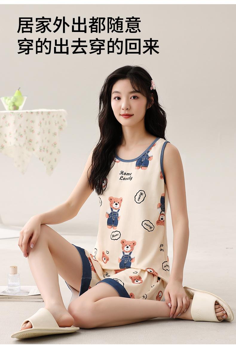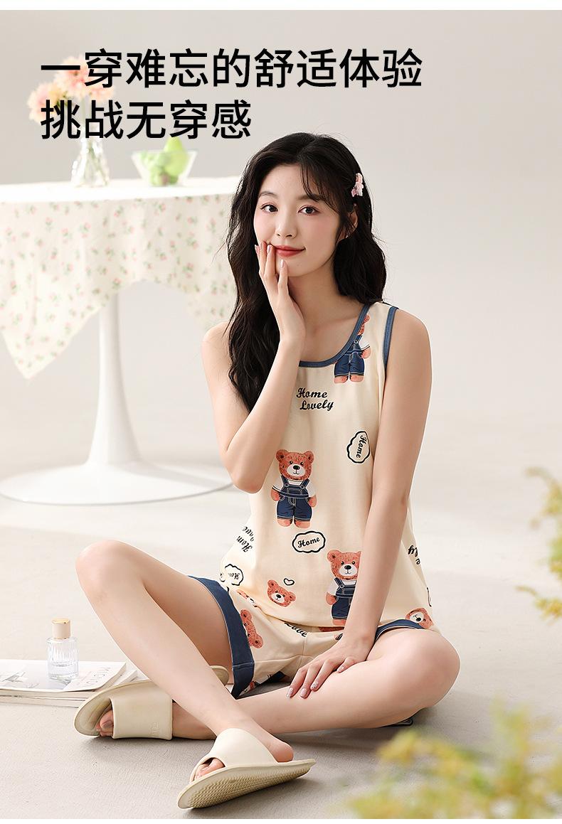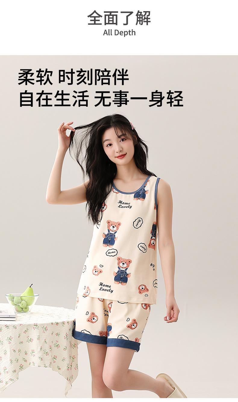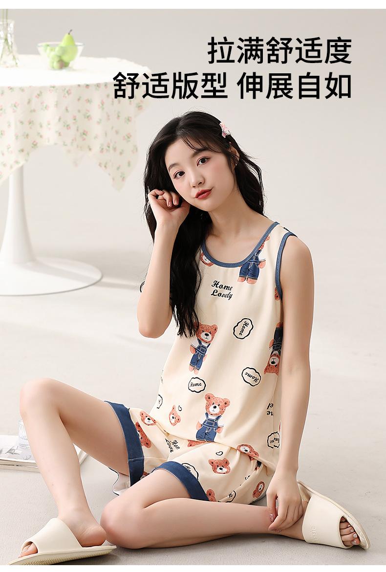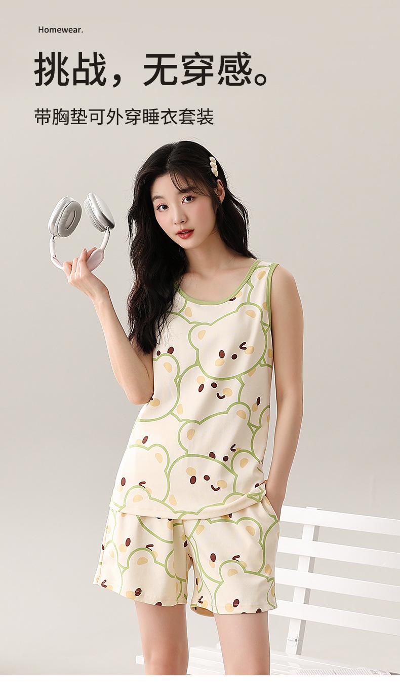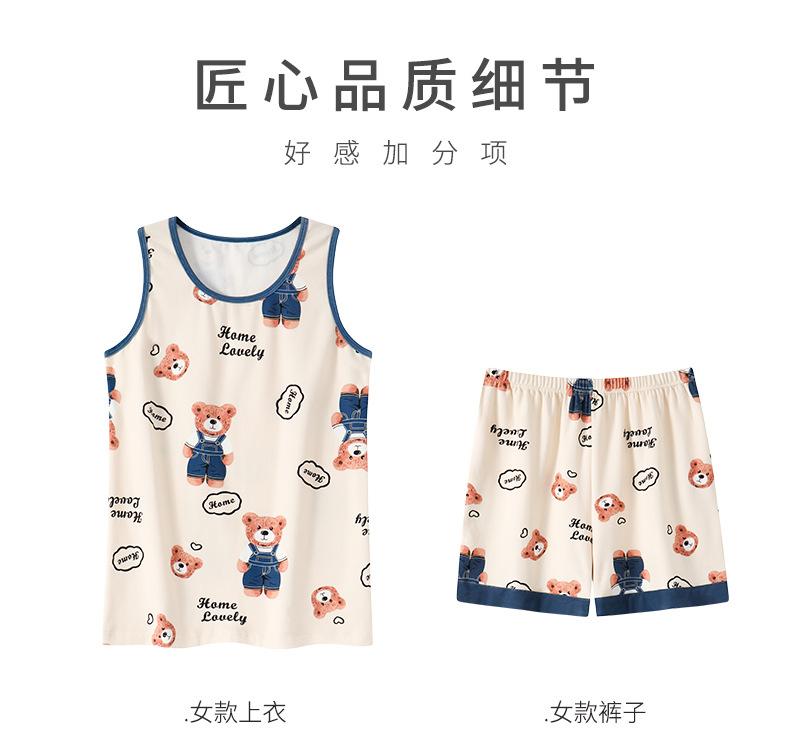 Pijamas Less de Mujer Verano Algodón Imitación Chaleco Acolchado Shorts Estilo Coreano Ropa para el Hogar Traje Dulce de Dibujos Animados Verano