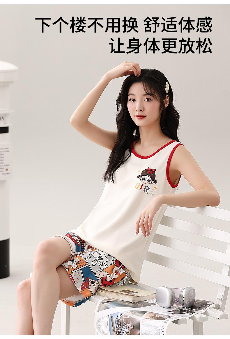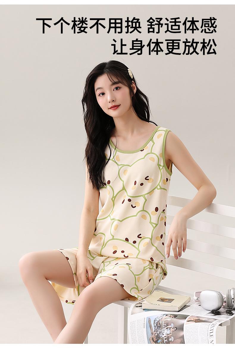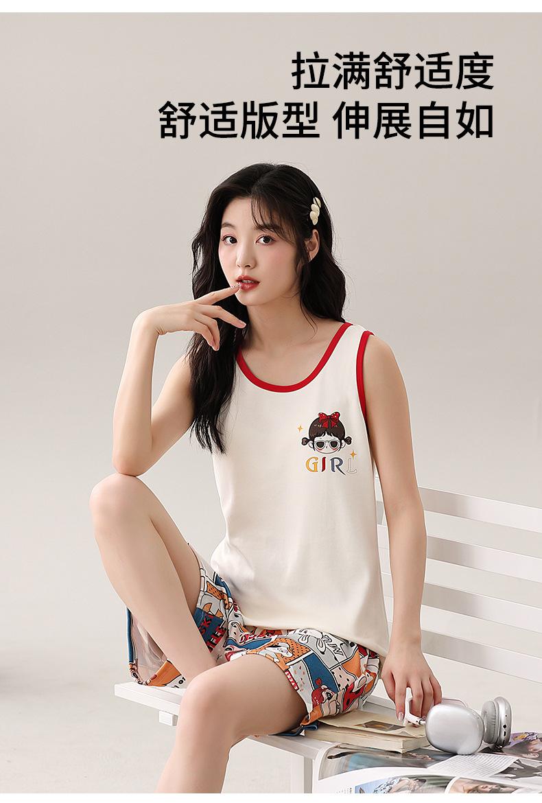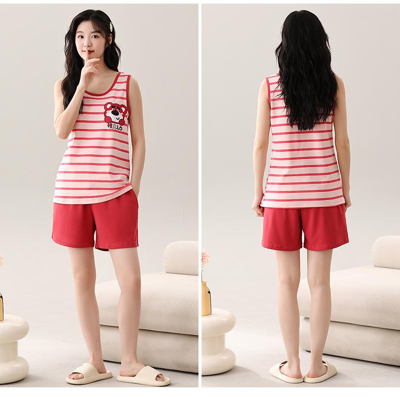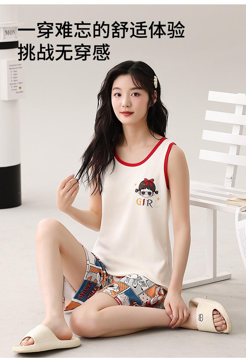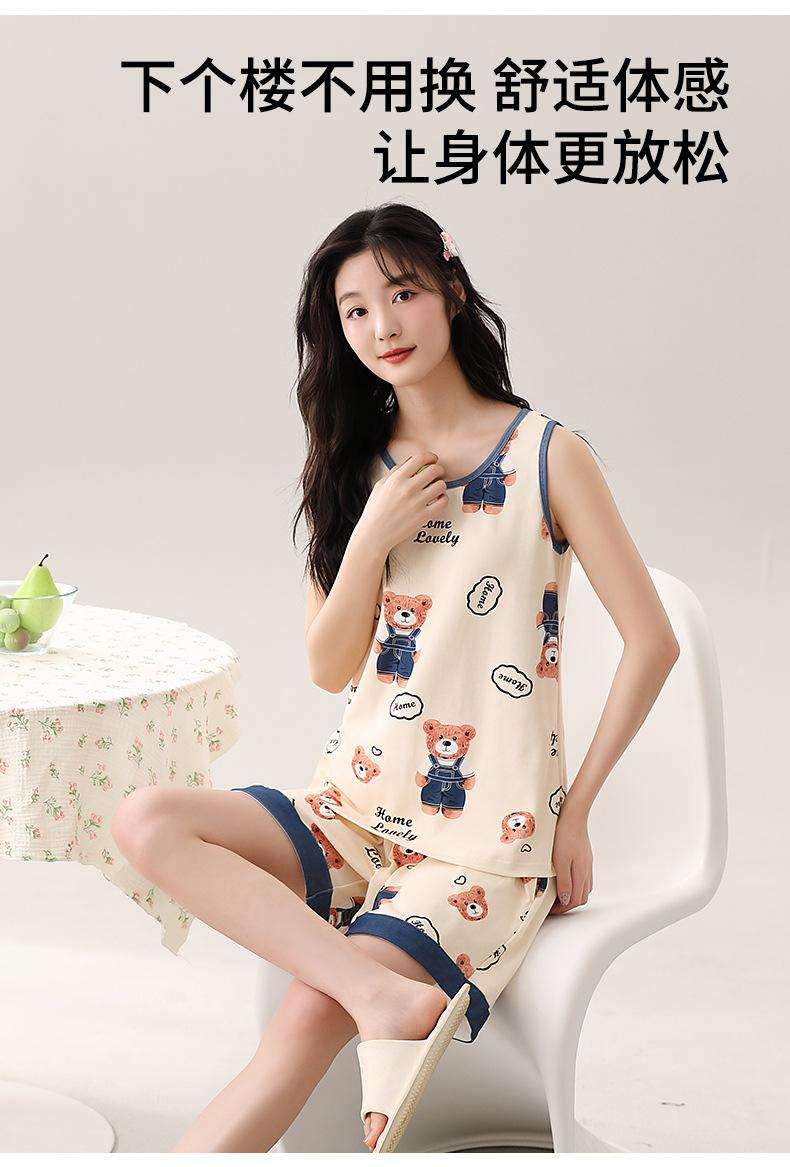 Pijamas Less de Mujer Verano Algodón Imitación Chaleco Acolchado Shorts Estilo Coreano Ropa para el Hogar Traje Dulce de Dibujos Animados Verano