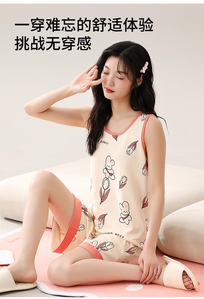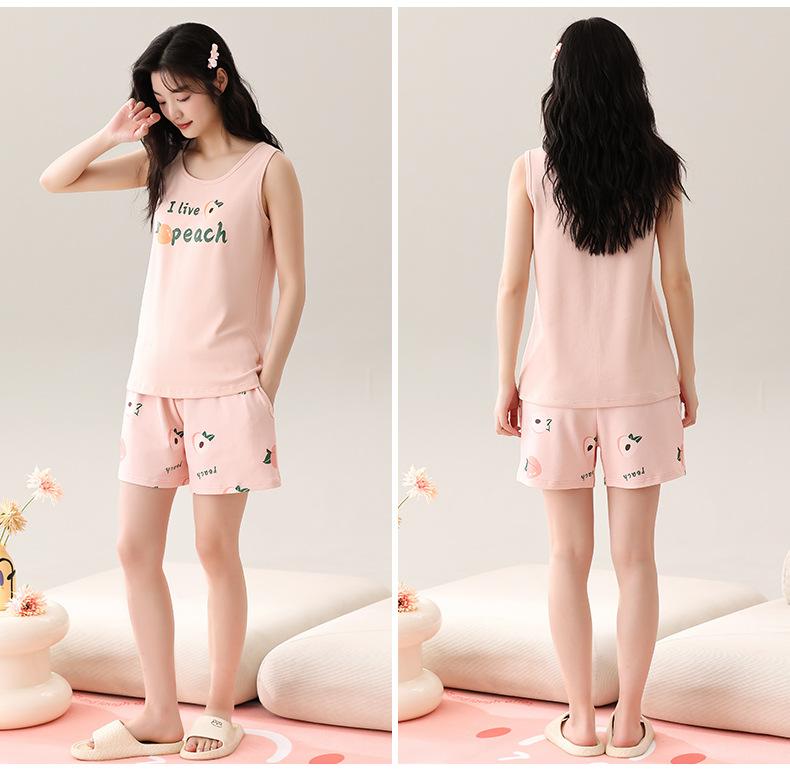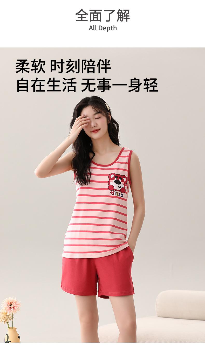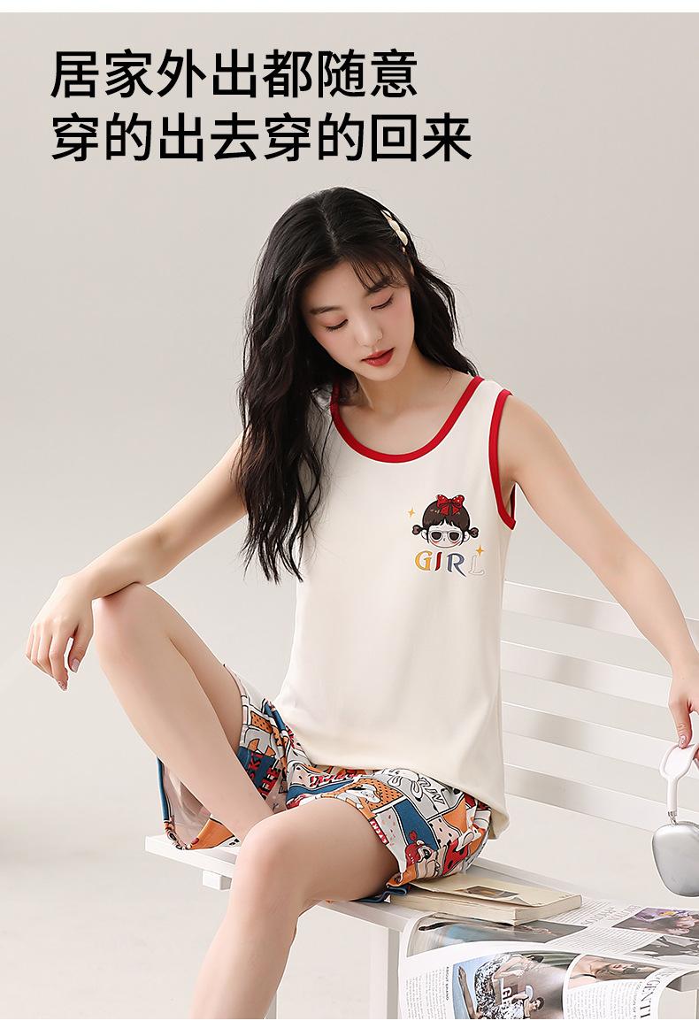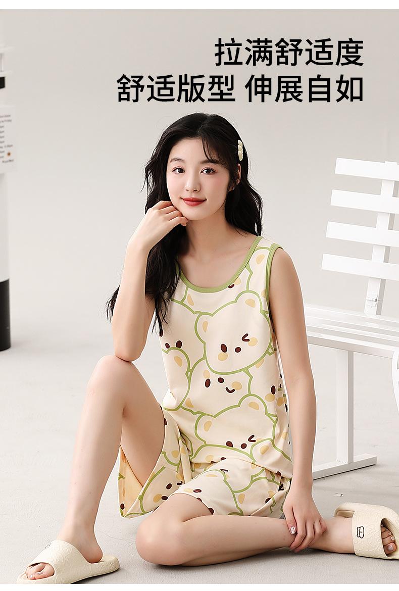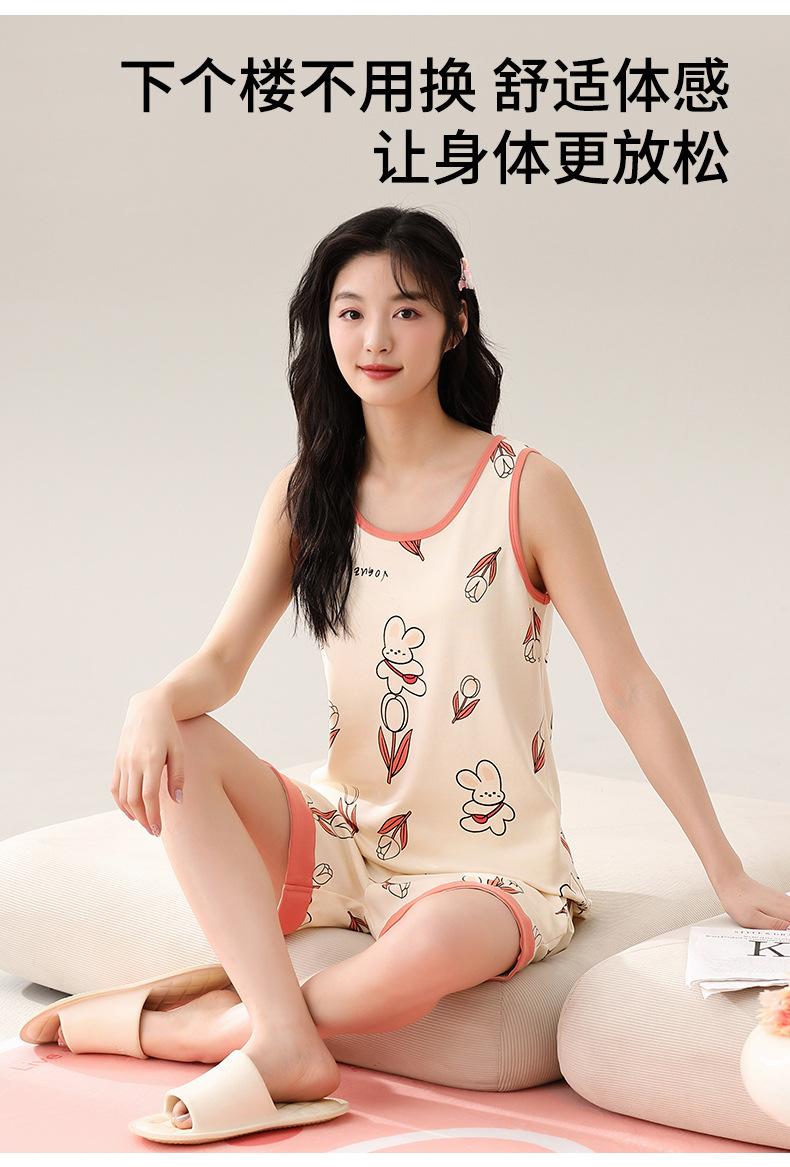 Pijamas Less de Mujer Verano Algodón Imitación Chaleco Acolchado Shorts Estilo Coreano Ropa para el Hogar Traje Dulce de Dibujos Animados Verano