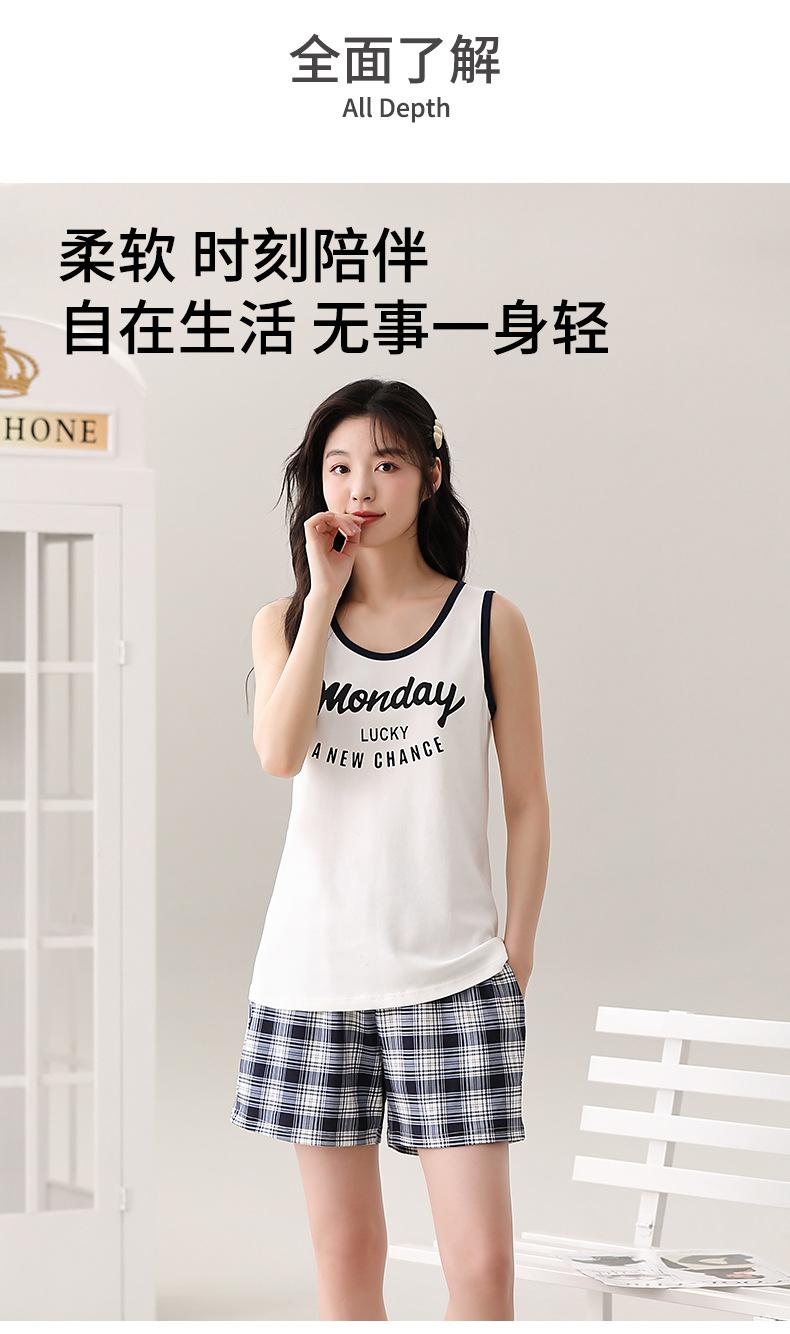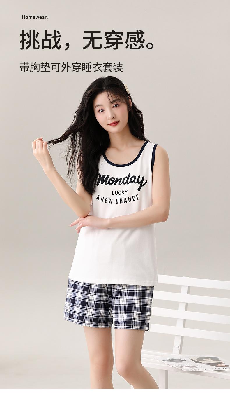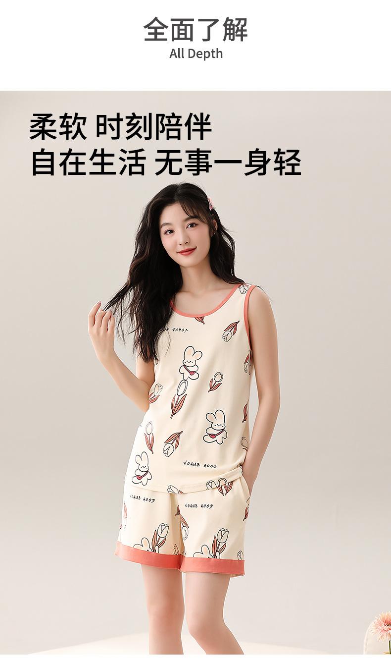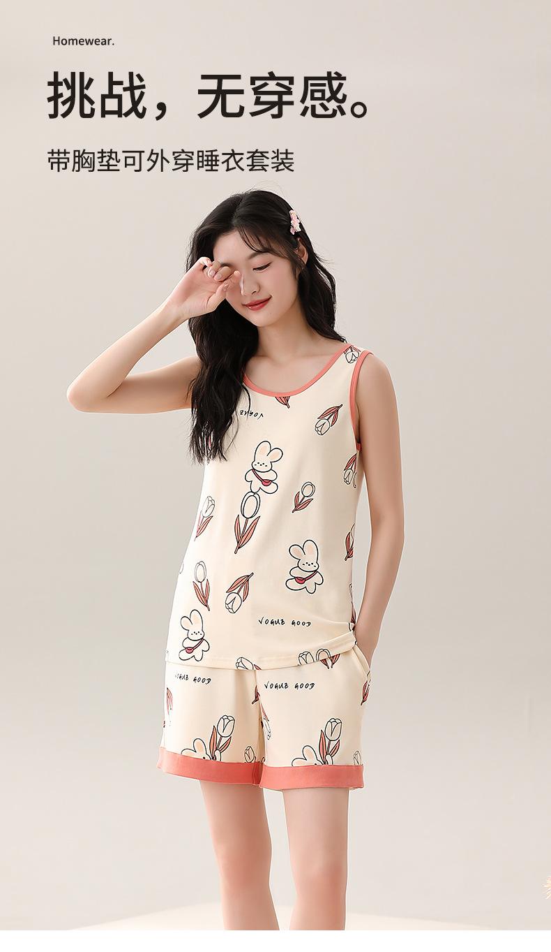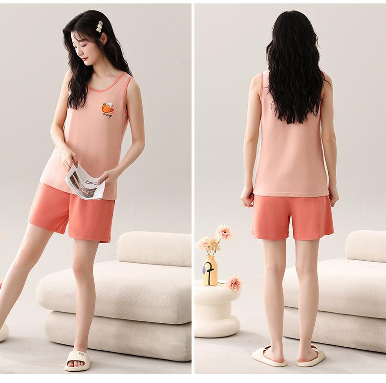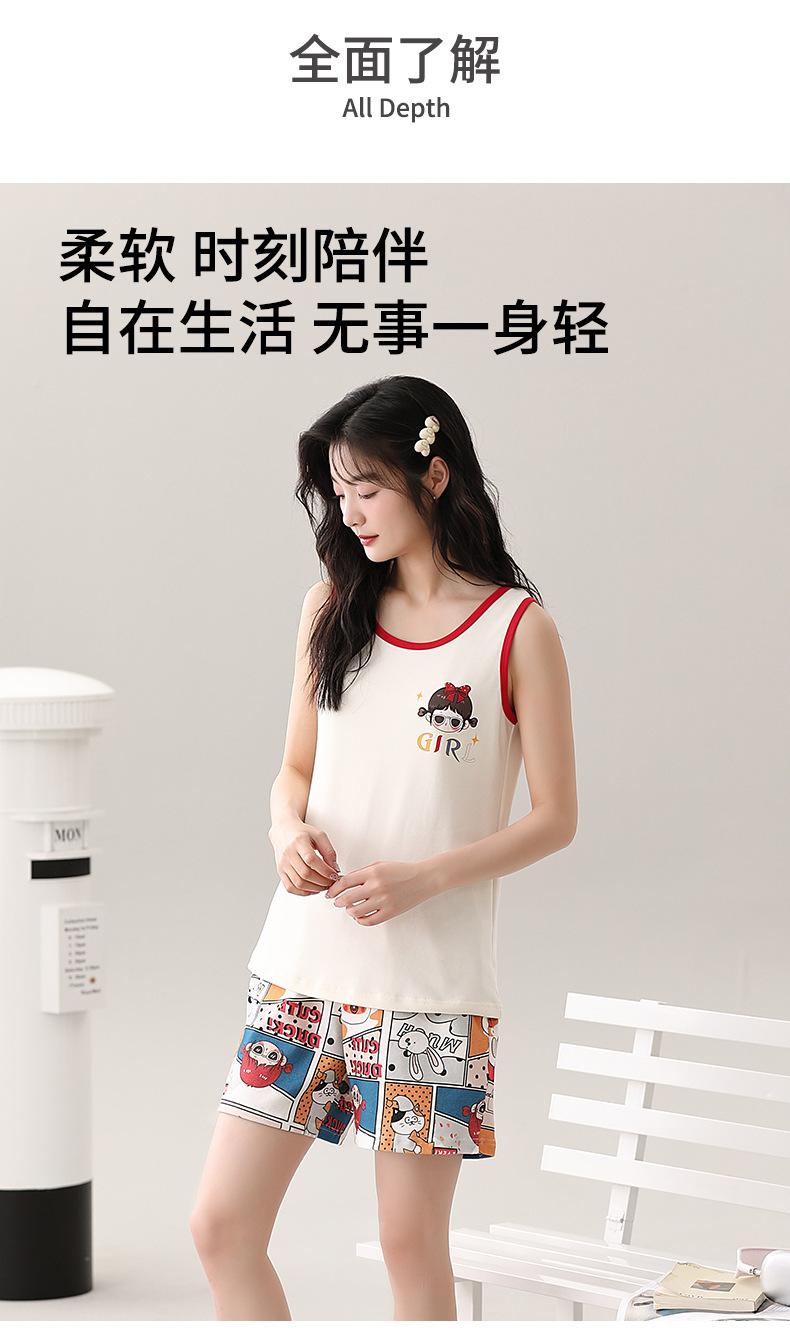 Pijamas Less de Mujer Verano Algodón Imitación Chaleco Acolchado Shorts Estilo Coreano Ropa para el Hogar Traje Dulce de Dibujos Animados Verano