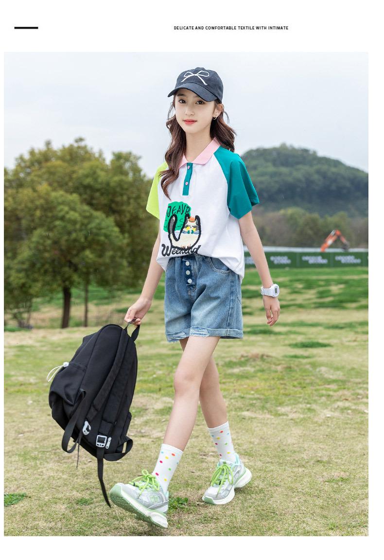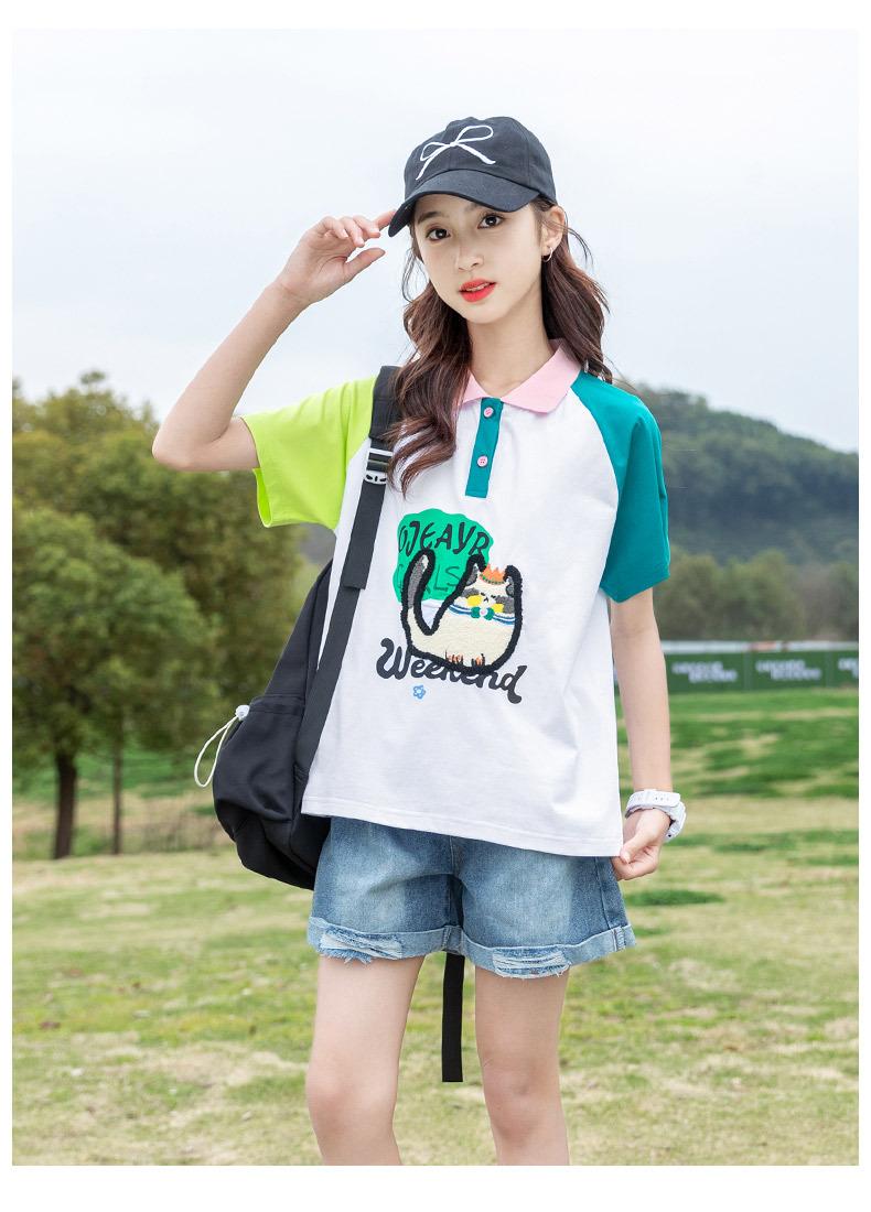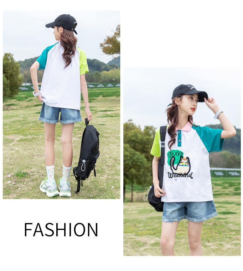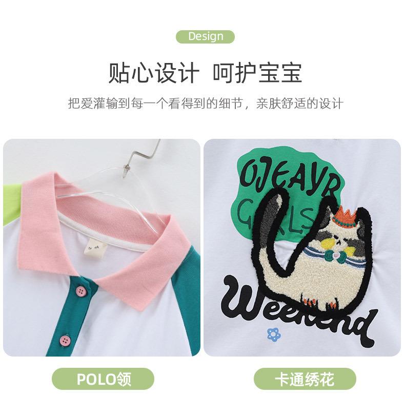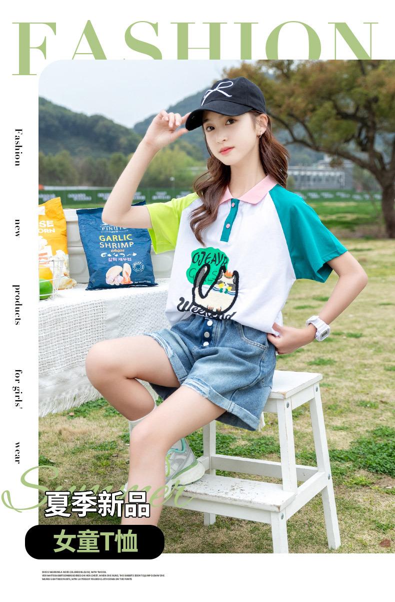 Polo de Niña Camiseta de Manga Corta Verano 2025 Nuevo Suelto Solapa Ropa Infantil Moda Niña Dibujos Animados Ropa Infantil