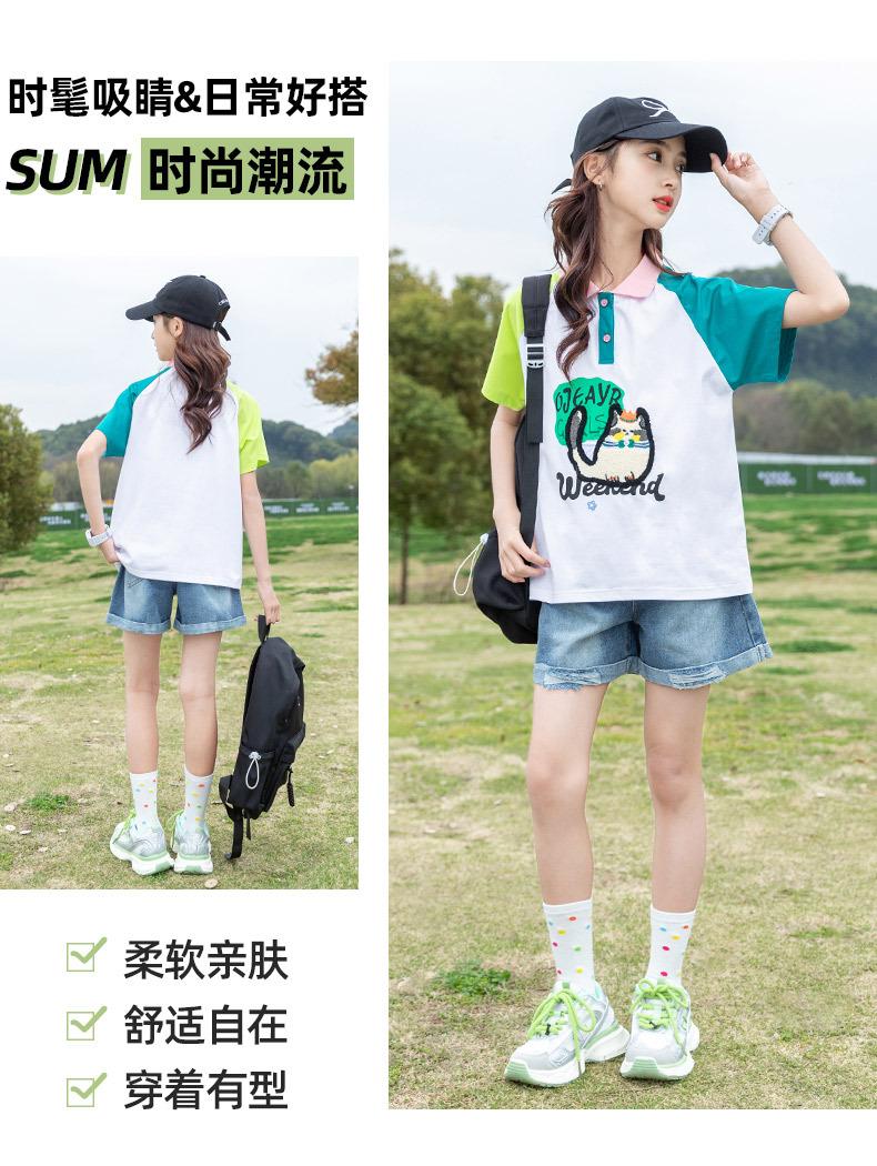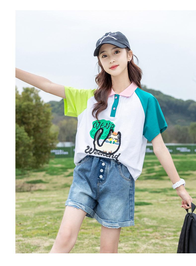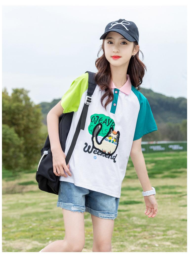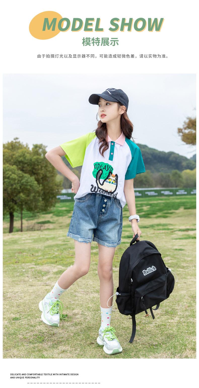 Polo de Niña Camiseta de Manga Corta Verano 2025 Nuevo Suelto Solapa Ropa Infantil Moda Niña Dibujos Animados Ropa Infantil