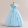 Vestido de niña con malla, lentejuelas, tul, falda raglán, mangas cortas con vuelo, lazo, vestido de noche, vestido de noche para niña de las flores, vestido de novia