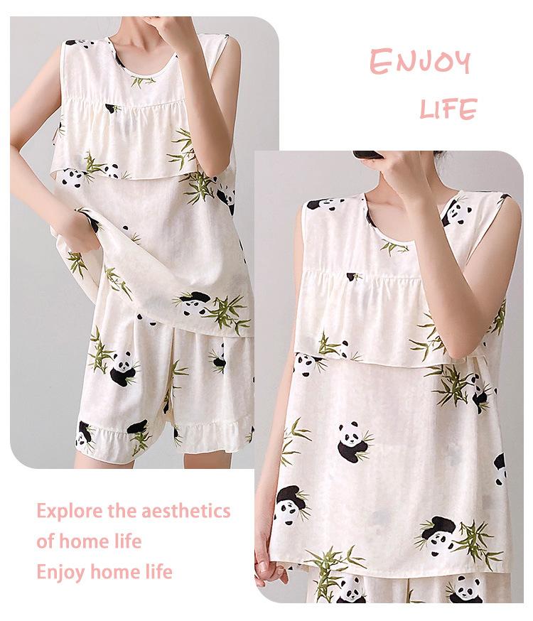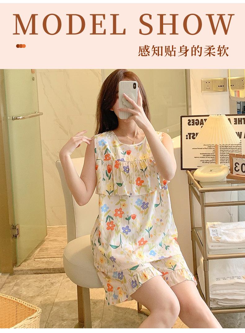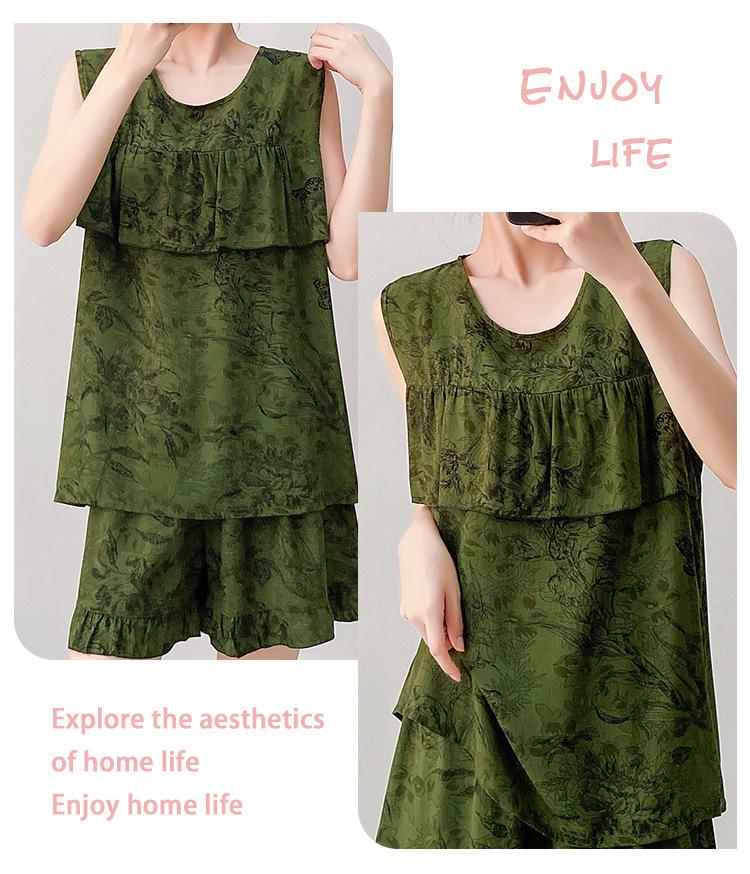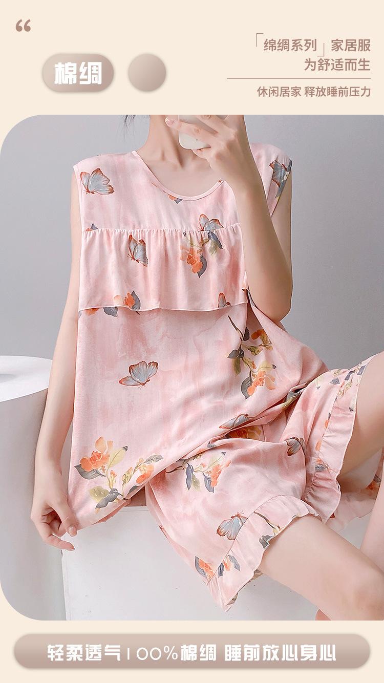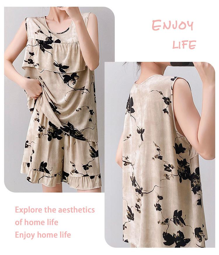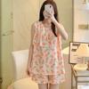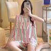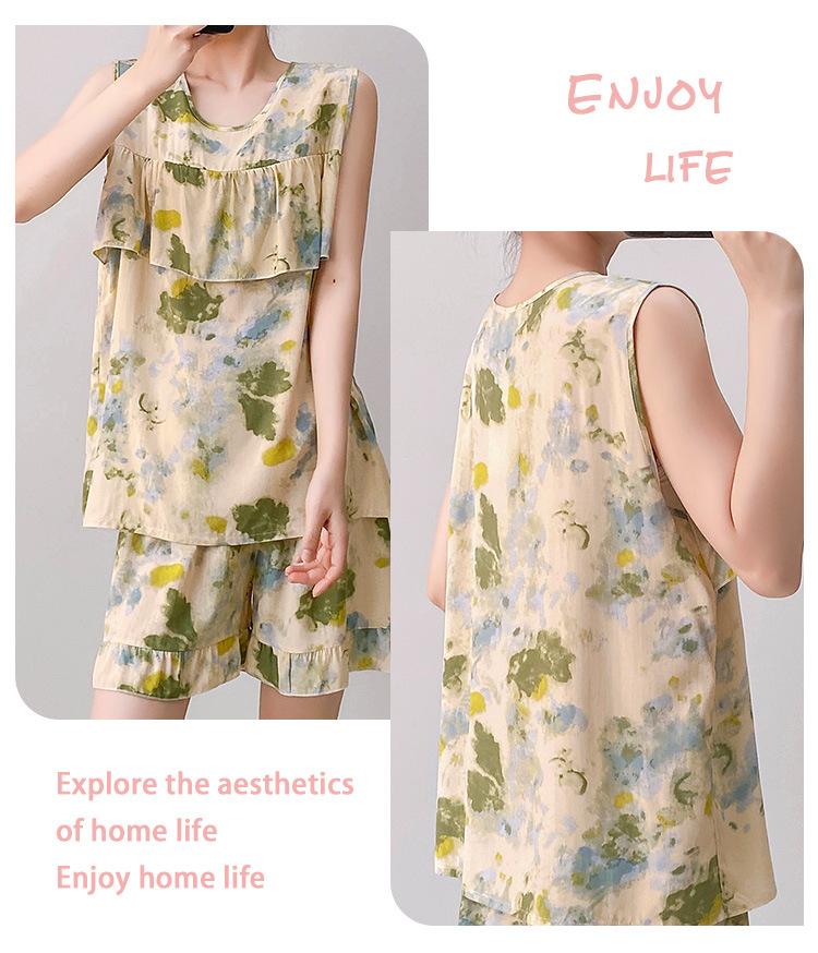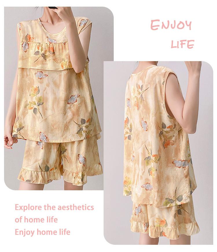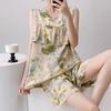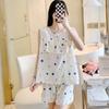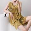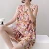 Pijama antigolpes de verano para mujer, ultrafino, de algodón y seda, sin mangas, con tirantes, pantalones cortos, ropa de casa de algodón y seda de tacto fresco.