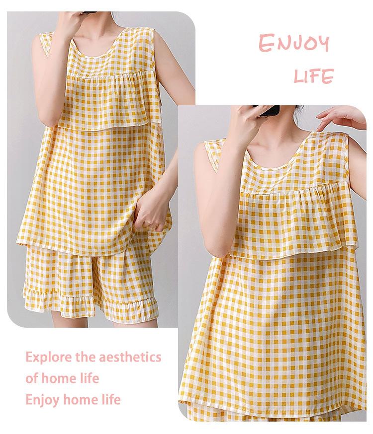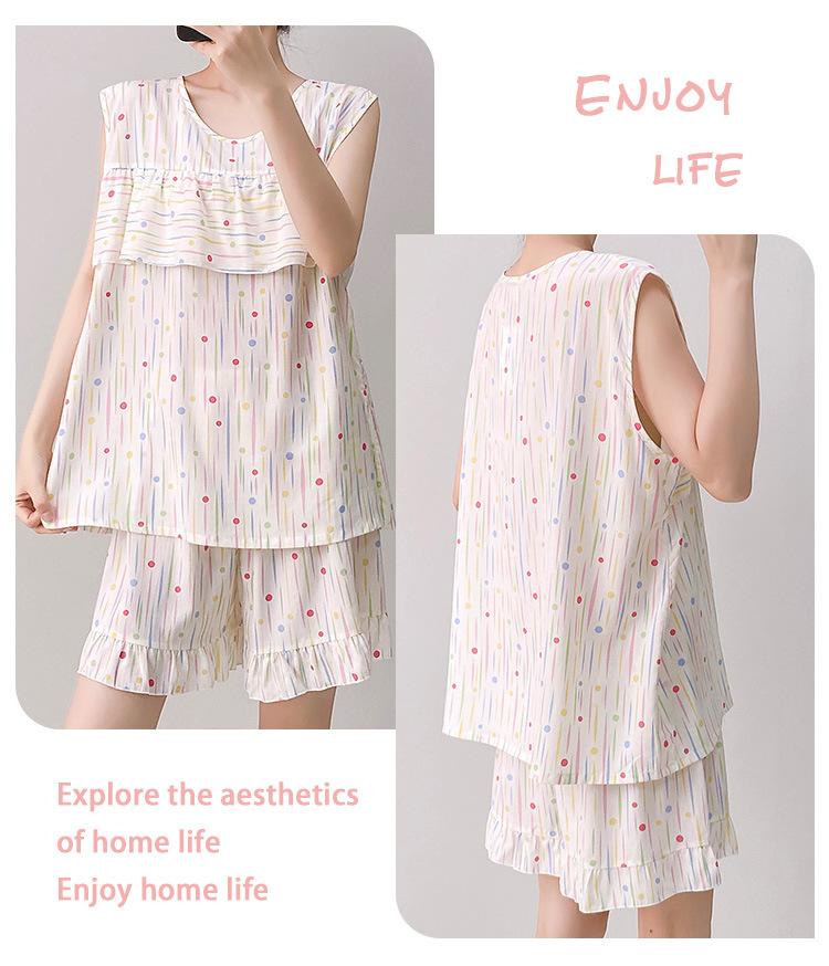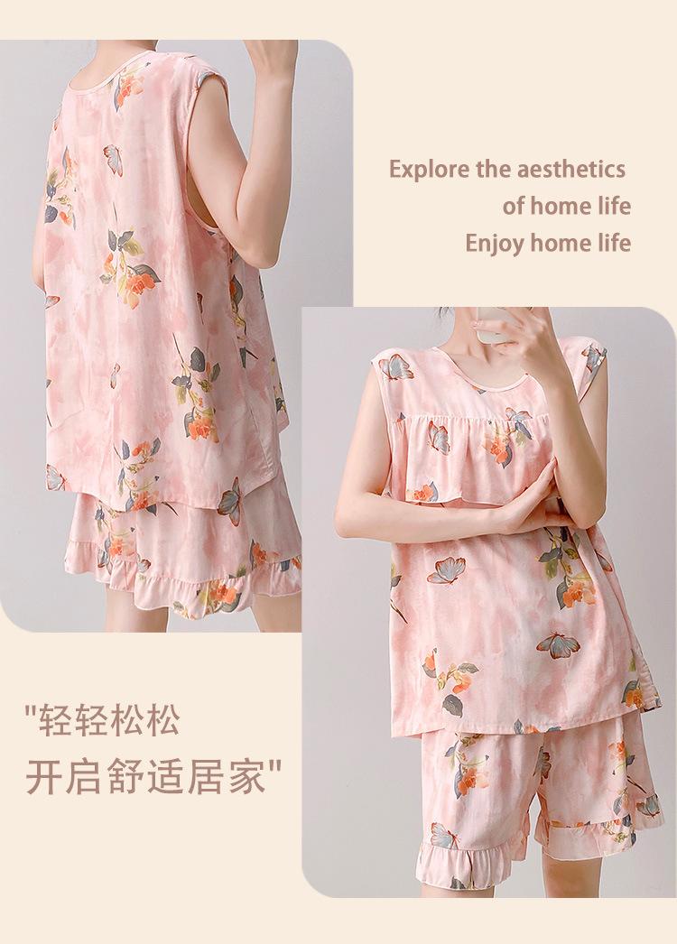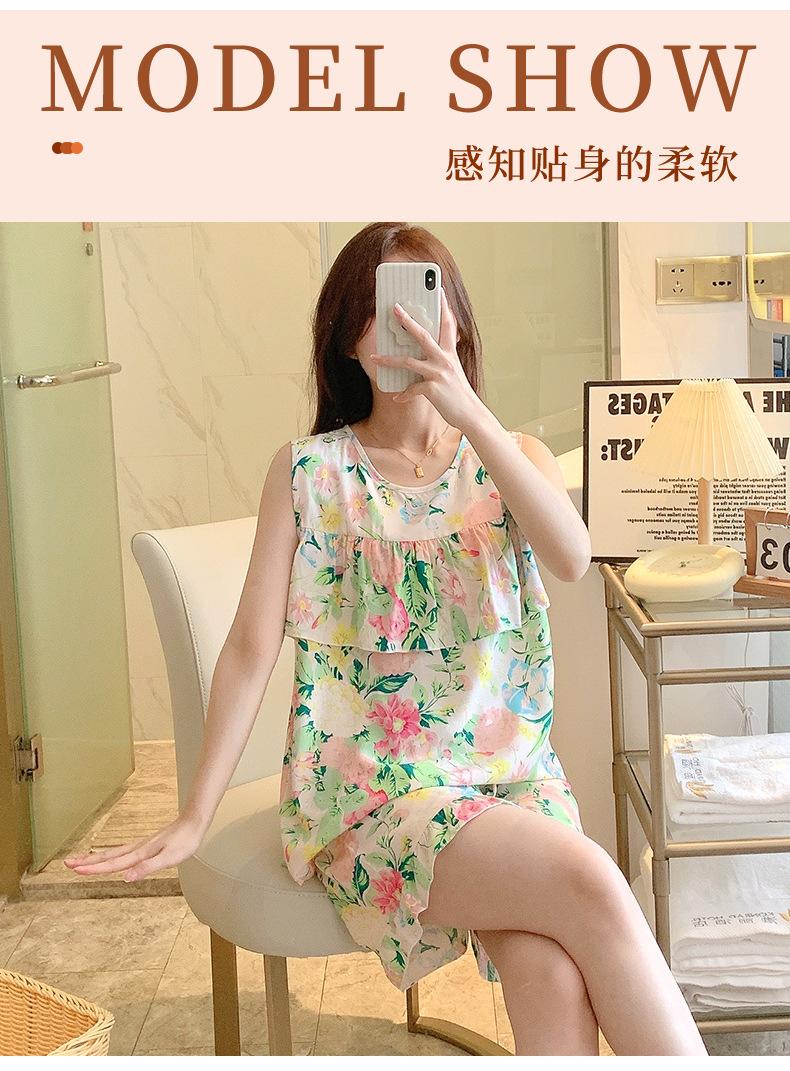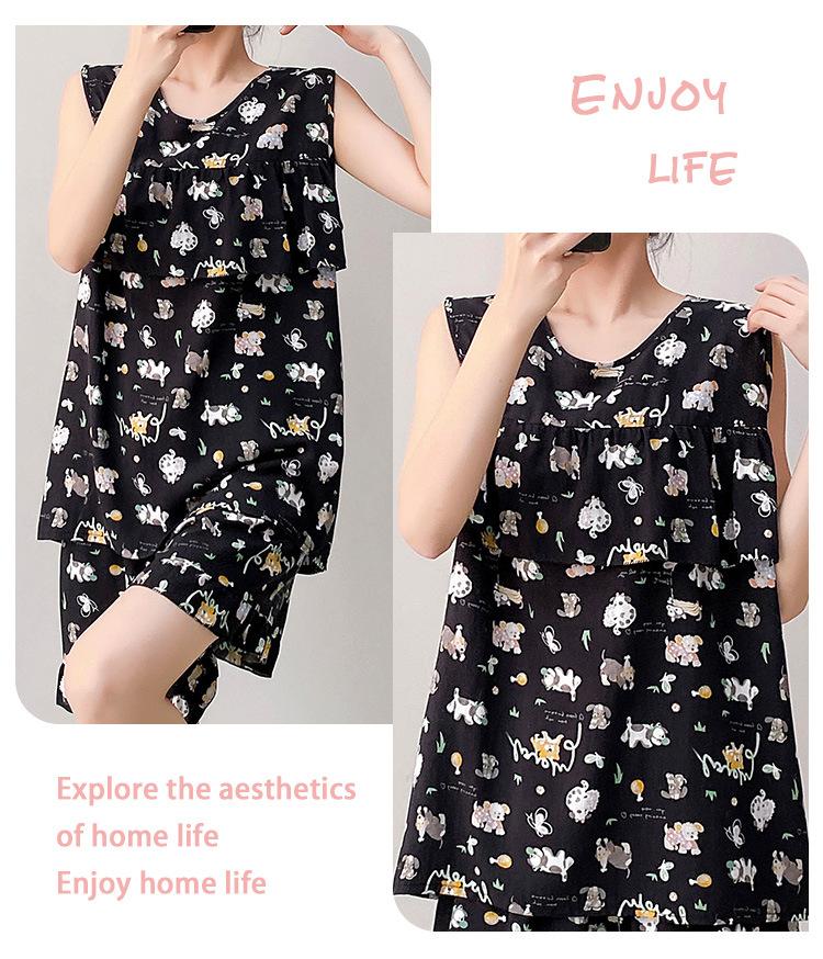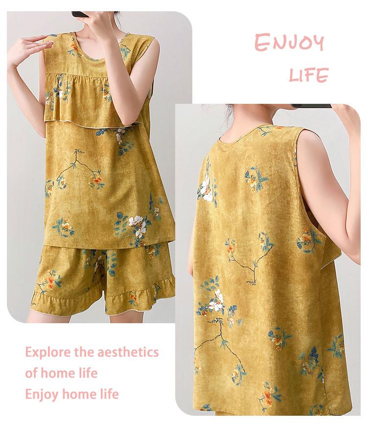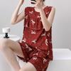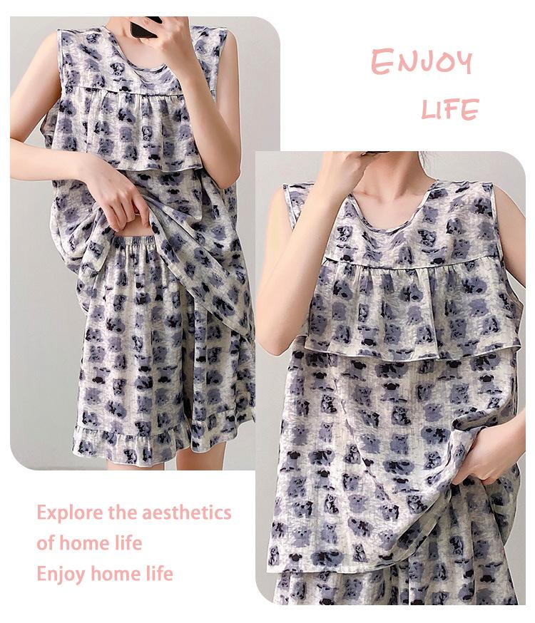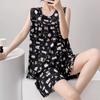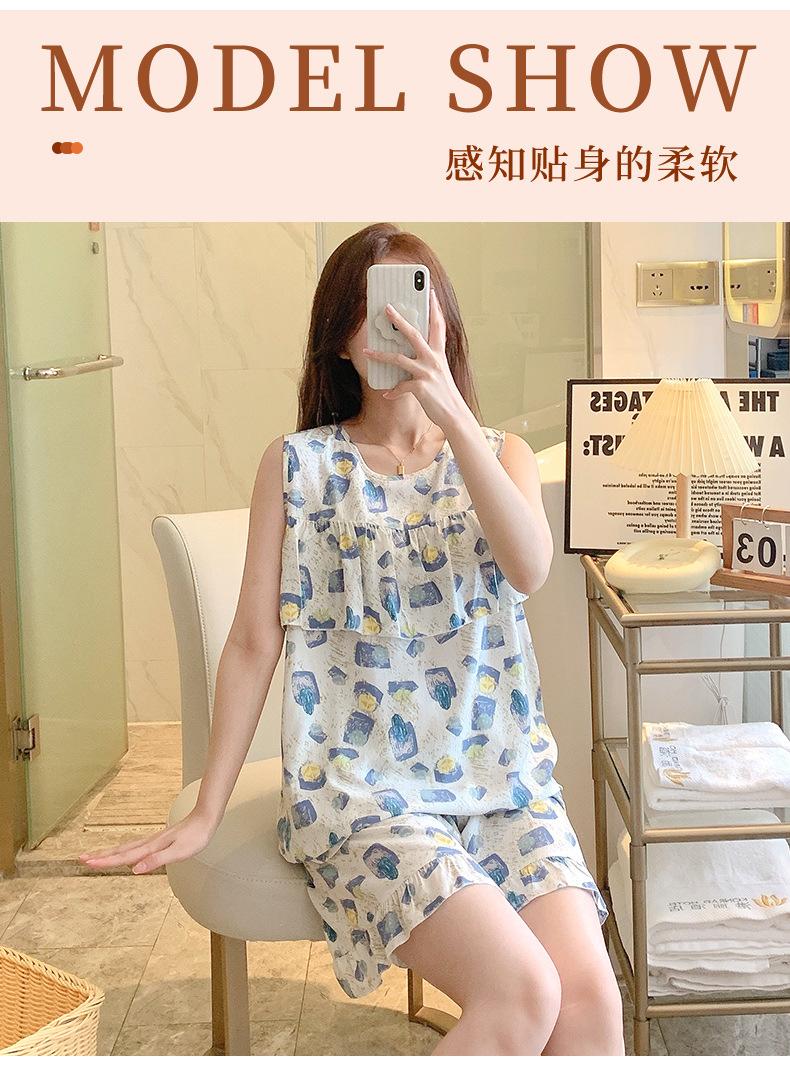 Pijama antigolpes de verano para mujer, ultrafino, de algodón y seda, sin mangas, con tirantes, pantalones cortos, ropa de casa de algodón y seda de tacto fresco.